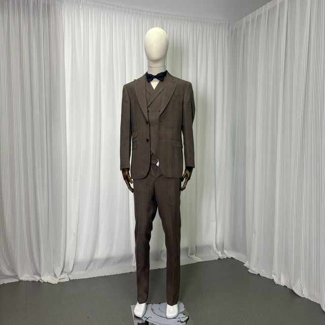 タキシード ジャケット、ベスト、パンツの3点セット カーキ色 ジャガード生地 新郎衣装