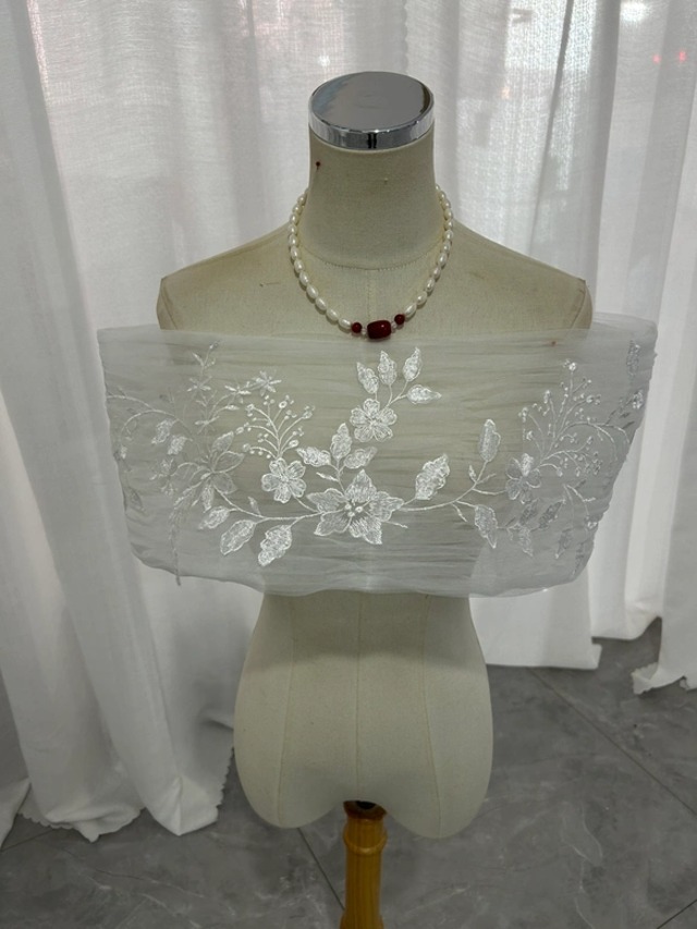 ボレロ 可憐な花刺繍のトップス オフショルダー ロングスリーブ ファスナー 結婚式