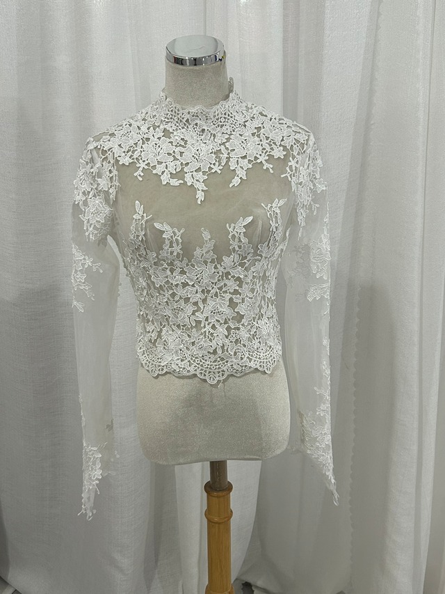 手の甲までカバーするトップス ブラウス 抑えめのハイネック くるみボタン ウエディングドレスアレンジ用ボレロ