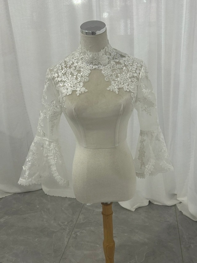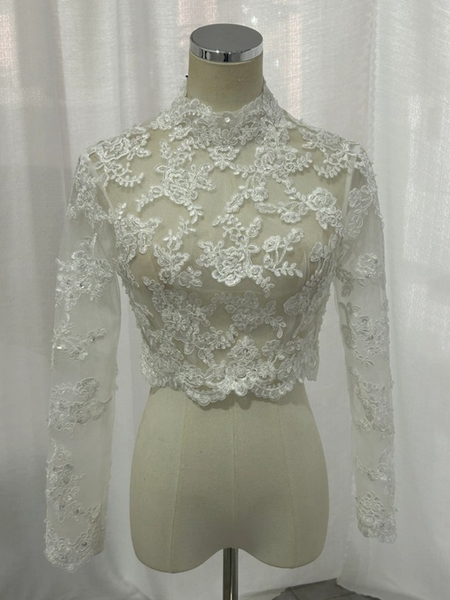 ボレロ エレガントレース ハイネック 長袖 ファスナー 結婚式/披露宴