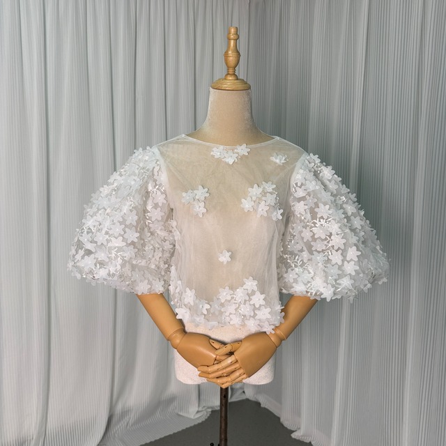 ビスチェボレロ 花モチーフ 3D立体レース刺繍 バルーンスリーブ プリンセスライン 花嫁/ウェディングドレス