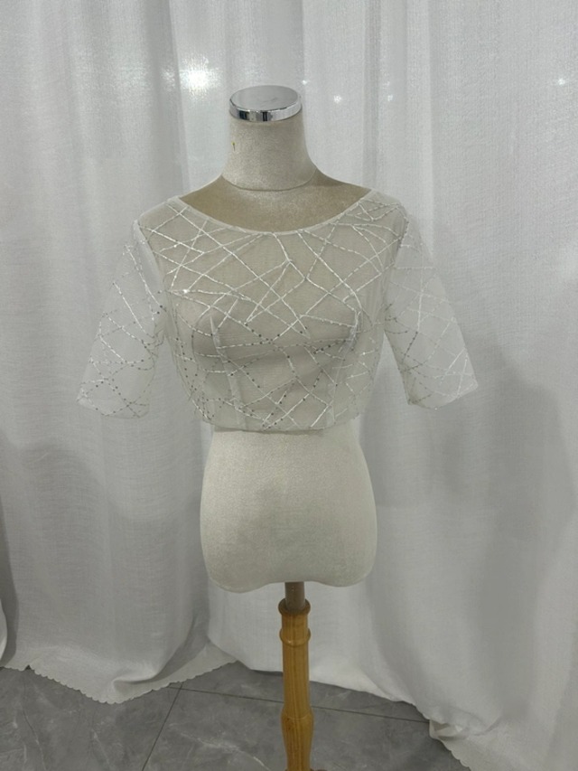 美品! ウエディングド フレア袖 シアーな美しさ パール トップス /花嫁 抜群のおしゃれ見え