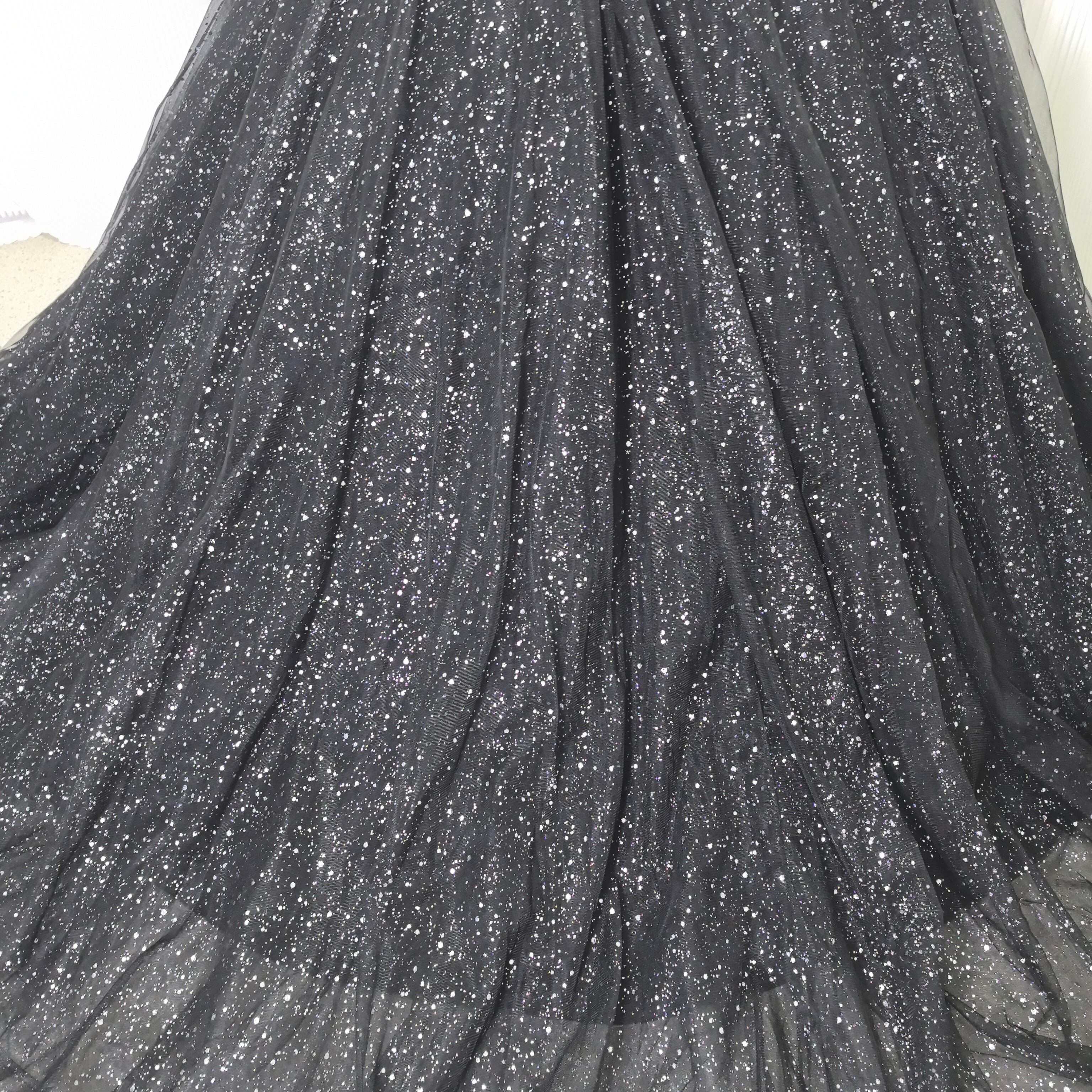 カラードレス ショルダー型 リボン ブラック キラキラグリッターチュール 編み上げ 大人っぽい エレガント