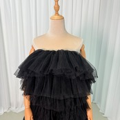 ウェディングドレス ベアトップ ベアトップ リボン 柔らかく重ねたチュールスカート 可愛い ブラック