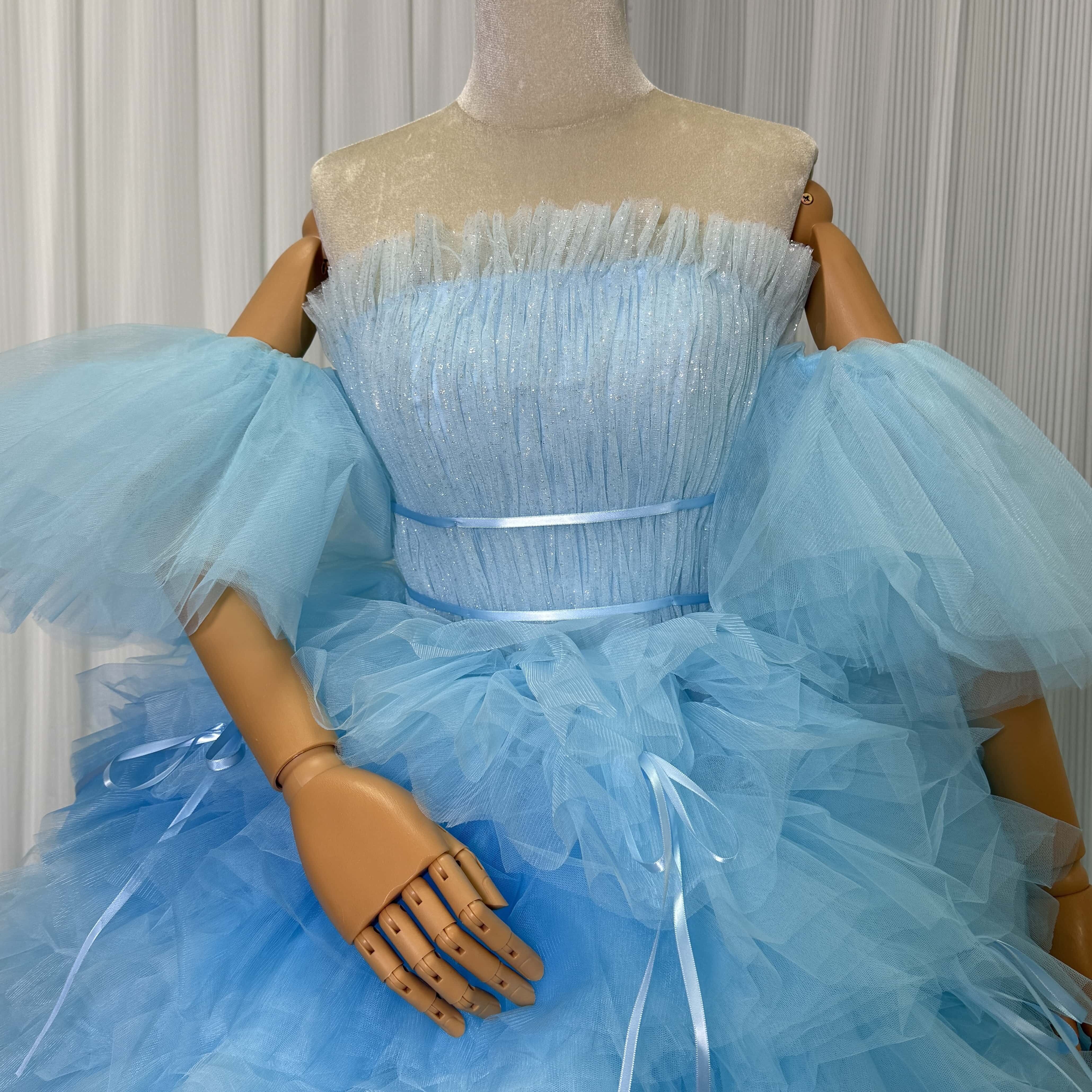 カラードレス ブルー もこもこドレス リボン 編み上げ 披露宴/結婚式 花嫁/ウェディングドレ 可愛い