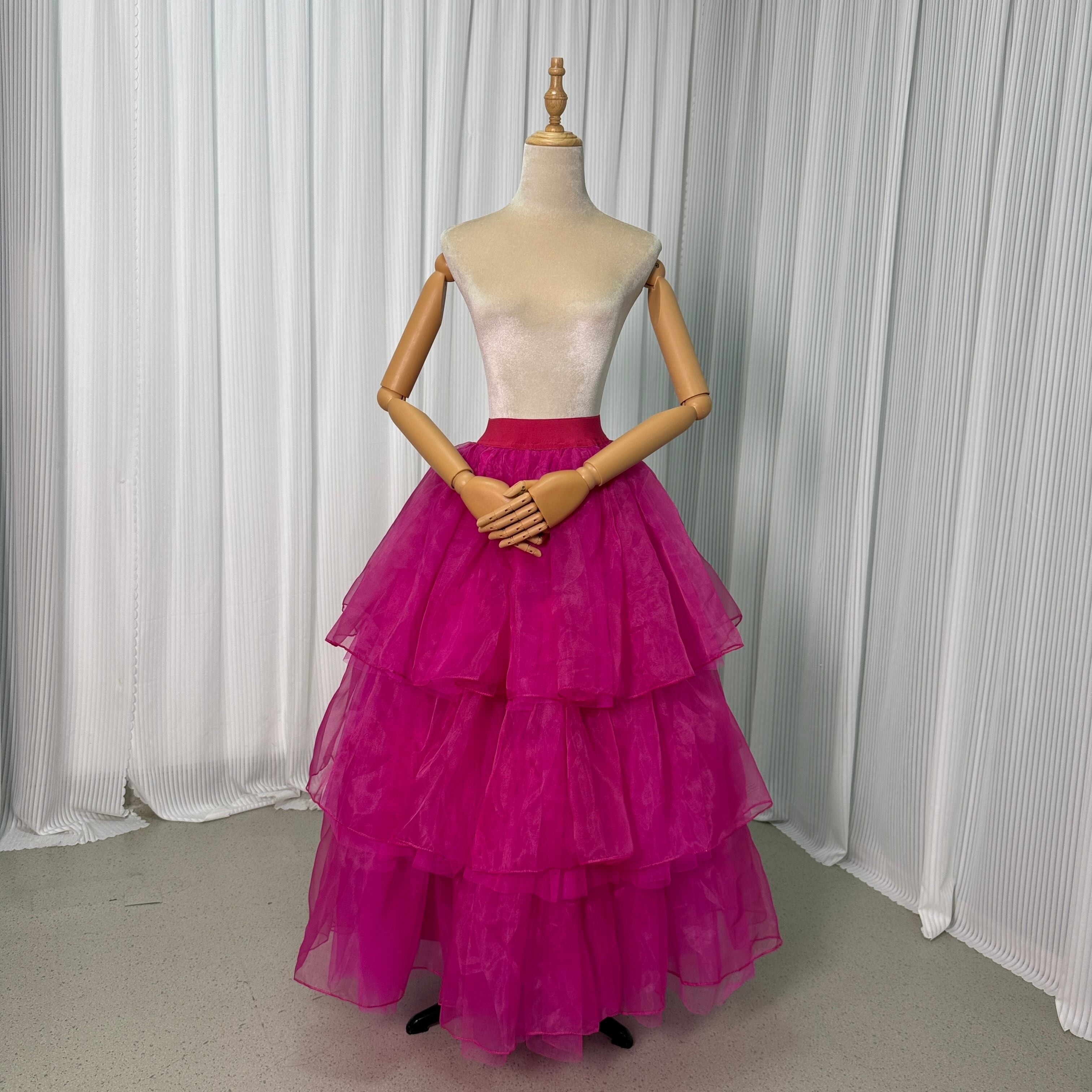 オーバースカート ビビッドピンク オーガンジー ソフトチュール ミモレ丈 ストレッチ 派手な カラードレス