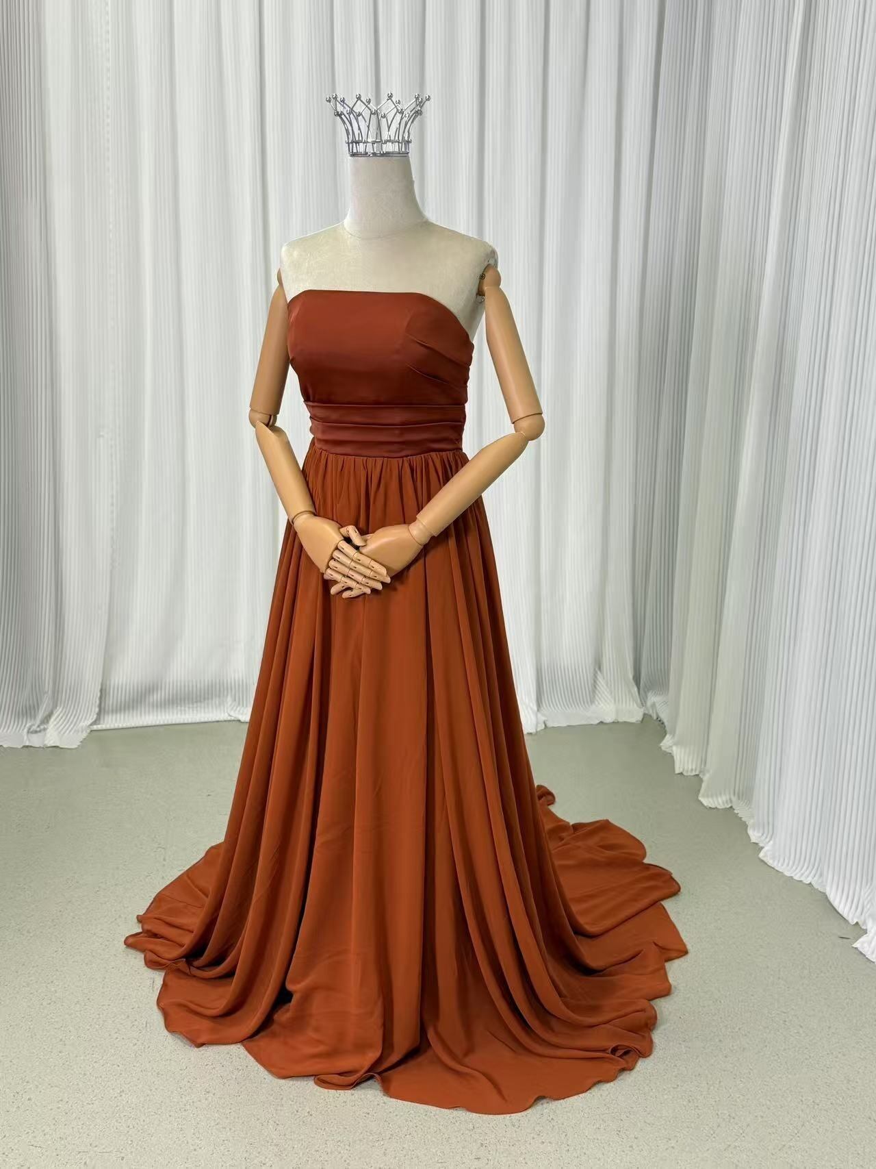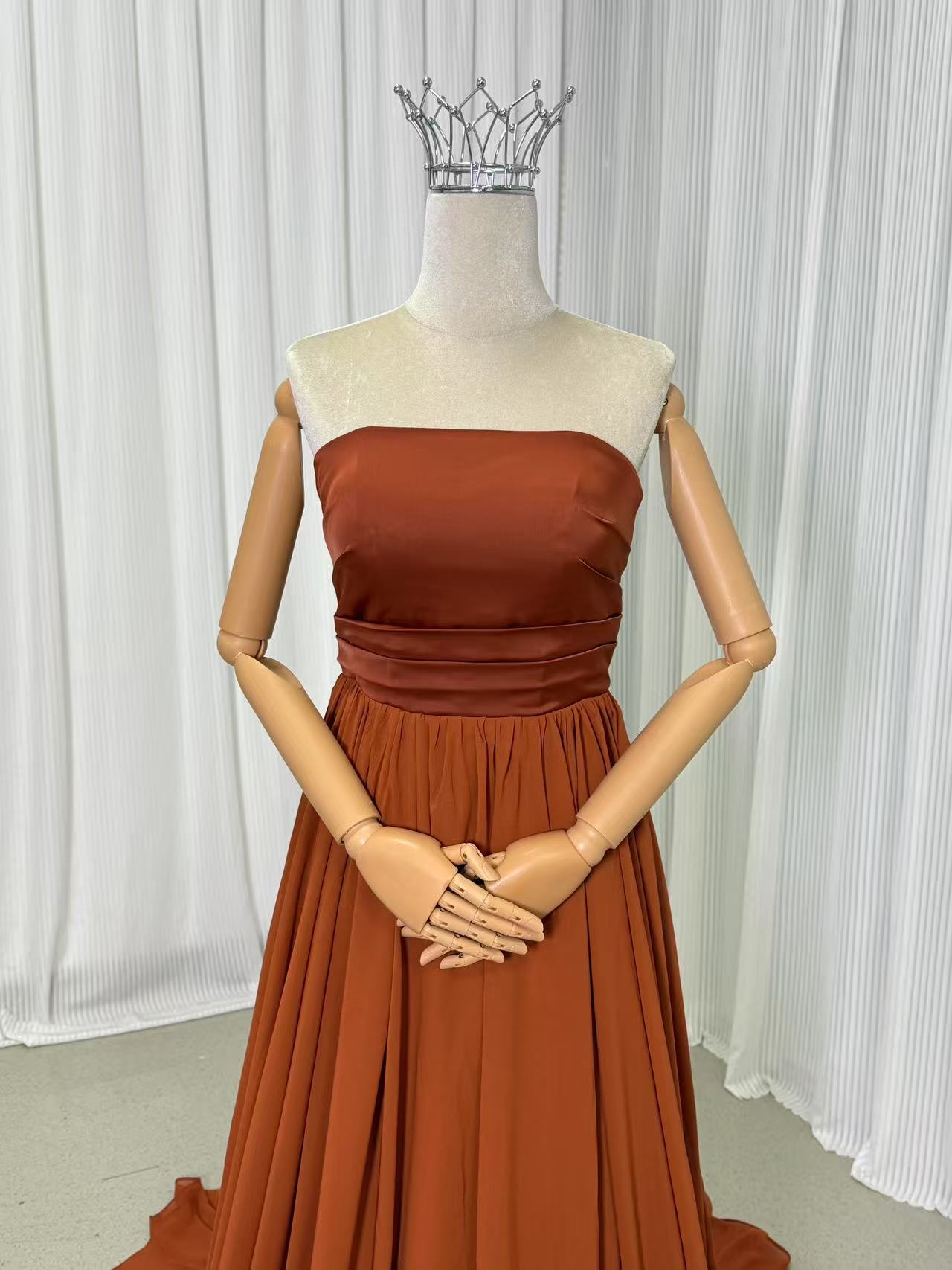 パーティードレス 滑らか ビスチェタイプ テラコッタ色 ふんわりシフォン 前撮り