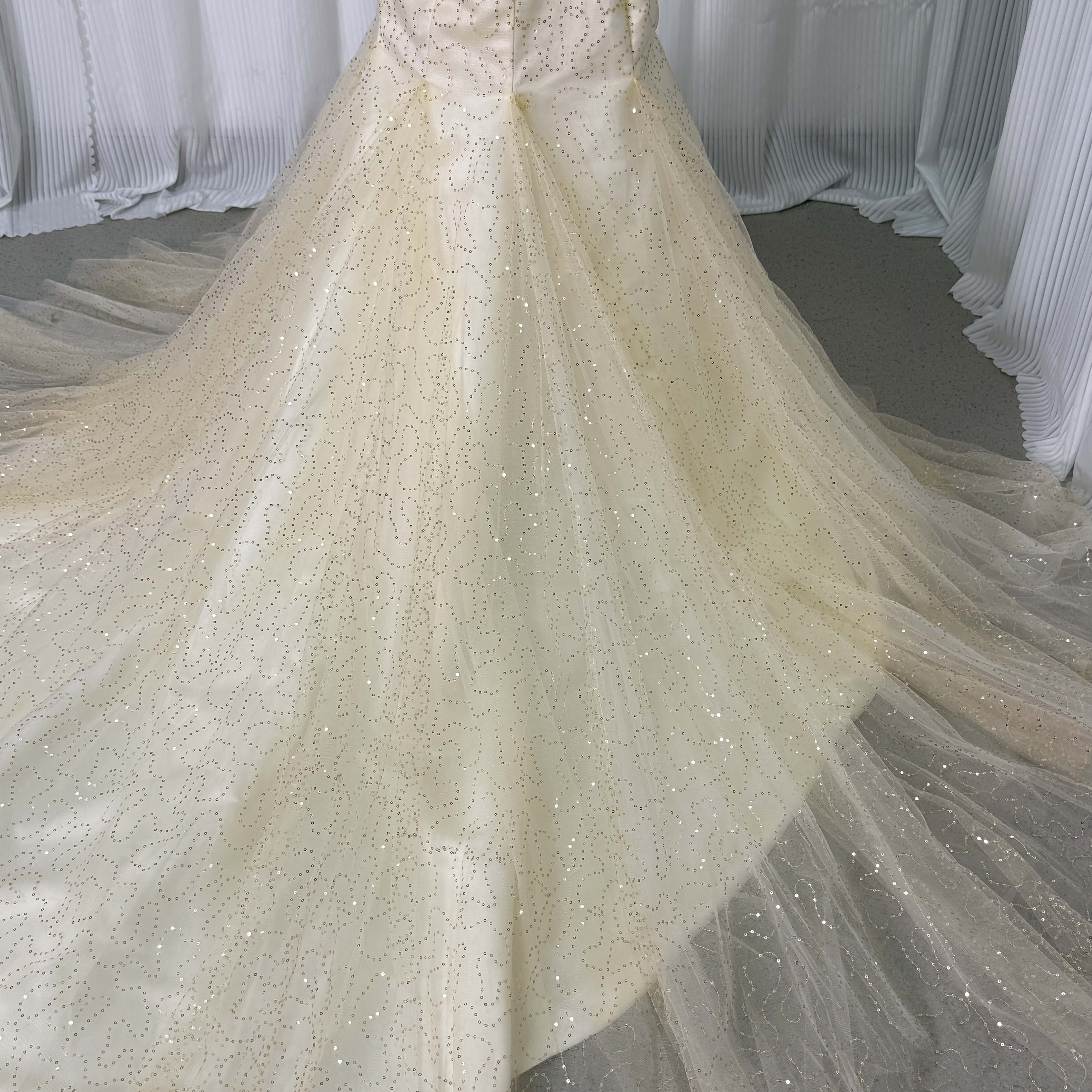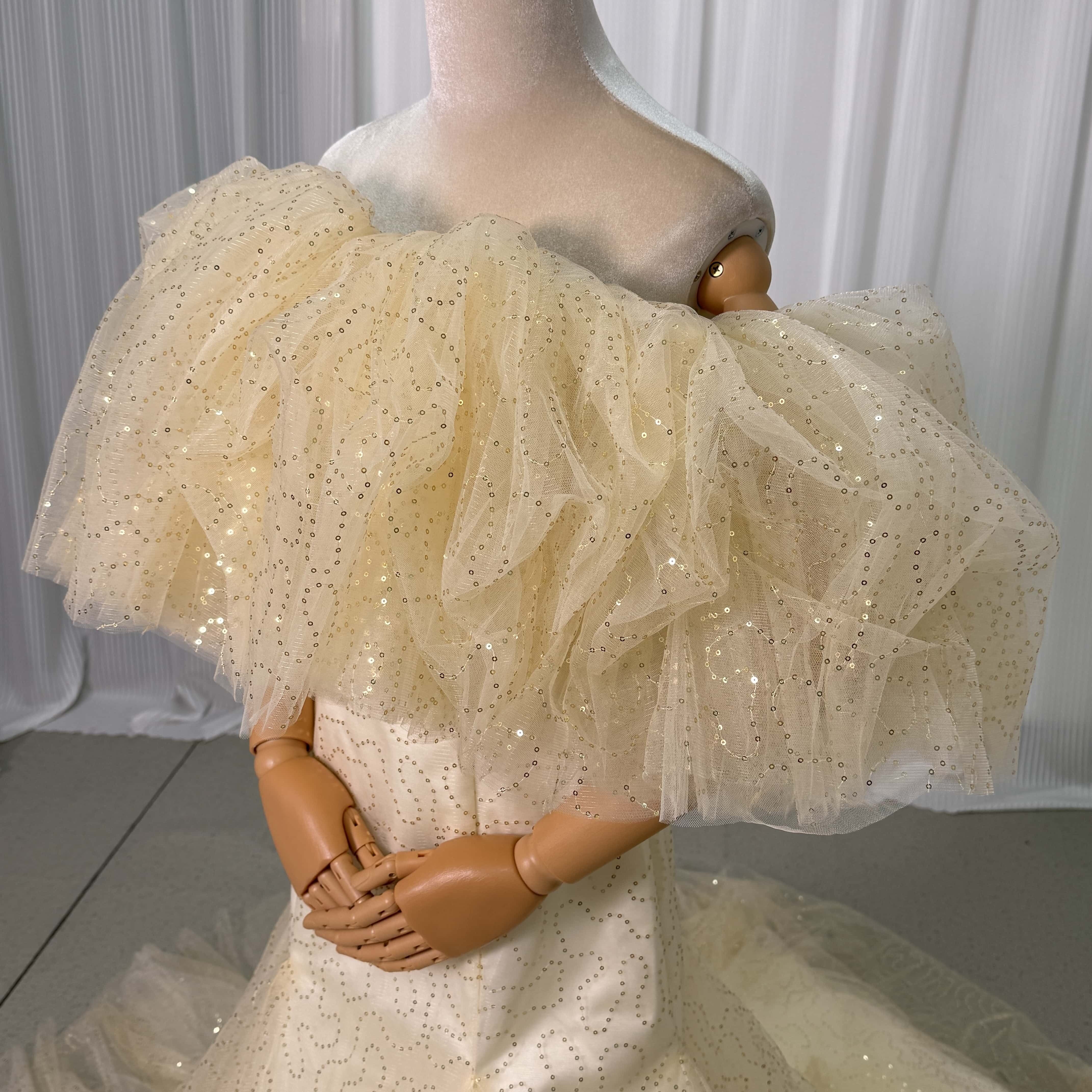 カラードレス 薄シャンパンの色 キラキラスパンコール マーメイドライン 披露宴/結婚式