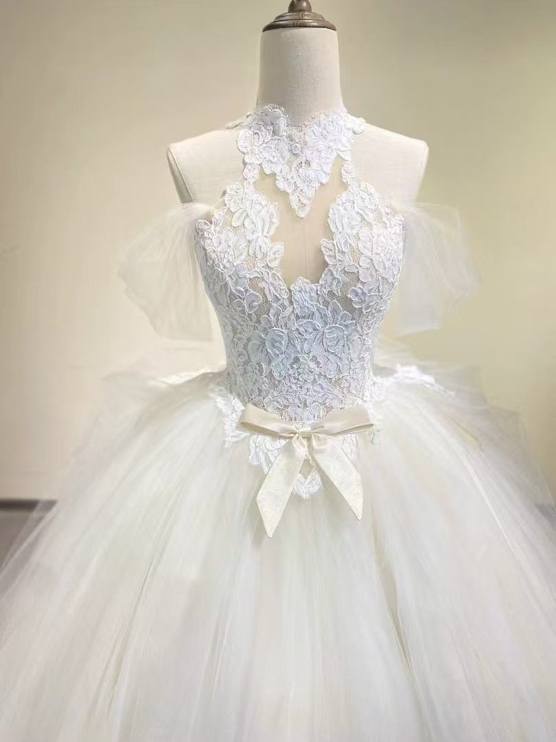 ウェディングドレス ホルターネック フレアスカート オフショルダー プリンセスライン 結婚式