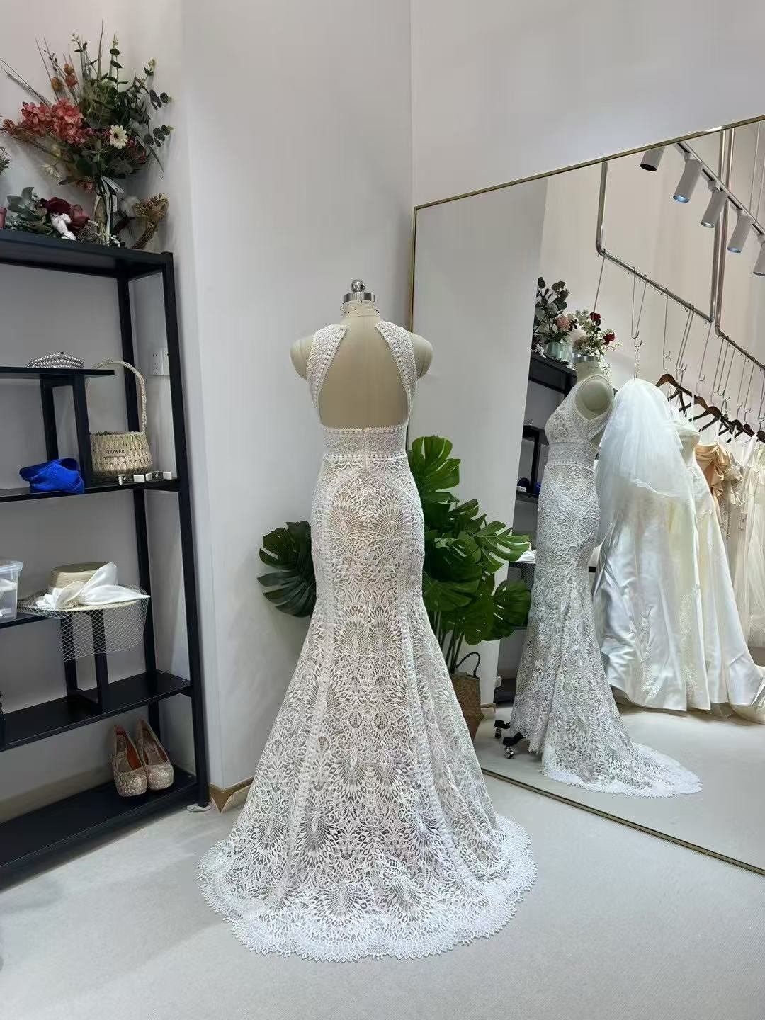 ウェディングドレス マーメイドライン ノースリーブ 大人っぽい 贅沢な総レース 結婚式