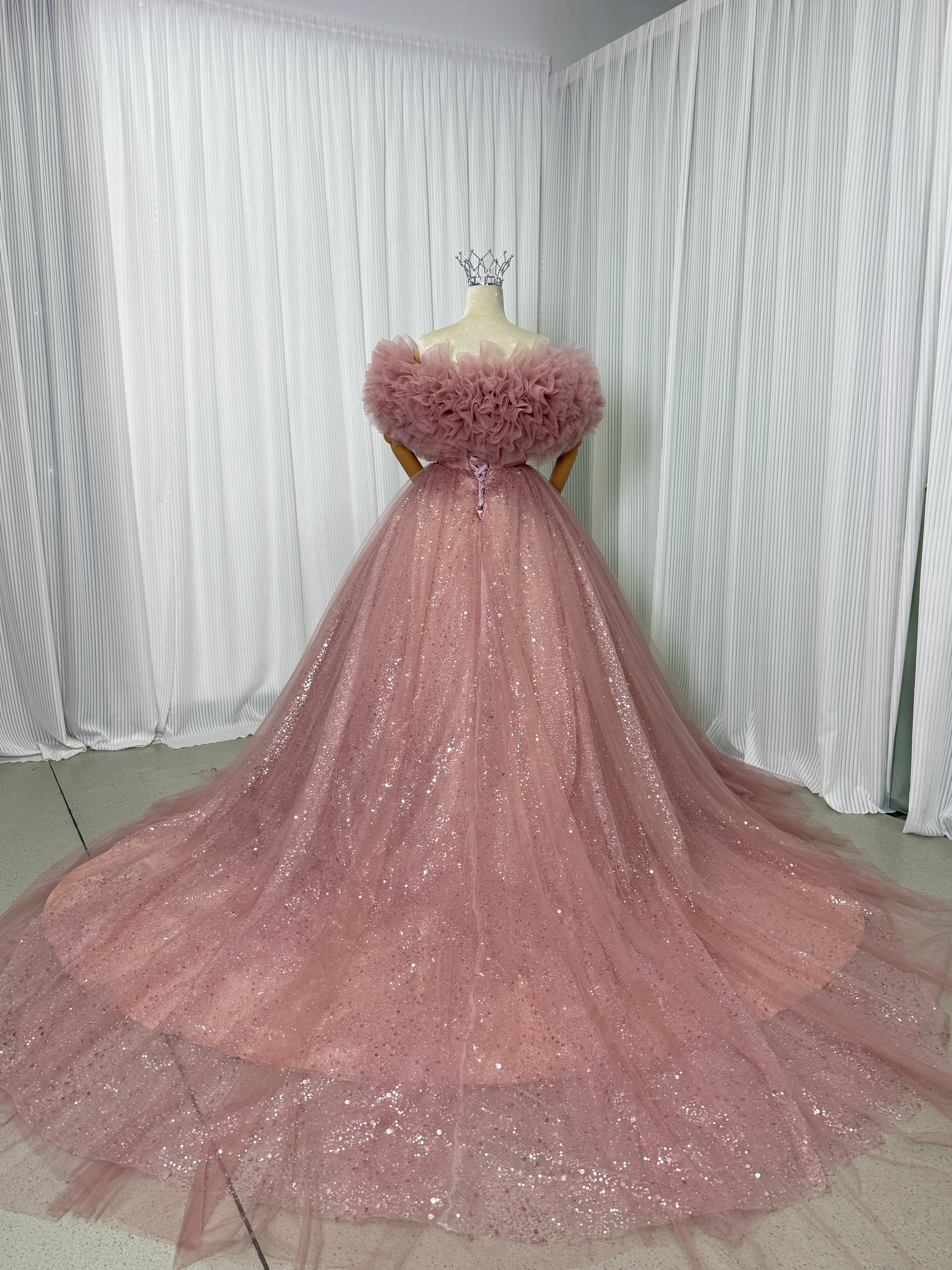 カラードレス ピンク 取り外しオフショルダー キラキラ光る刺繍 抜群のおしゃれ見え 花嫁 結婚式