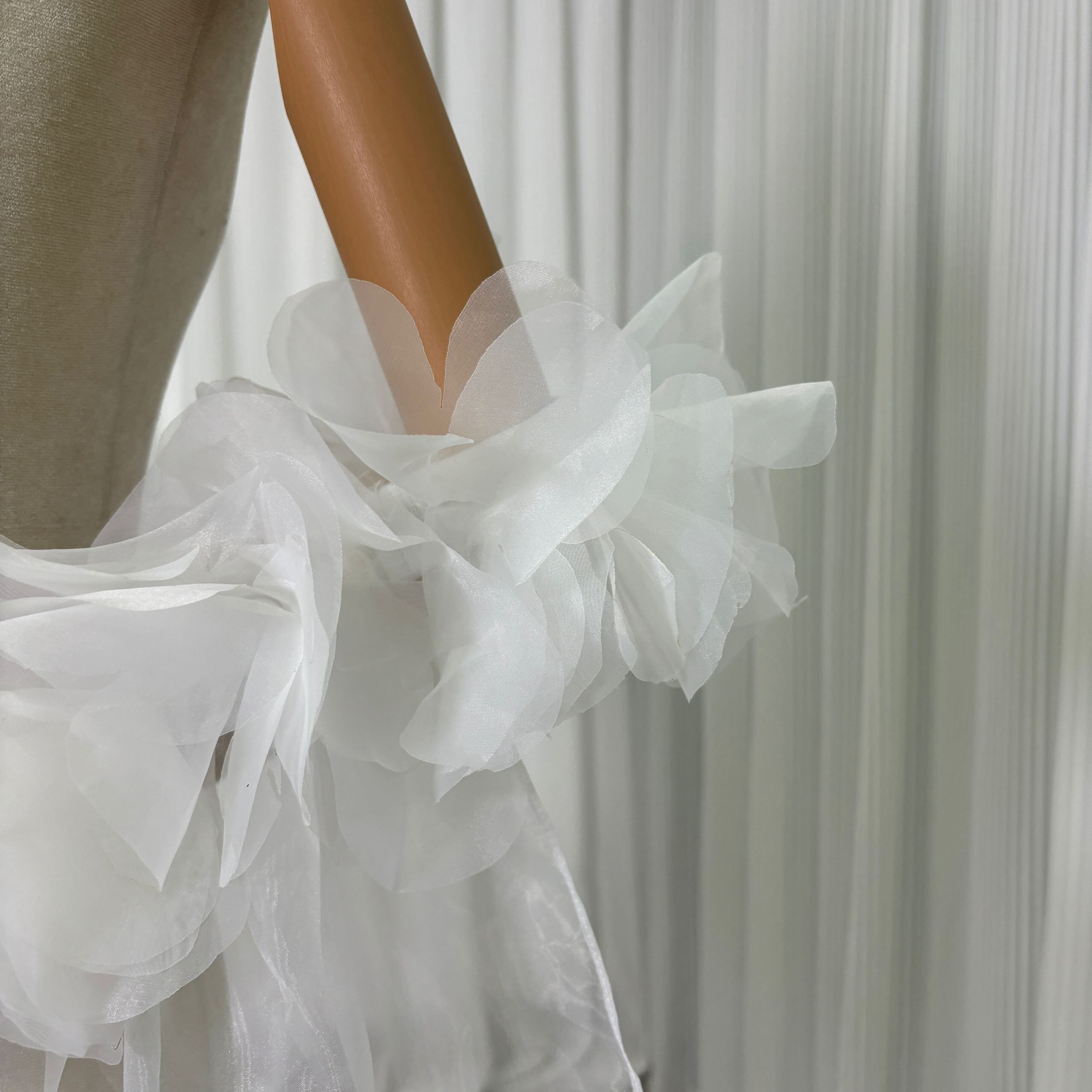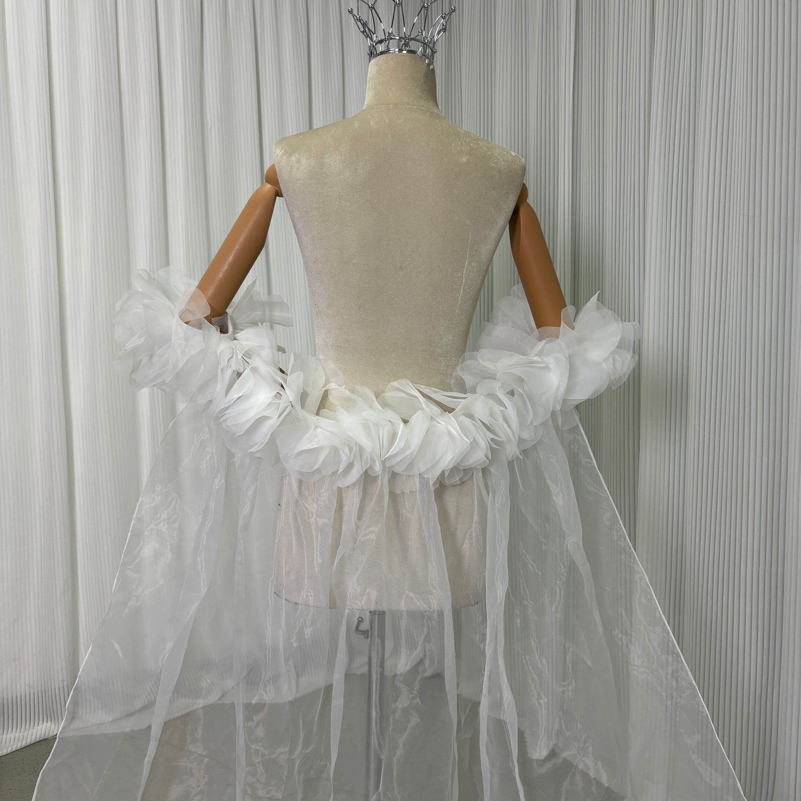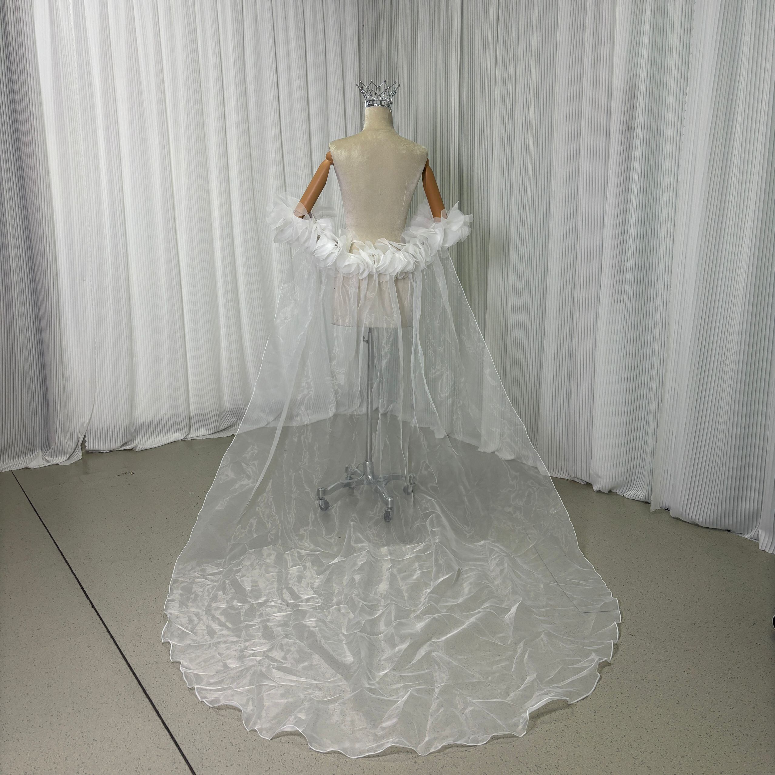 マント 上質オーガンジー プリンセスライン 可愛い オフホワイト 前撮り デザイン感 ロングトレーン