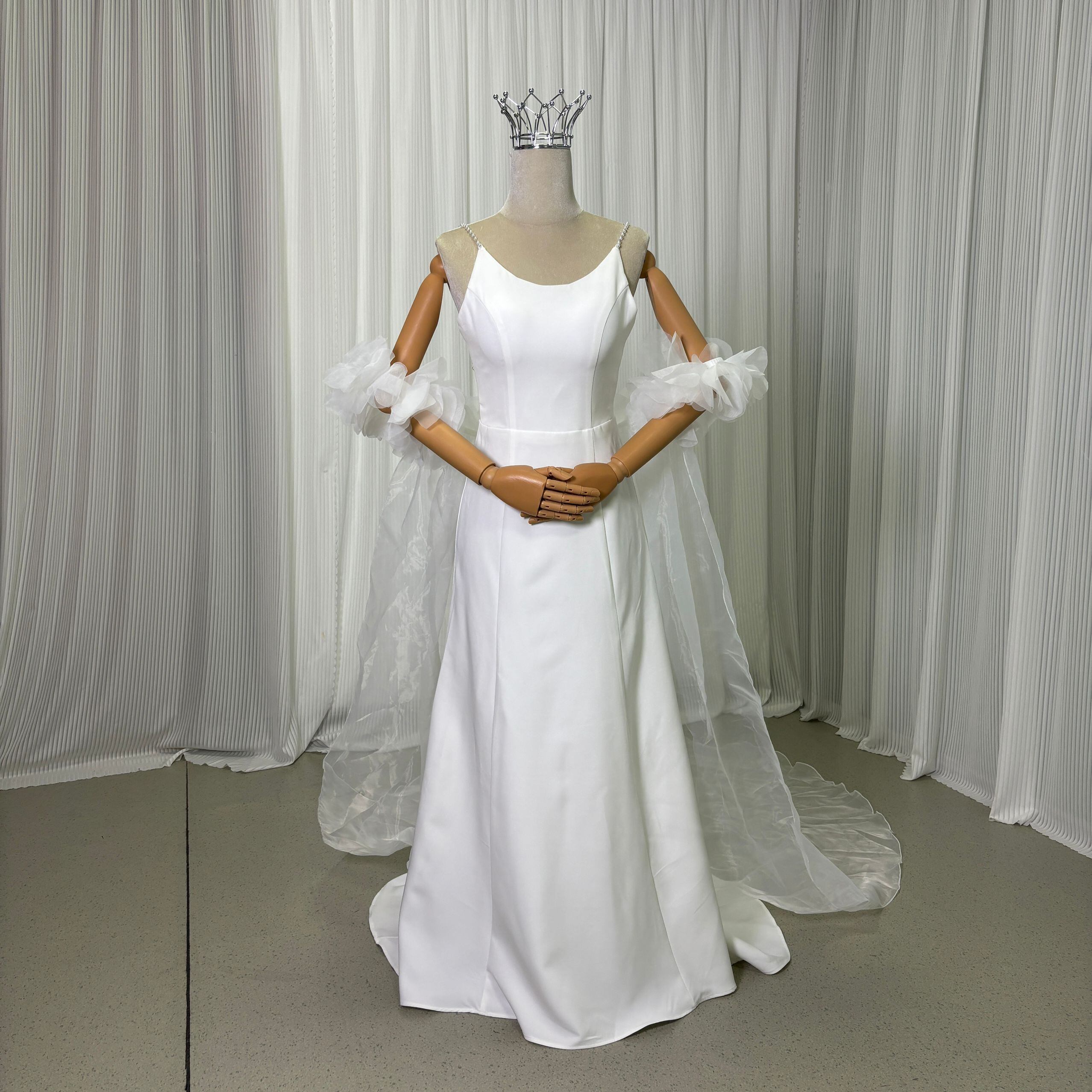 ウェディングドレス クレープ生地 マント オーガンジー オフホワイト キャミソール 結婚式 2次会 前撮り