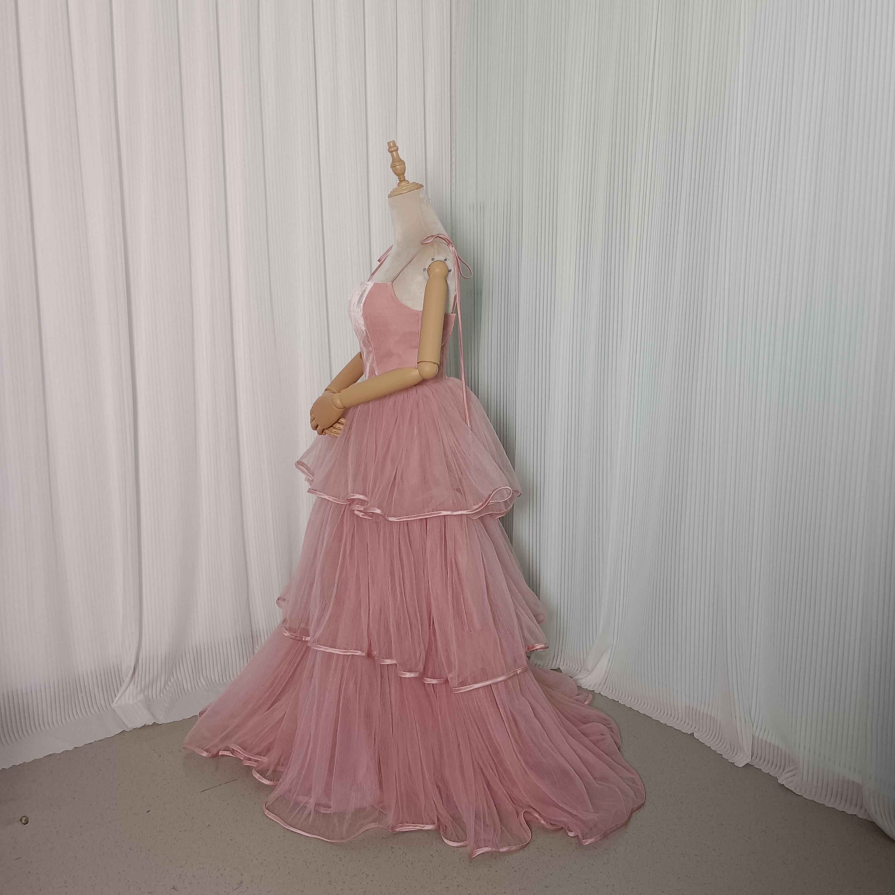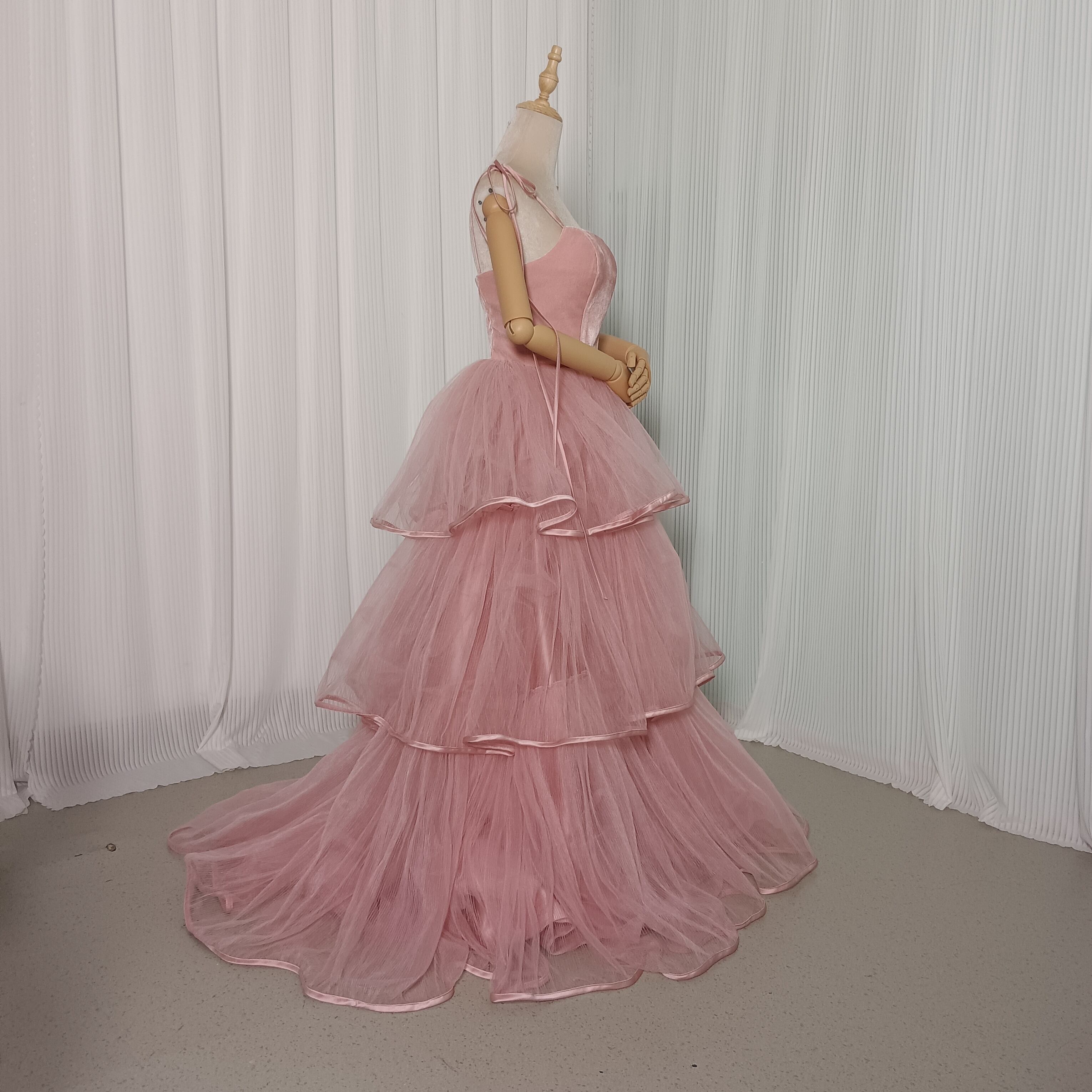 ピンクキャミソール カラードレス チュールドレス フリルオフショルダーお色直し結婚式 披露宴