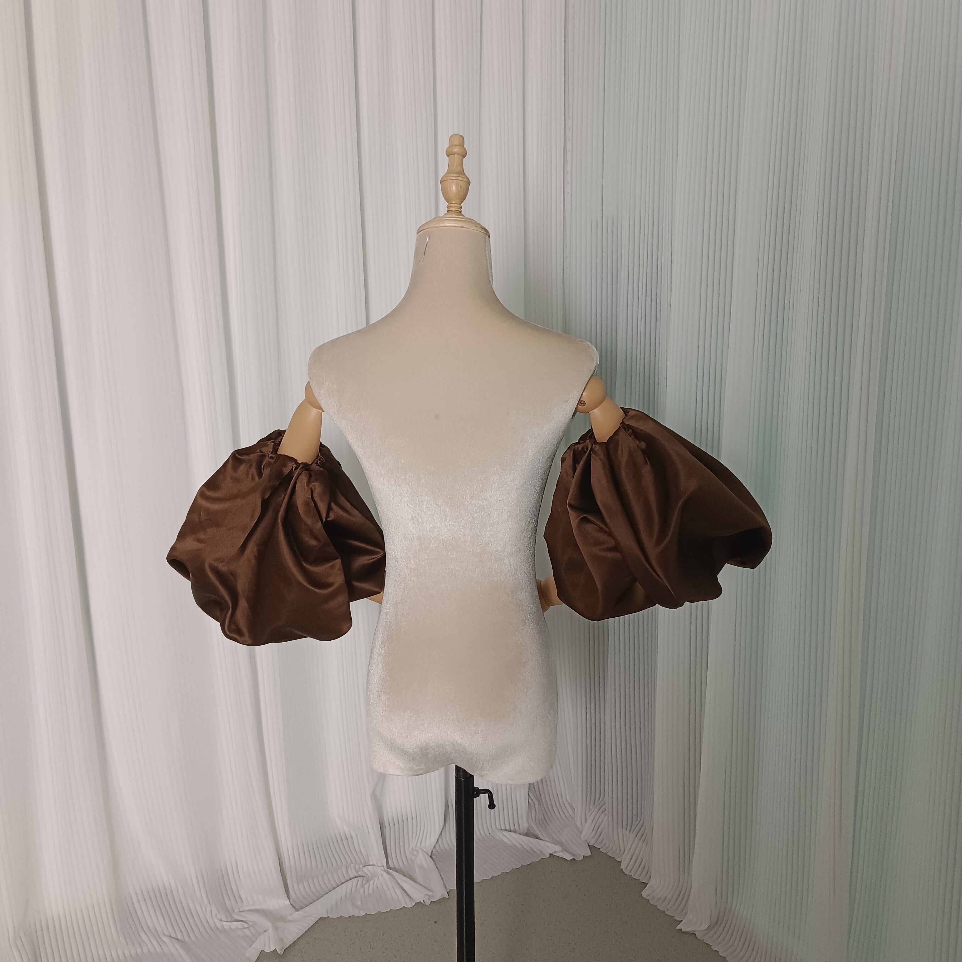 パフスリーブ ブラウン 光沢サテン ストレッチ ブライダル 前撮り 派手な 取り外し袖