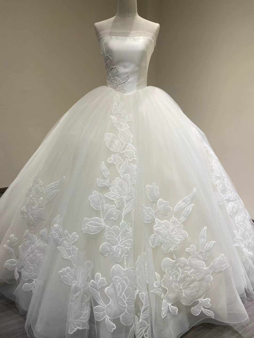 ウェディングドレス ベアトップ 魅惑の花レース プリンセスライン 披露宴/結婚式