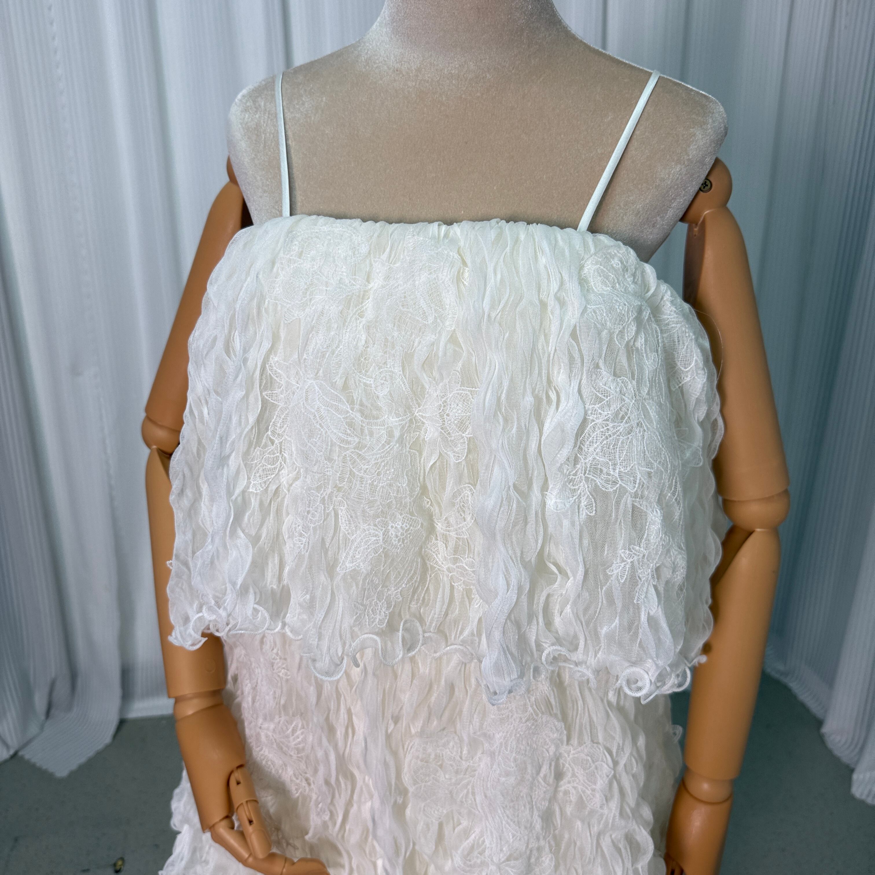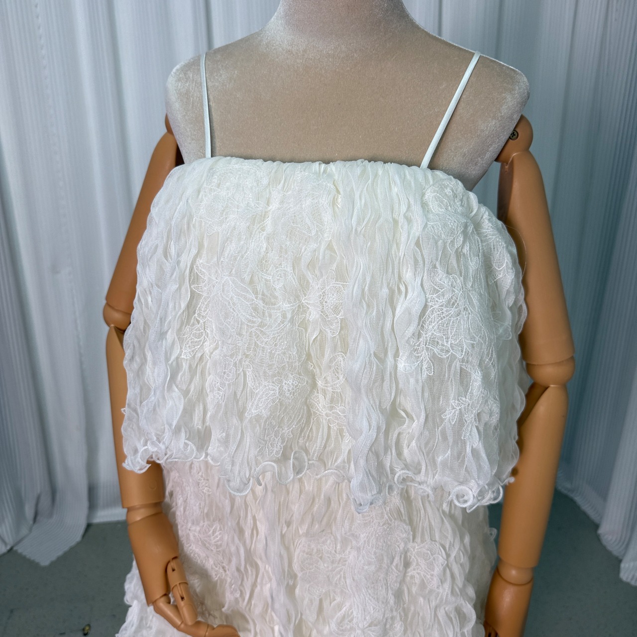 ウェディングドレス 柔らかく重ねたチュールスカート 流れる透け花レース キャミソール ロング アイボリー 花嫁