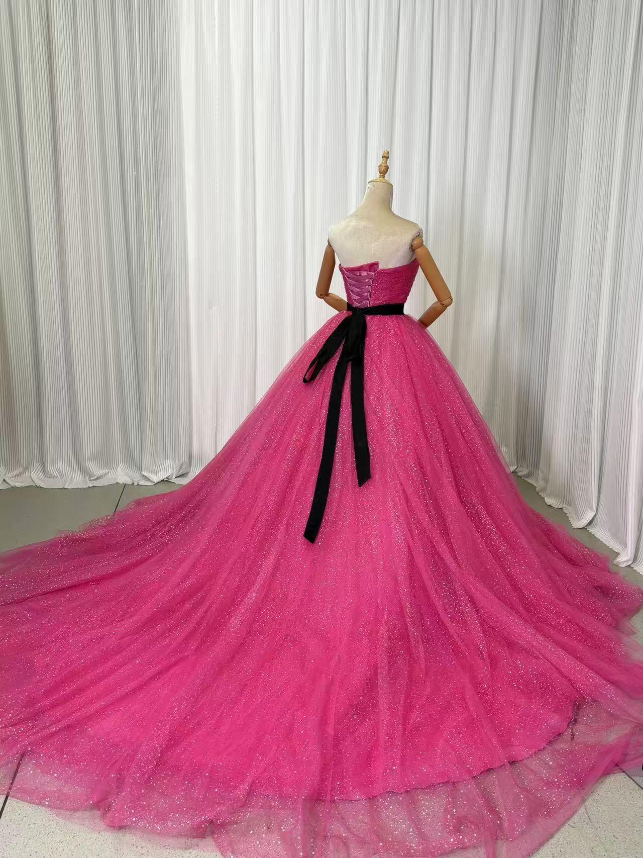カラードレス ビスチェタイプ サッシュベルト ビビッドピンク キラキラチュール 派手な 目立つ