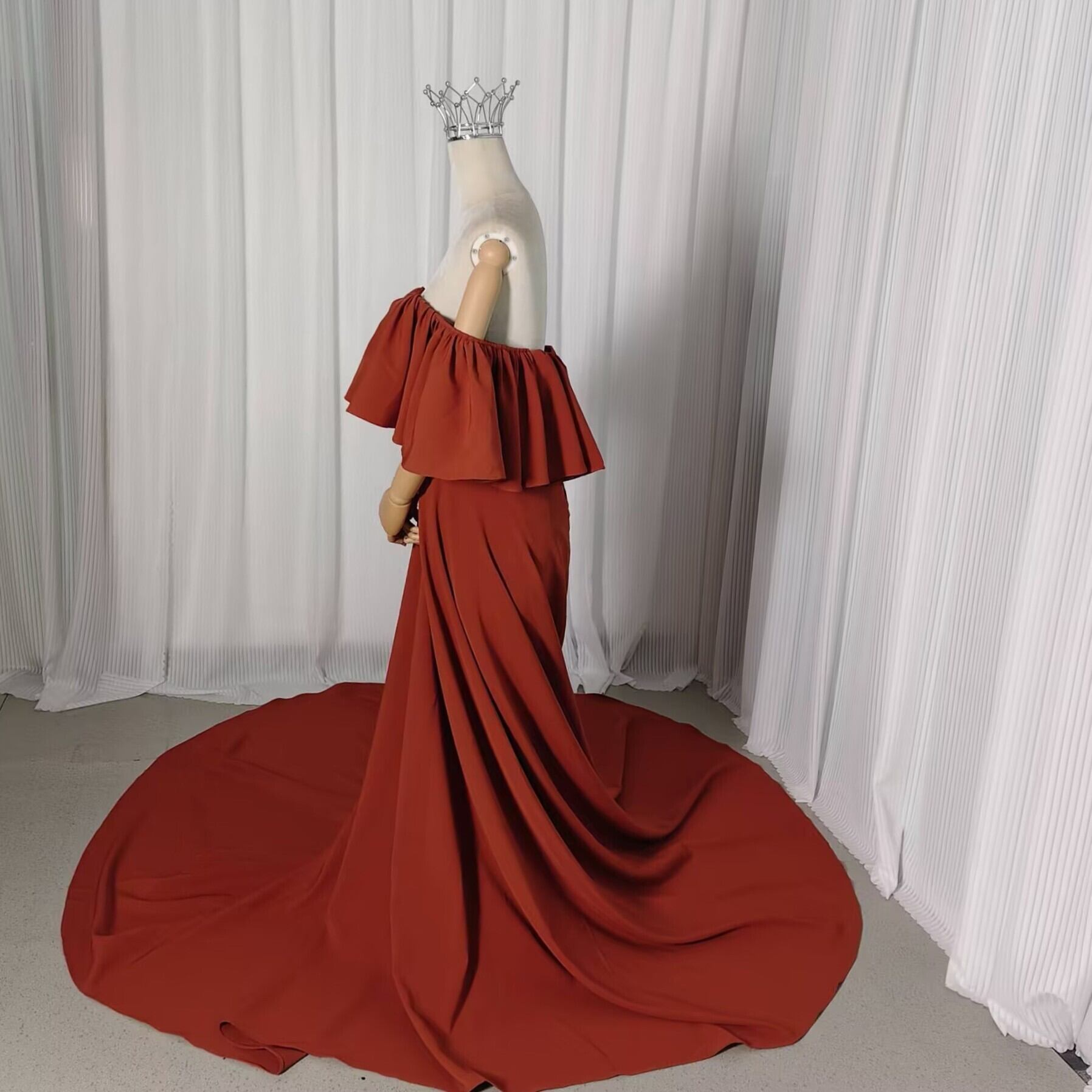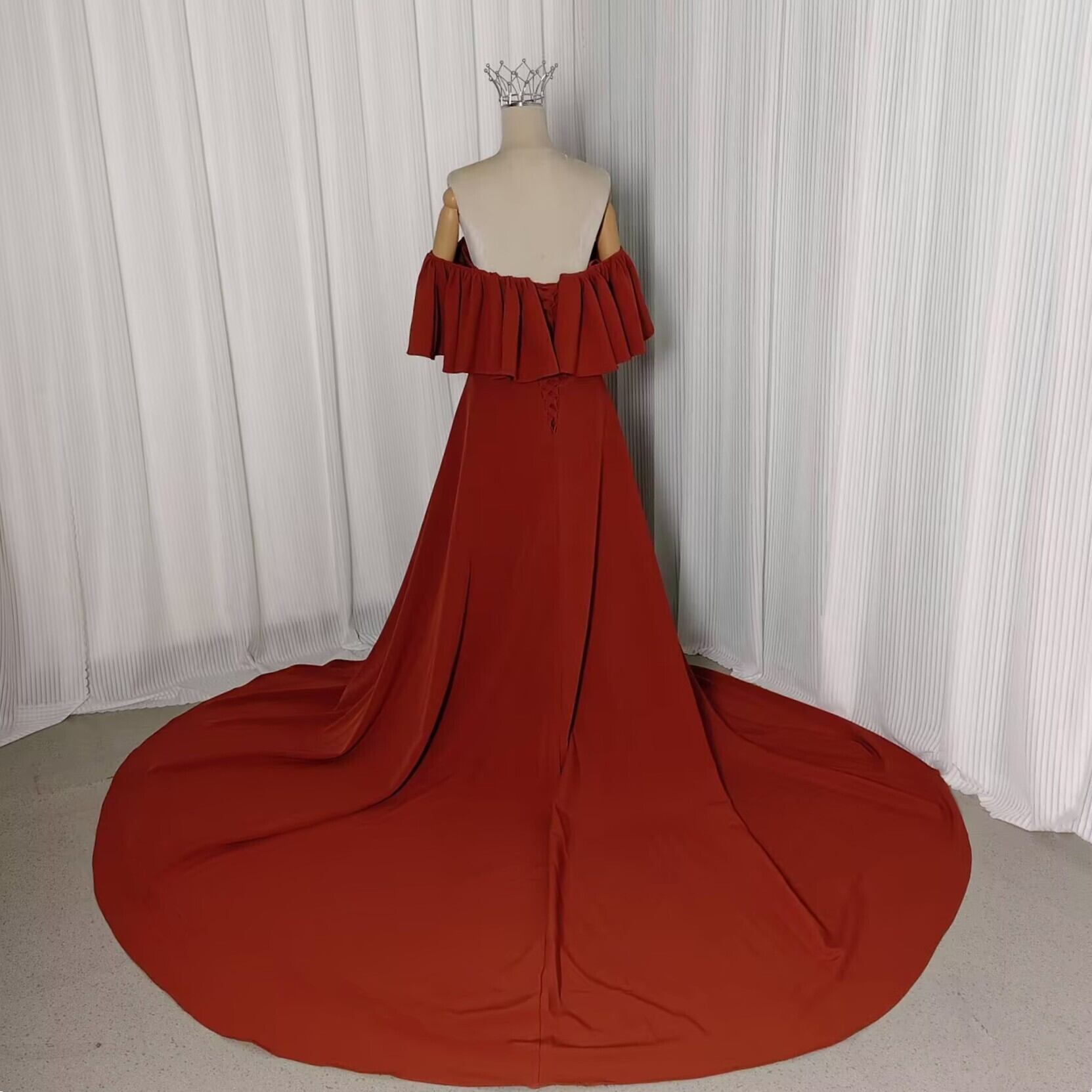 パーティードレス テラコッタ色 オフショルダー 編み上げ 前撮り