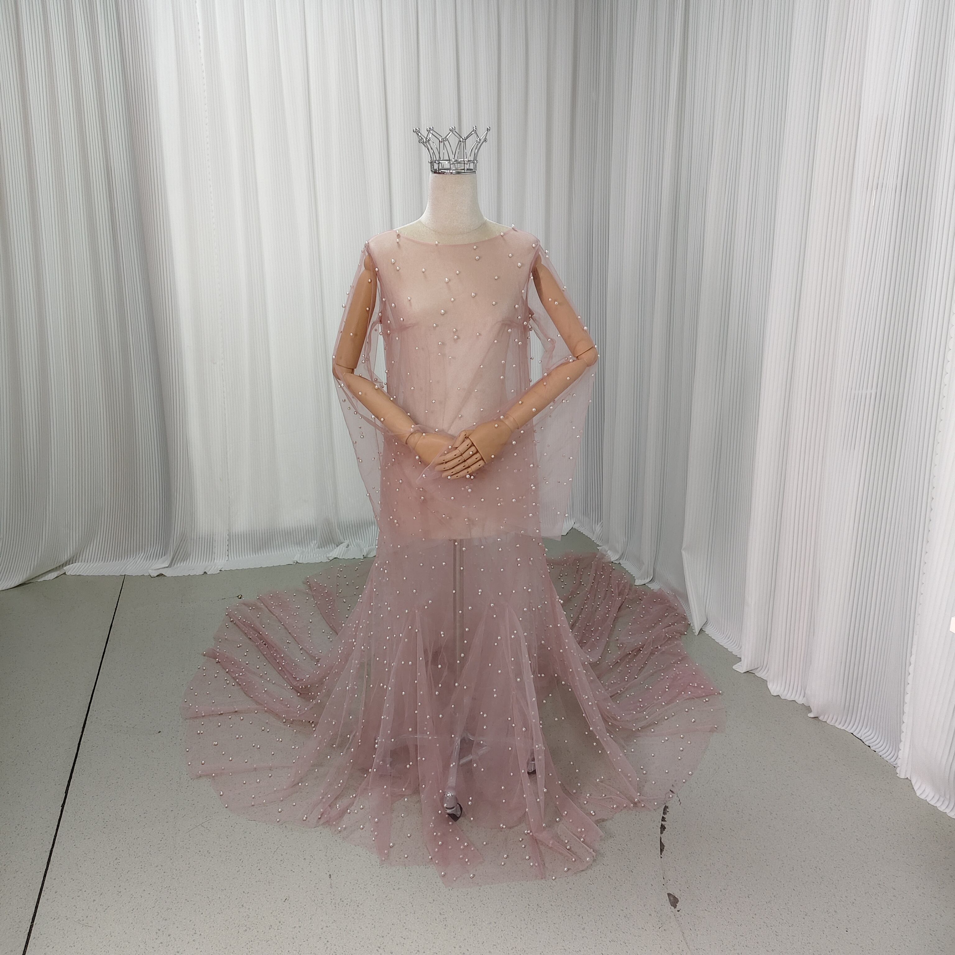 パーティードレス カラードレス ツーピース ピンク ビーズ フレア袖 キャミソール ロングトレーン 花嫁
