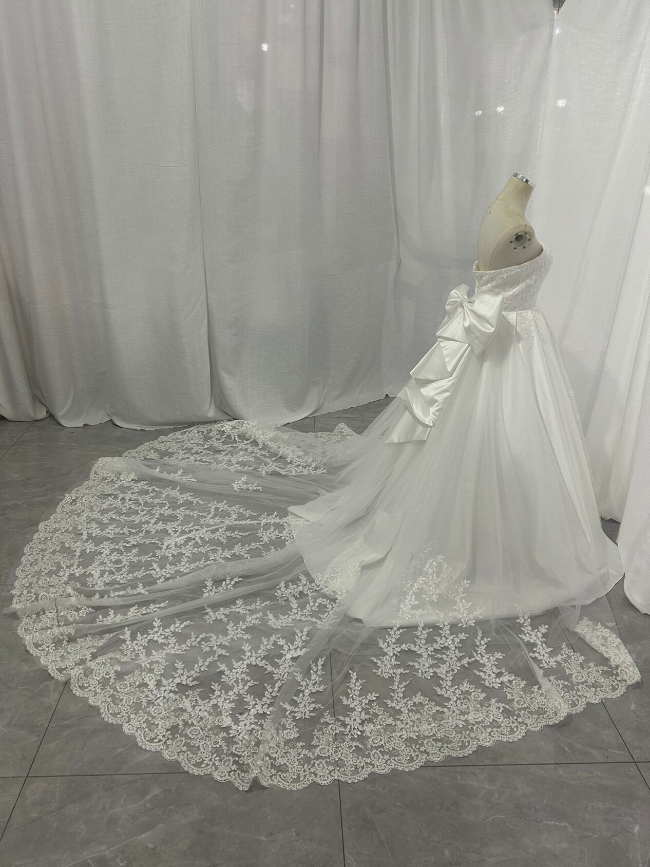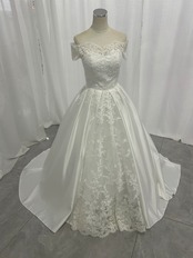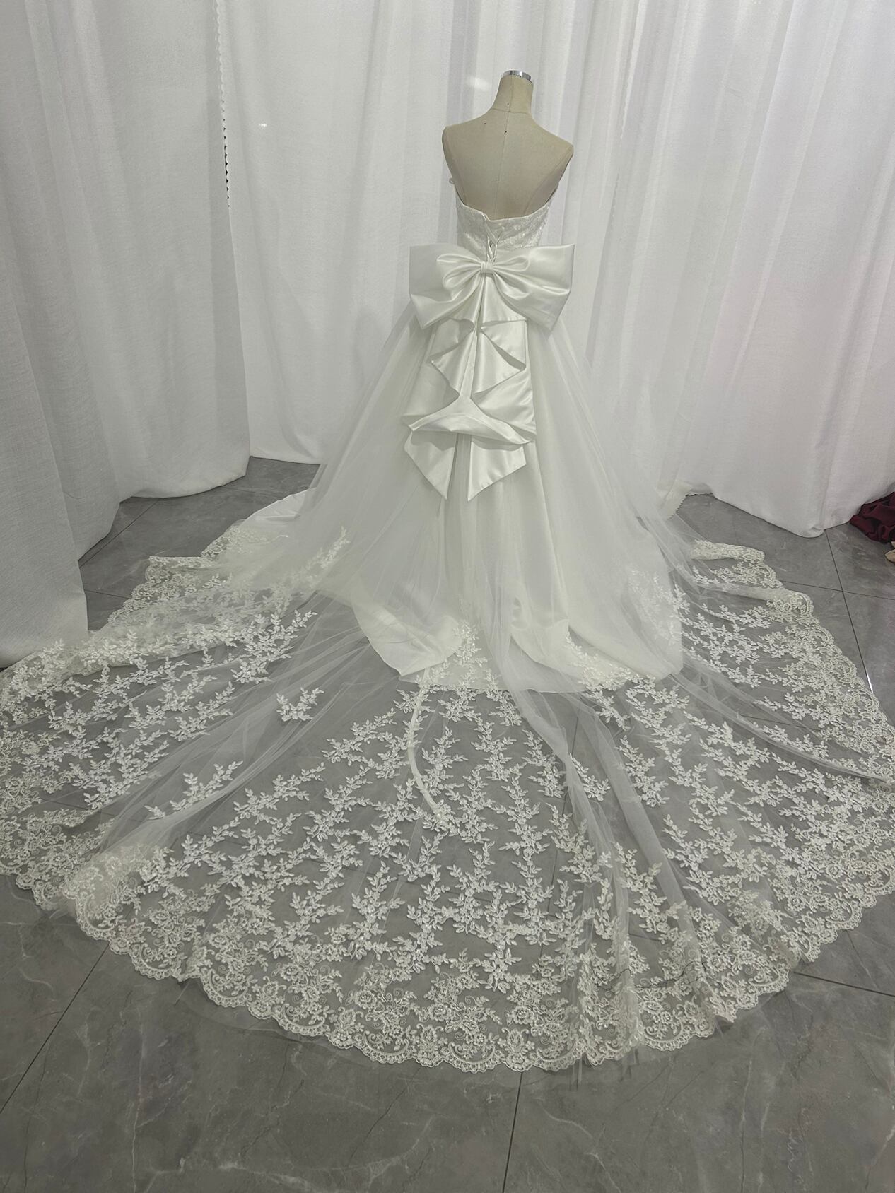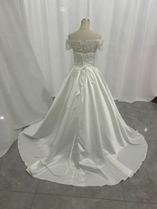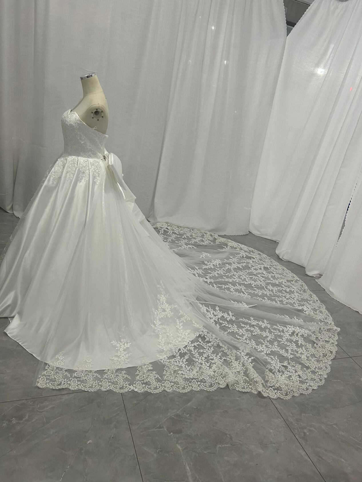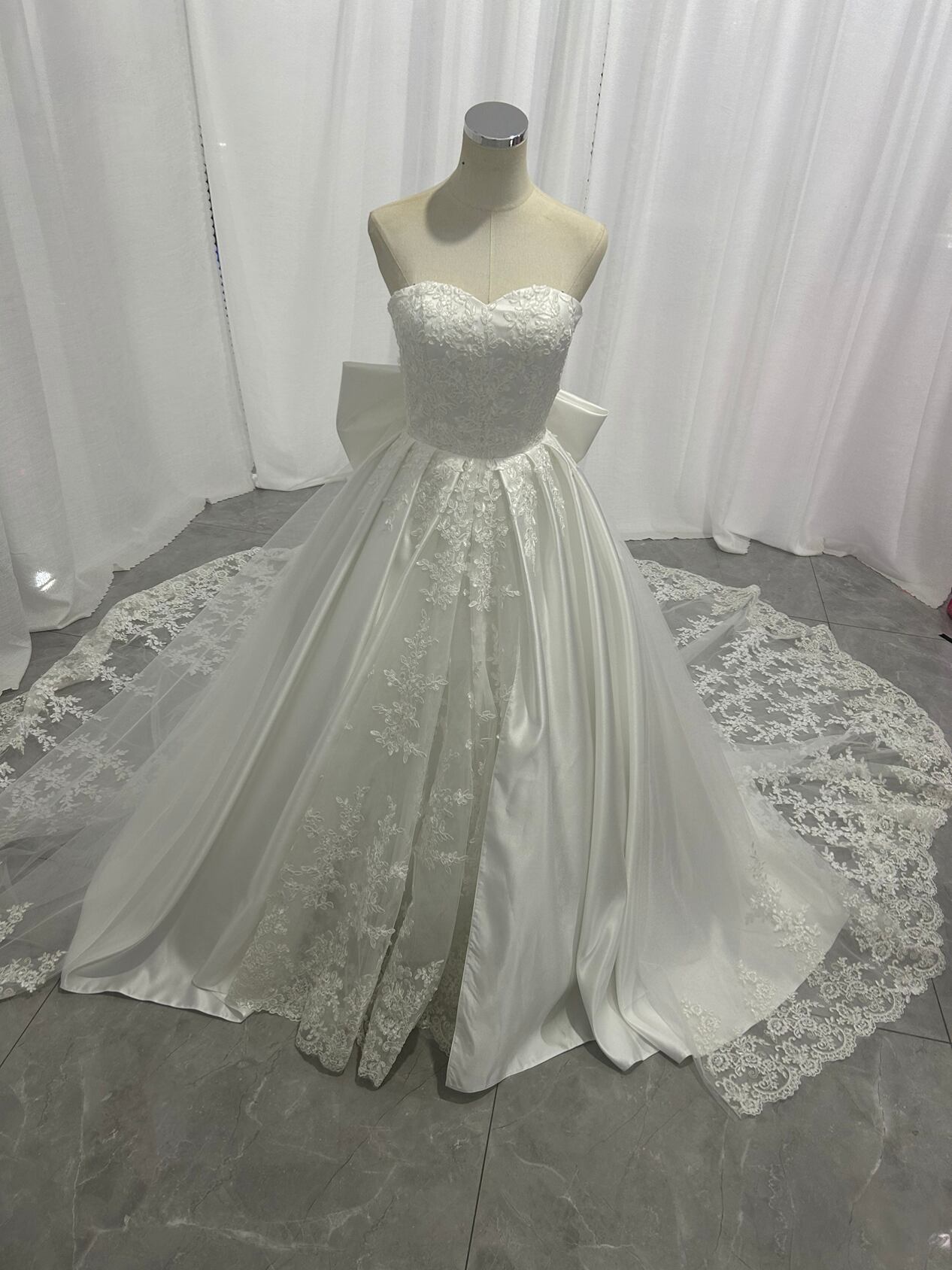 高品質!ウエディングドレス ビスチェボレロ 華やかなトレーン ベアトップ 光沢サテン 披露宴/結婚式