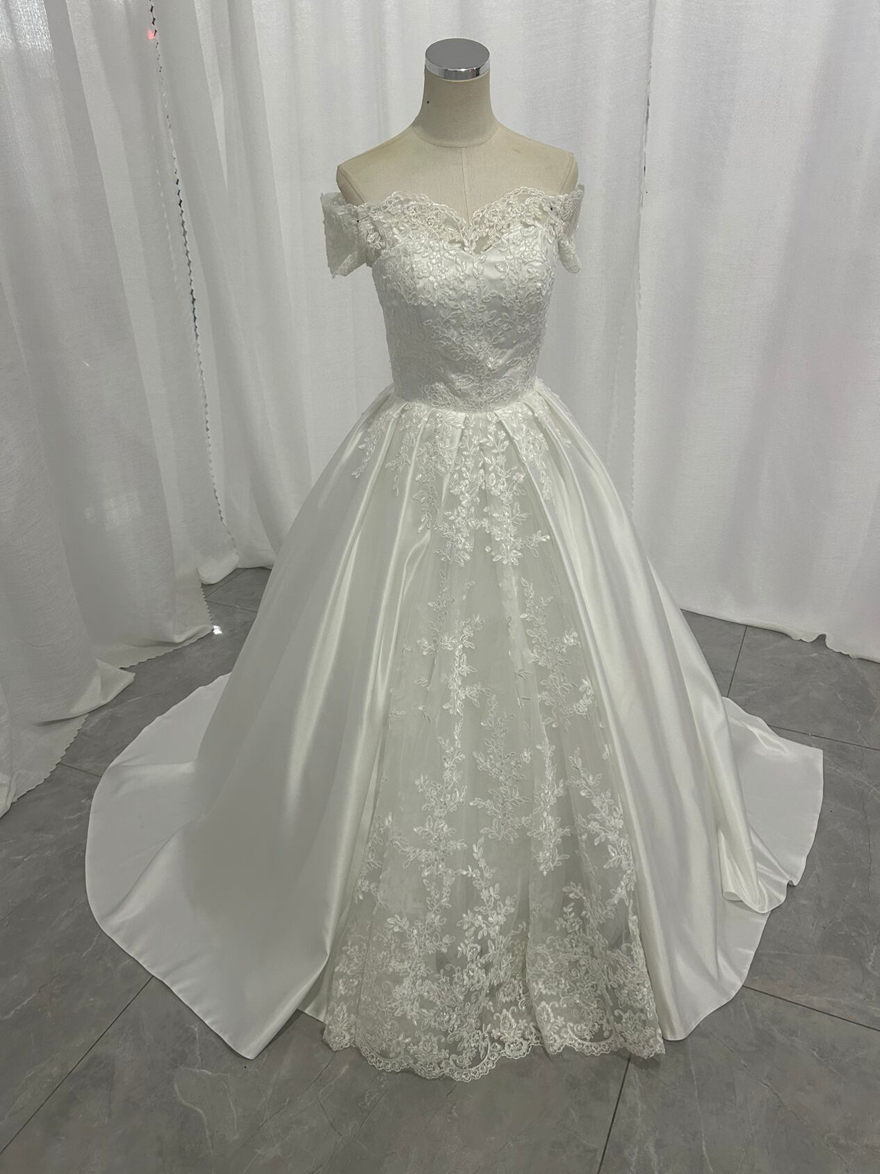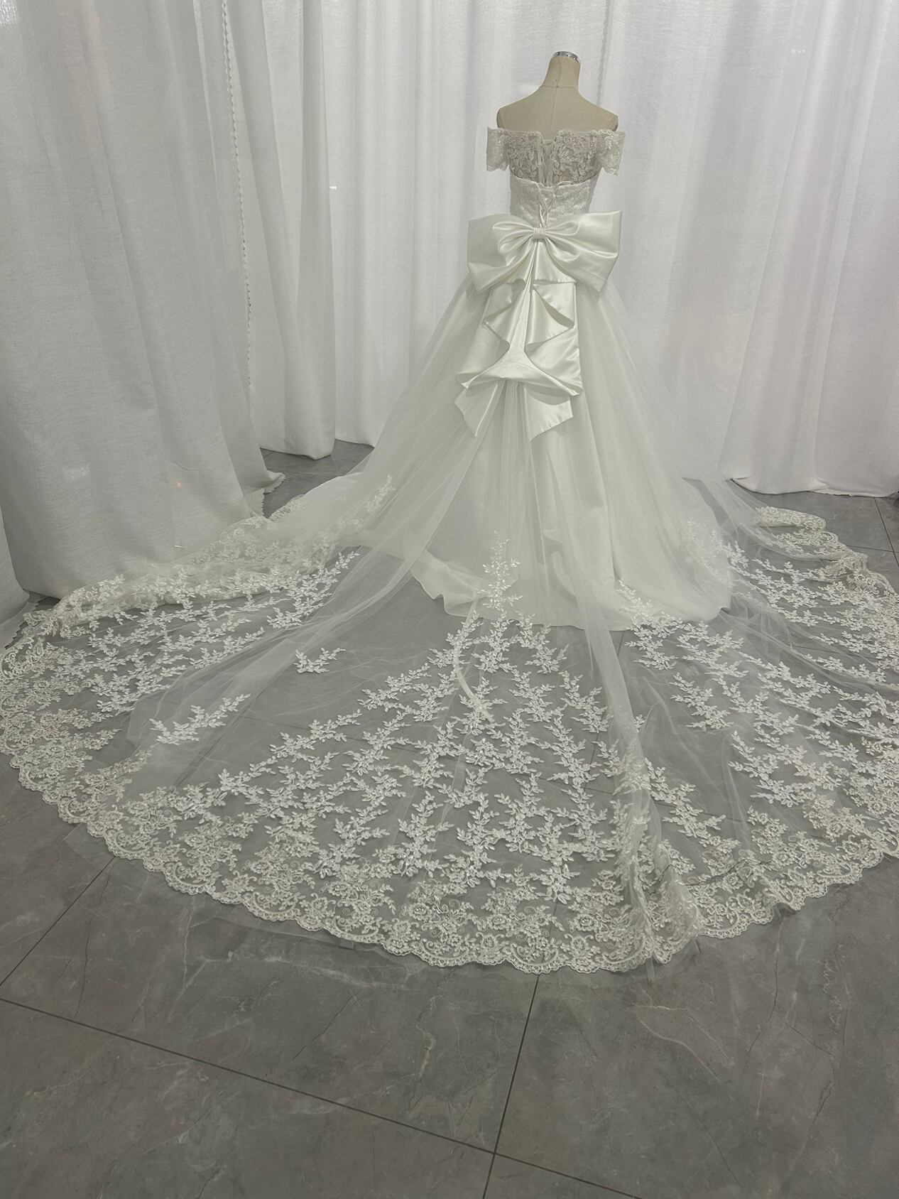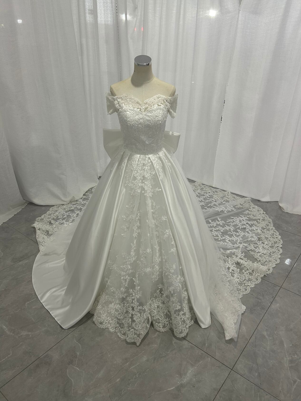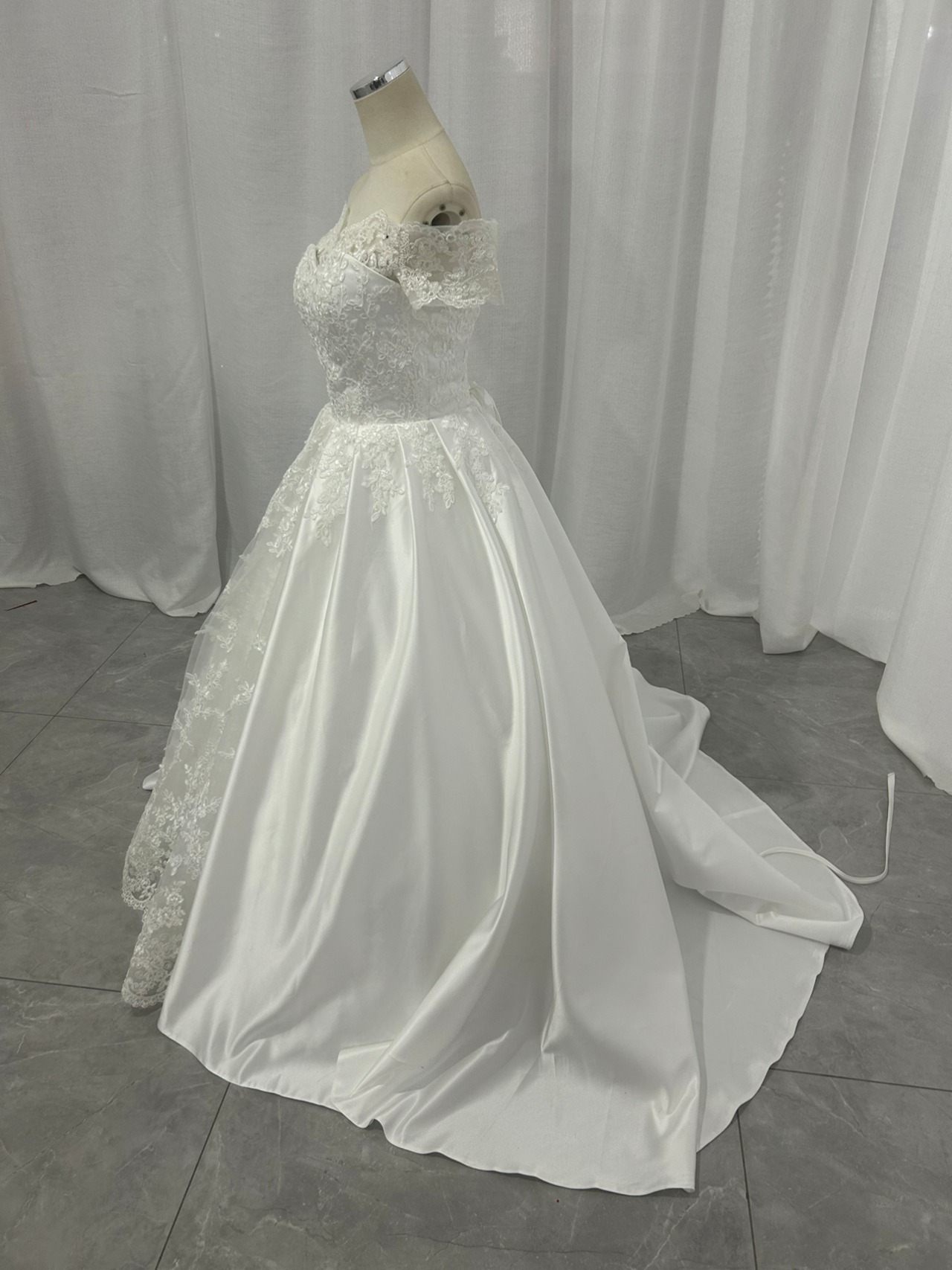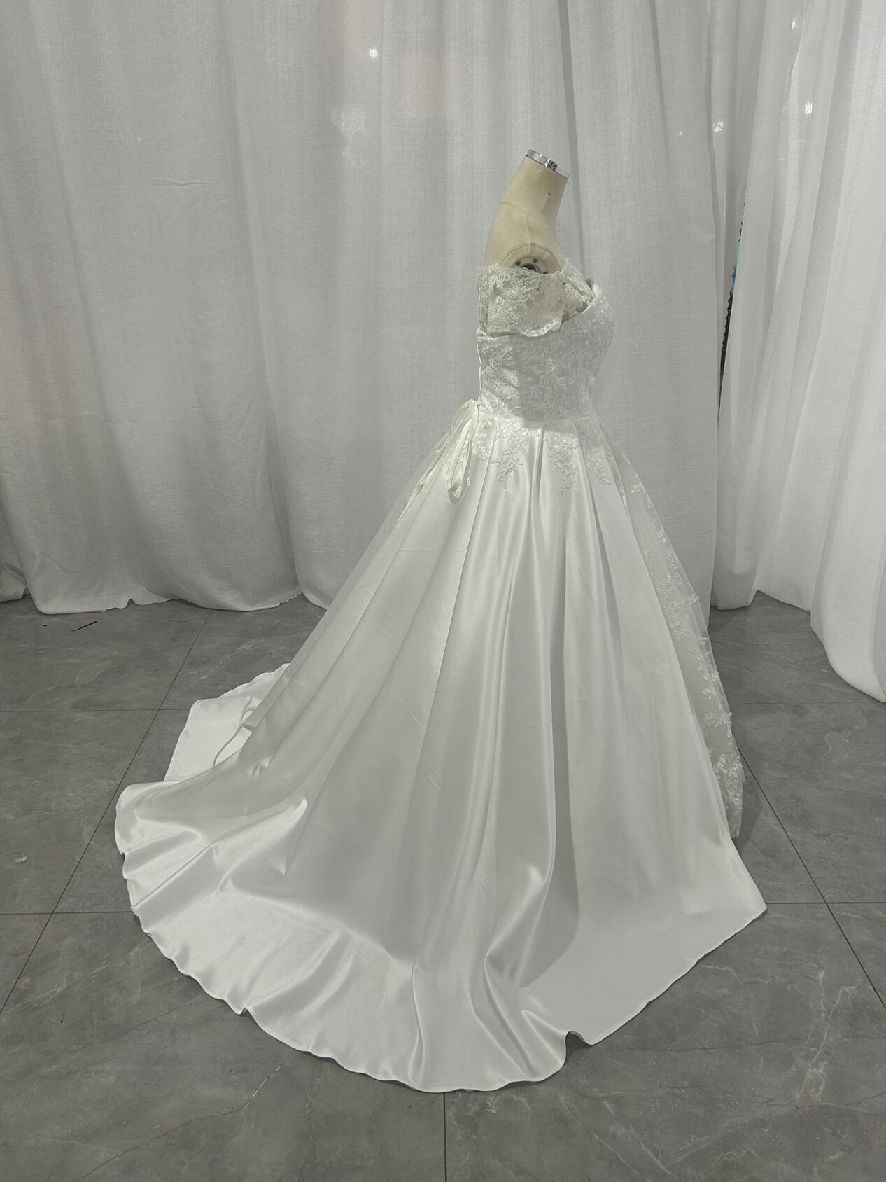 高品質!ウエディングドレス ビスチェボレロ 華やかなトレーン ベアトップ 光沢サテン 披露宴/結婚式