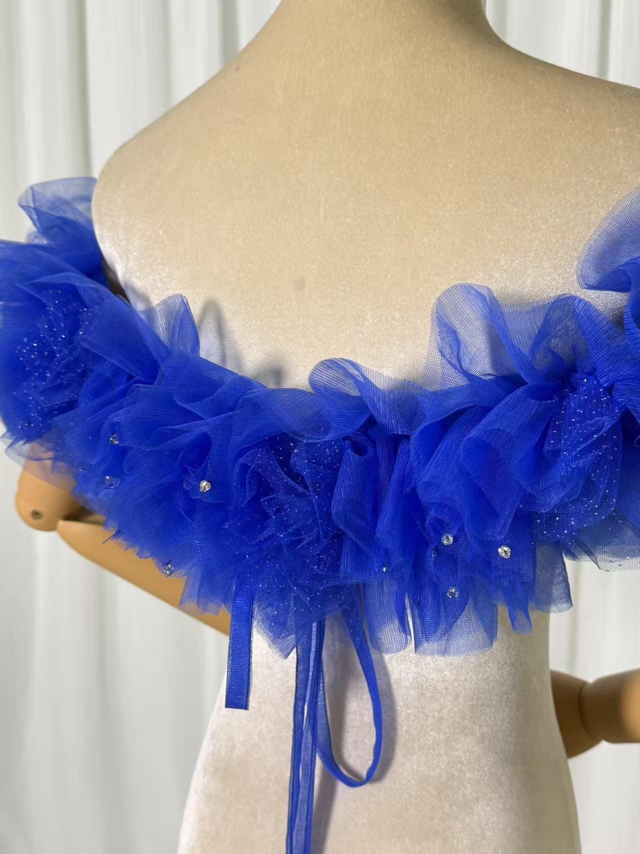 カラードレス ジュエルネイビー 取り外しオフショルダー キラキラスパンコール 編み上げ 派手な 前撮り
