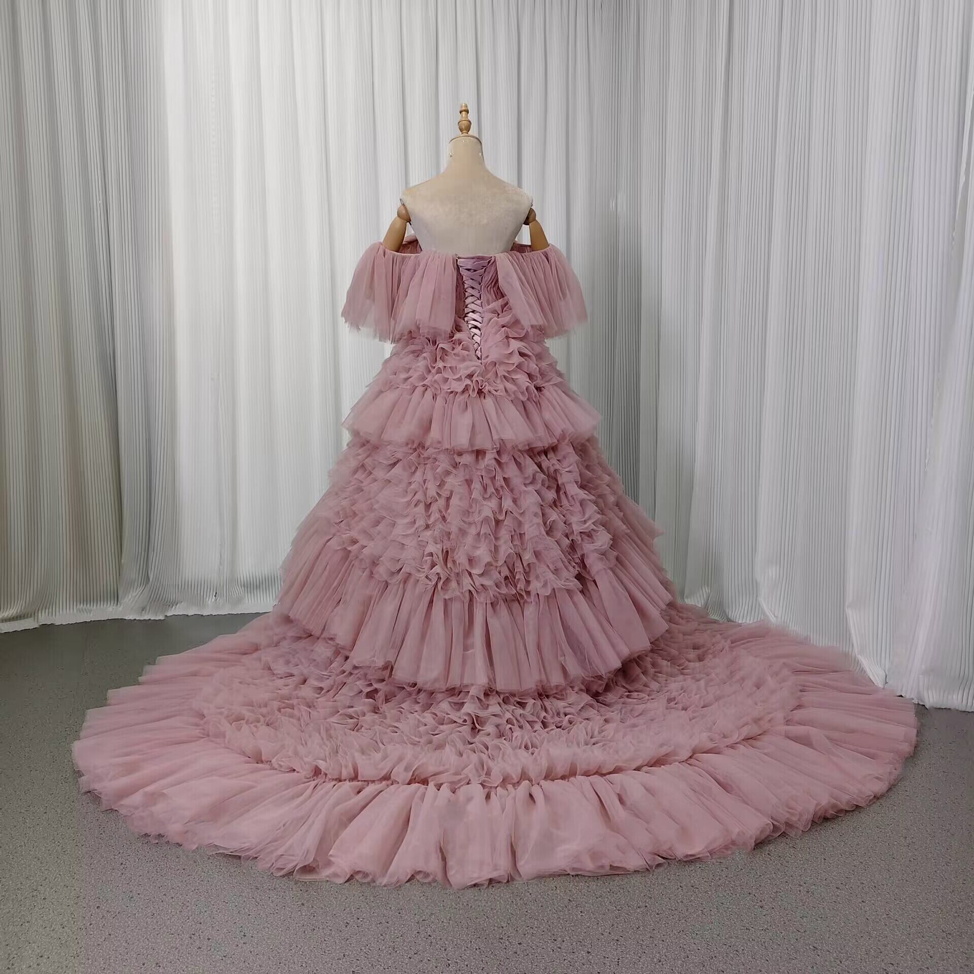 カラードレス オフショルダー ピンク ふわふわドレス プリンセスライン 可愛い 結婚式 ふわふわ 花嫁