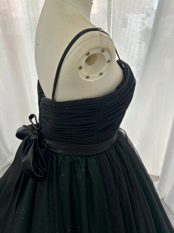 パーティードレス ブラック グリーン キャミソール キラキラチュール ロングトレーン 前撮り