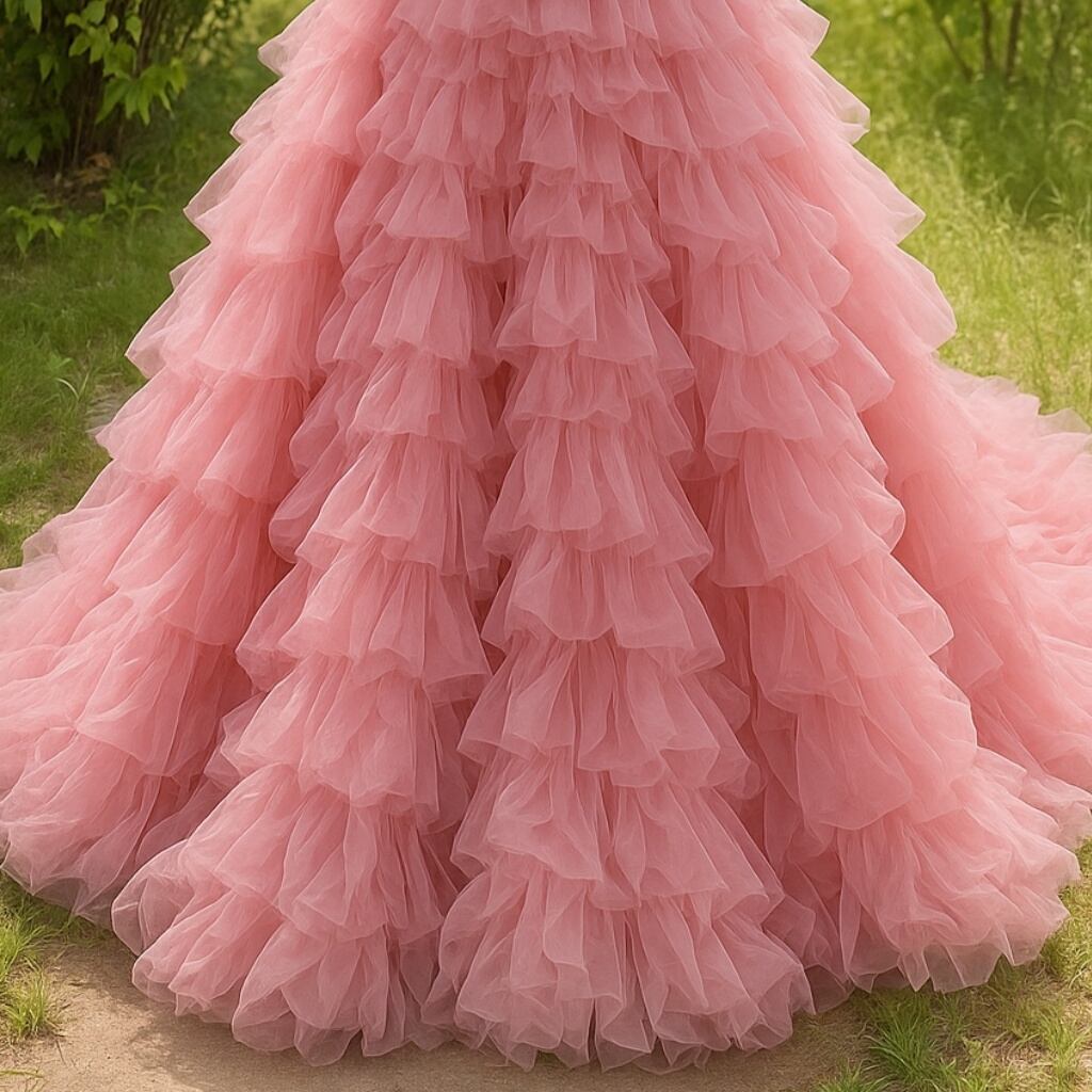 カラードレス ピンク ティアードのドレス ベアトップ ふわふわドレス プリンセスライン 結婚式/披露宴
