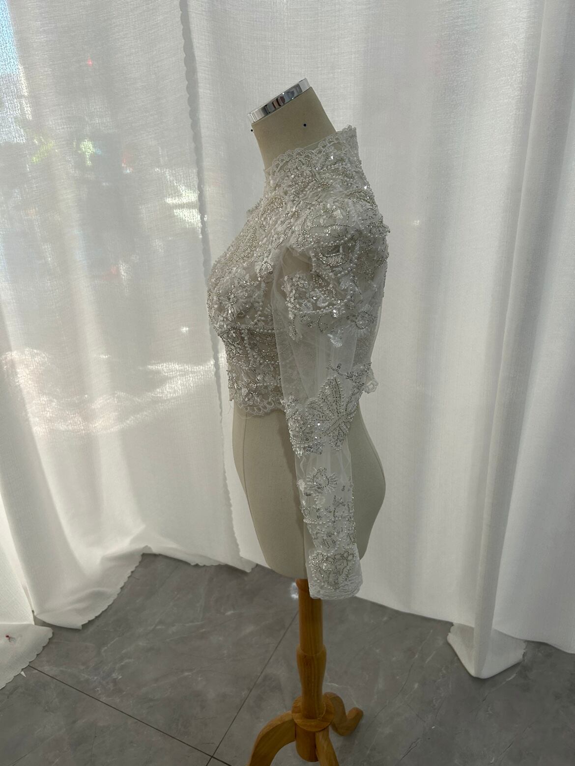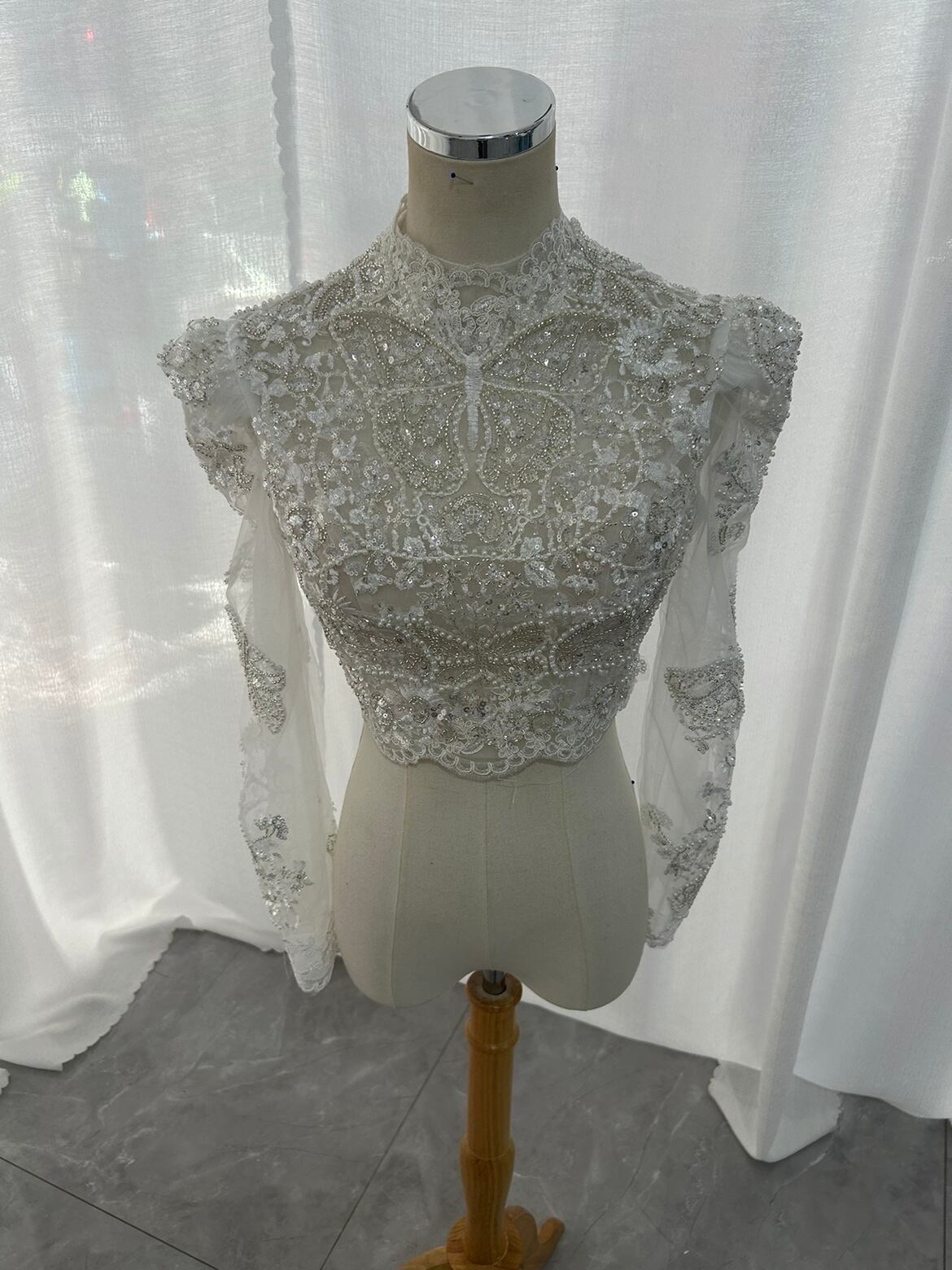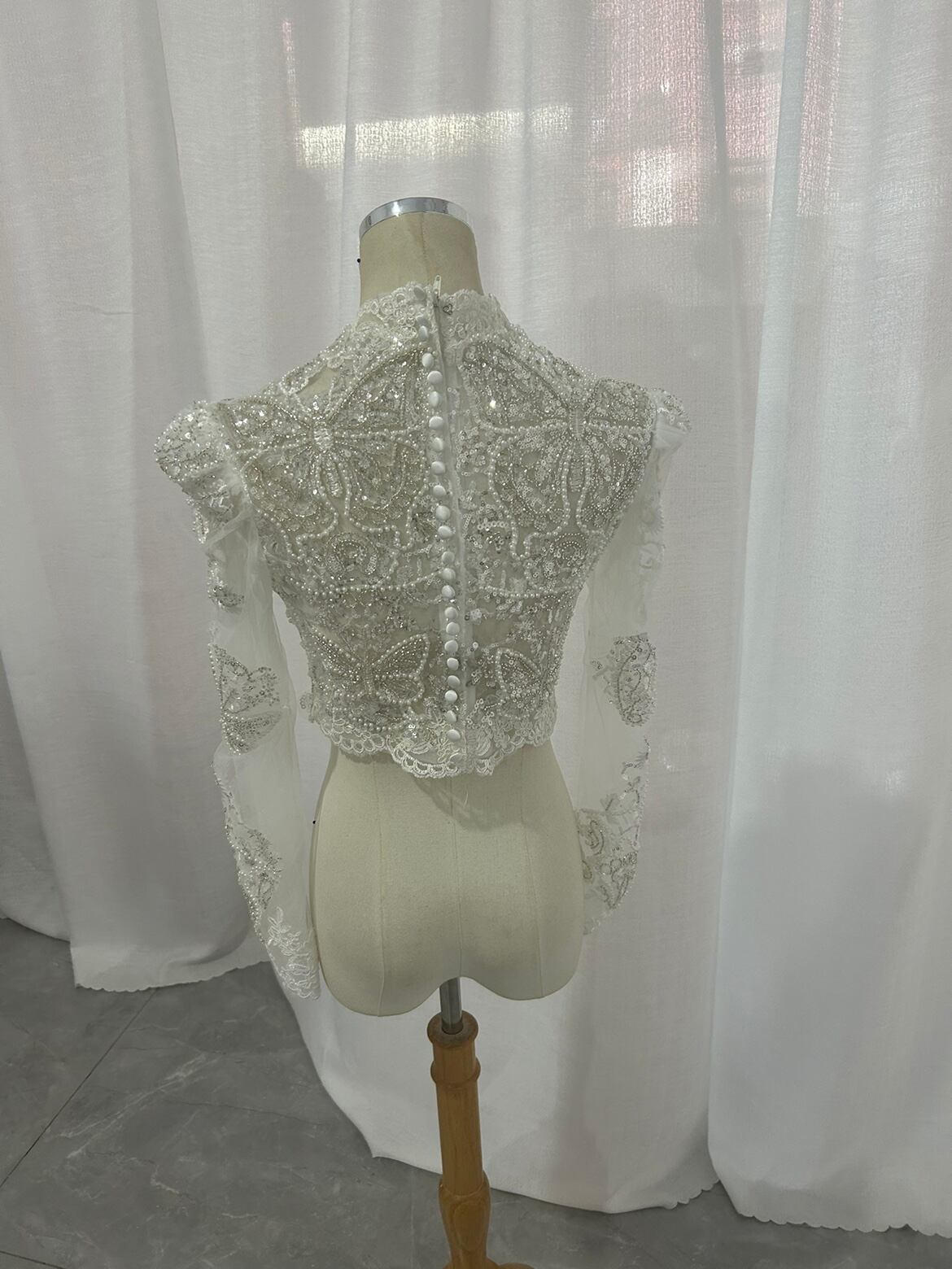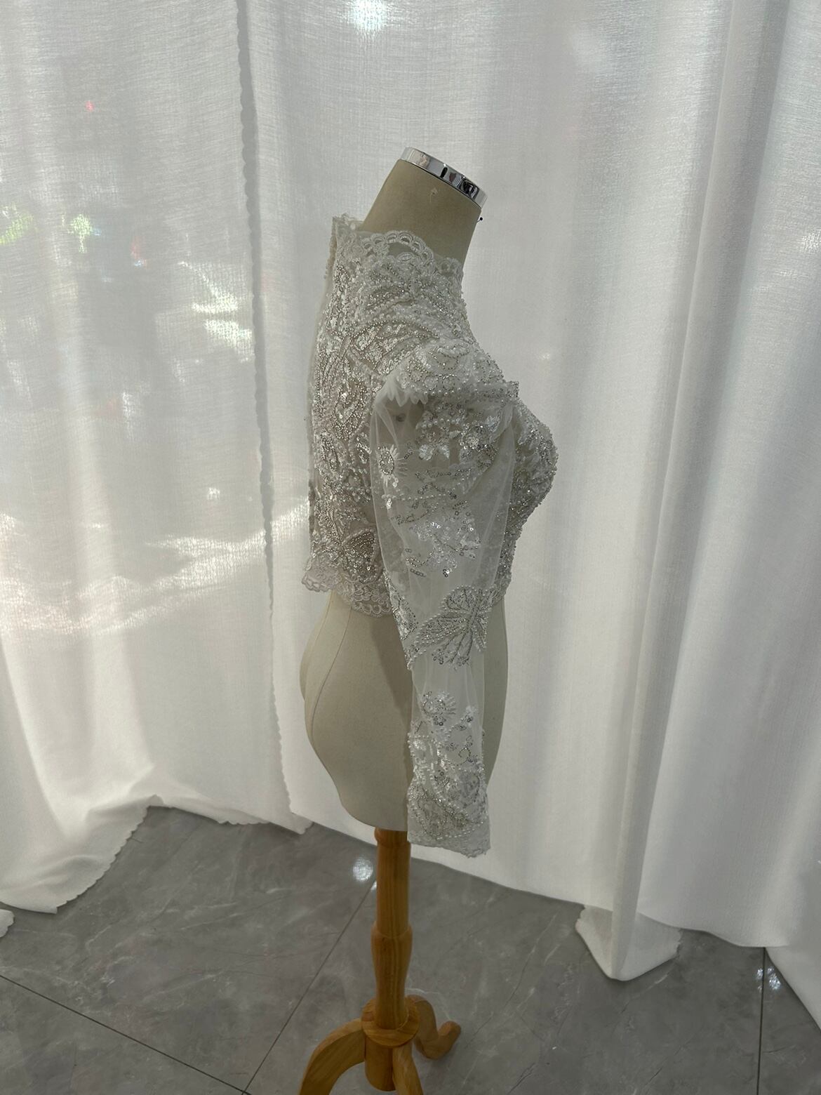 ボレロ 半袖 ハイネック キラキラ光る刺繍 韓国風ドレス 華やか 披露宴/結婚式 素敵な