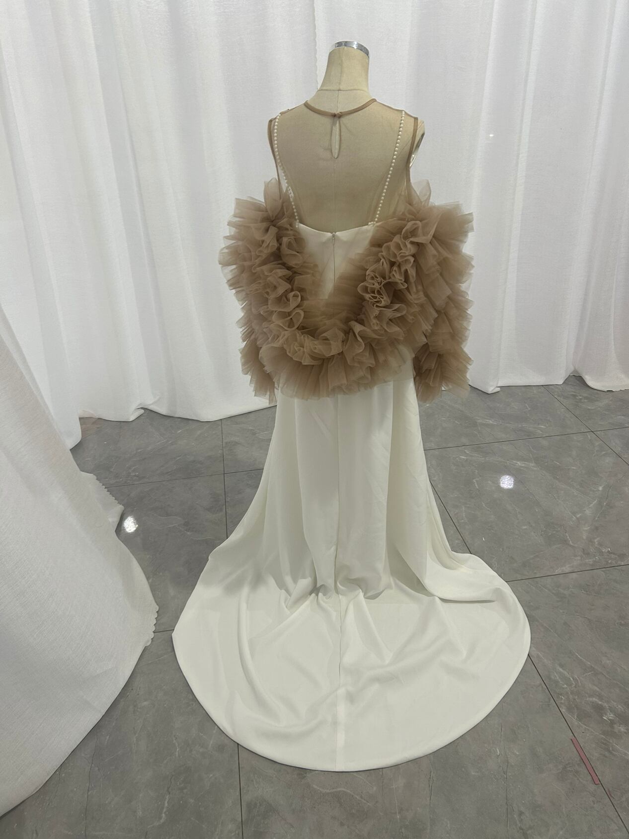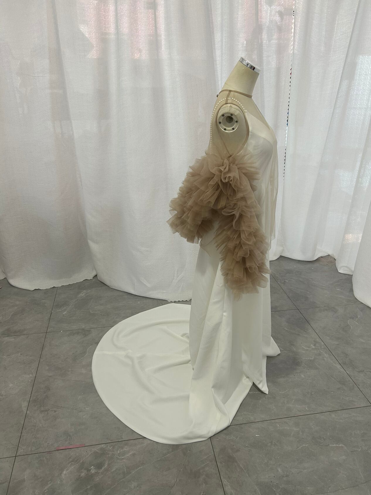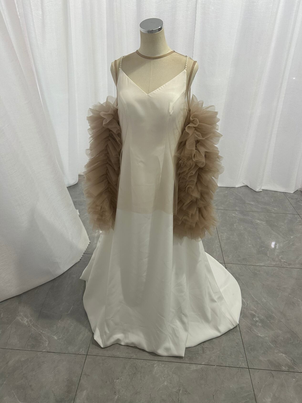 ウェディングドレス ケープ風ドレス ベージュ 優しい 披露宴/結婚式 ふわふわ ロングワンピース