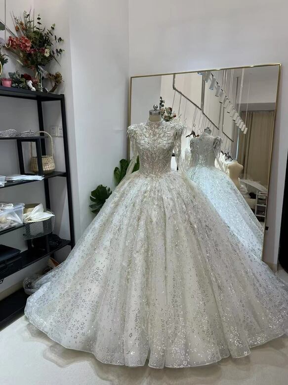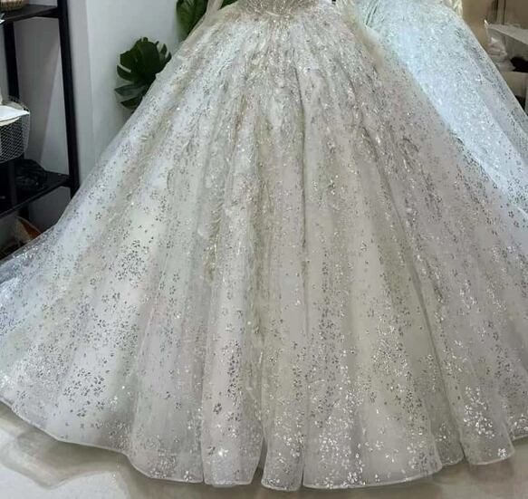 韓国風キラキラウエディングドレス ビジュードレス グリッターチュール キラキラ刺繍 結婚式 前撮り 披露宴