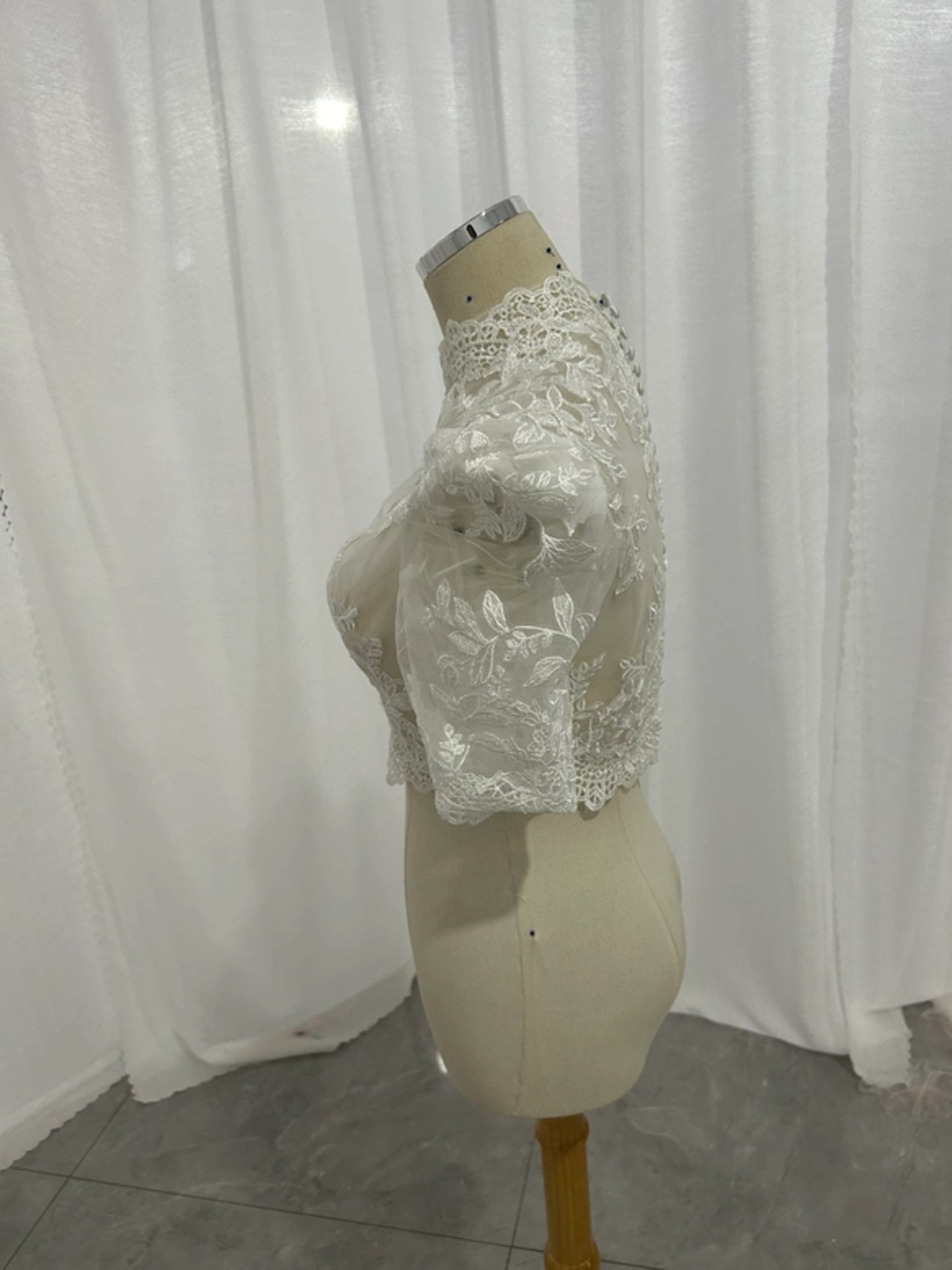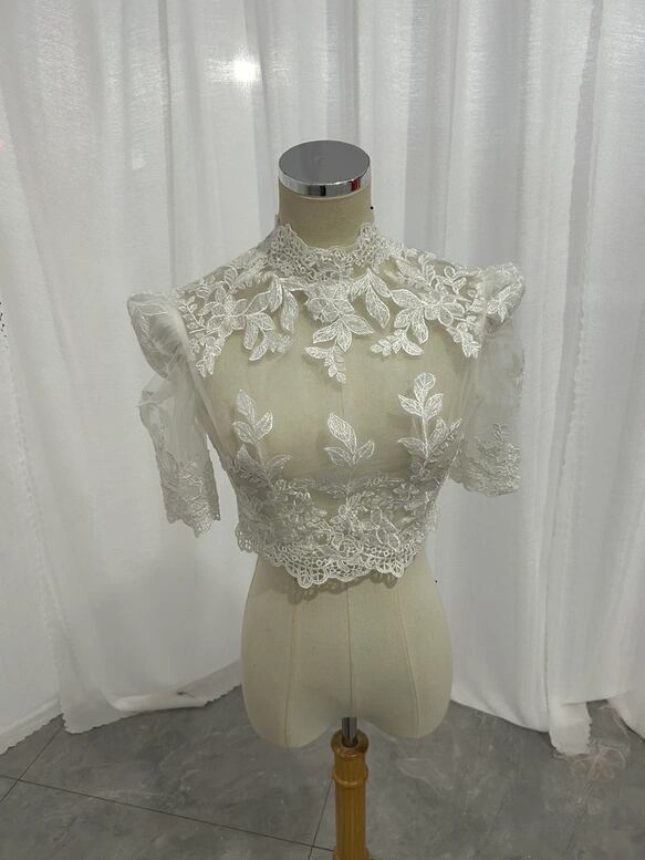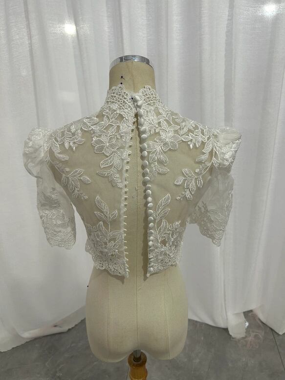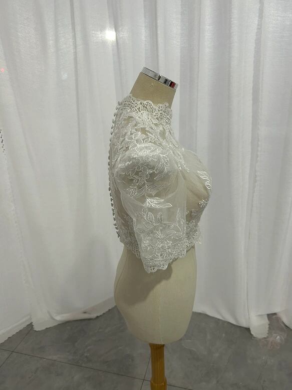 ボレロ ハイネック くるみボタン リーフ刺繍 半袖 可愛い 結婚式/披露宴