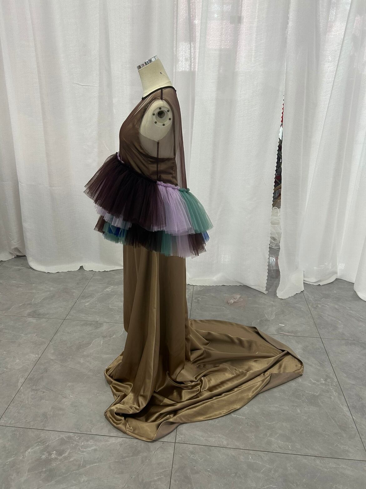 パーティードレス 前撮り 二次会 ツーピース アシメドレス 虹色 カーキ色 绮丽な 優しい