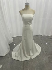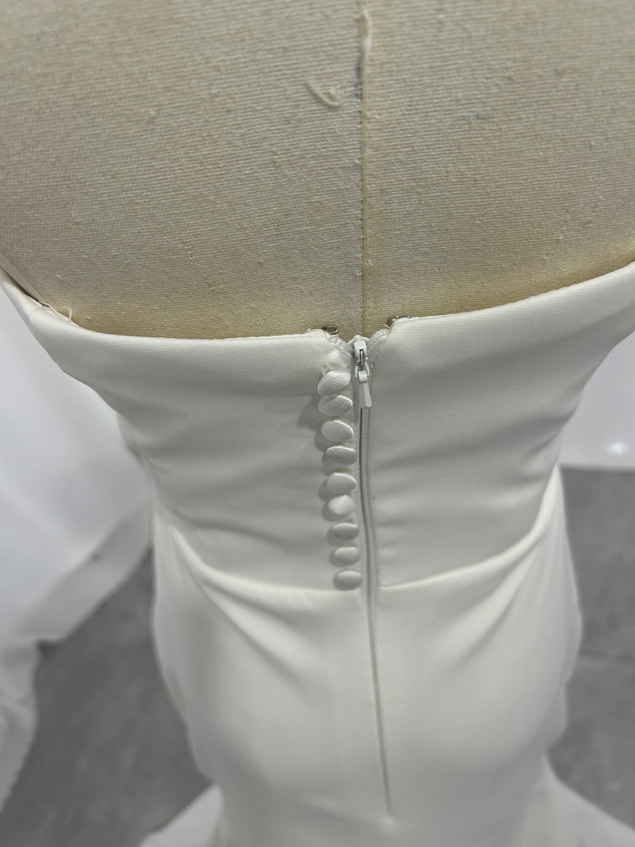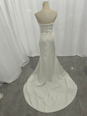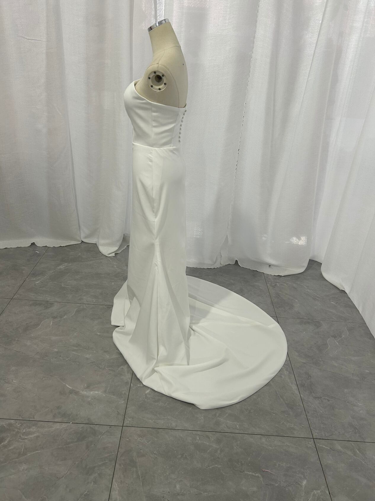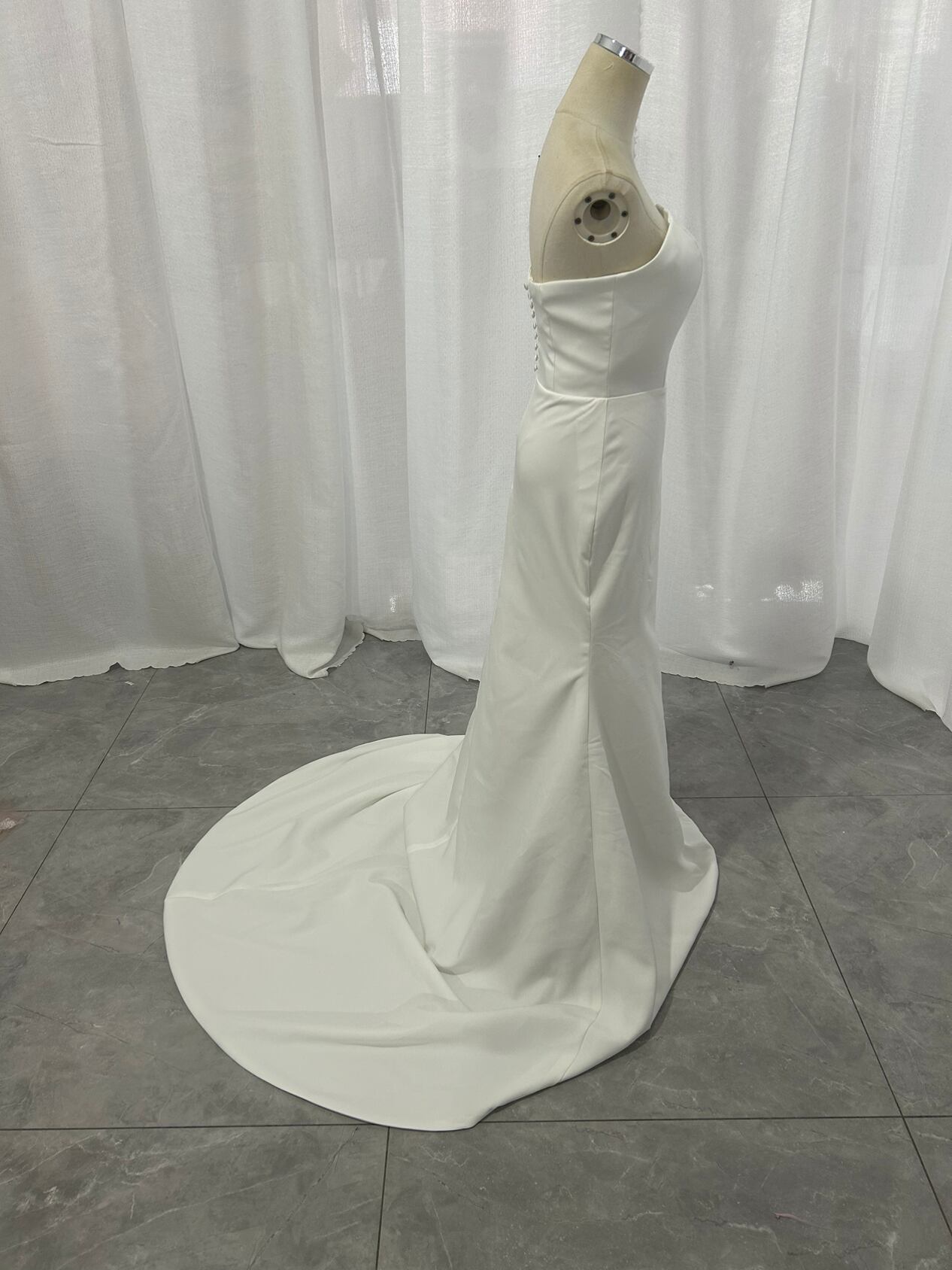 ウエディングドレス クレープ生地 くるみボタン マーメイドライン ベアトップ ビスチェドレス ブライダル