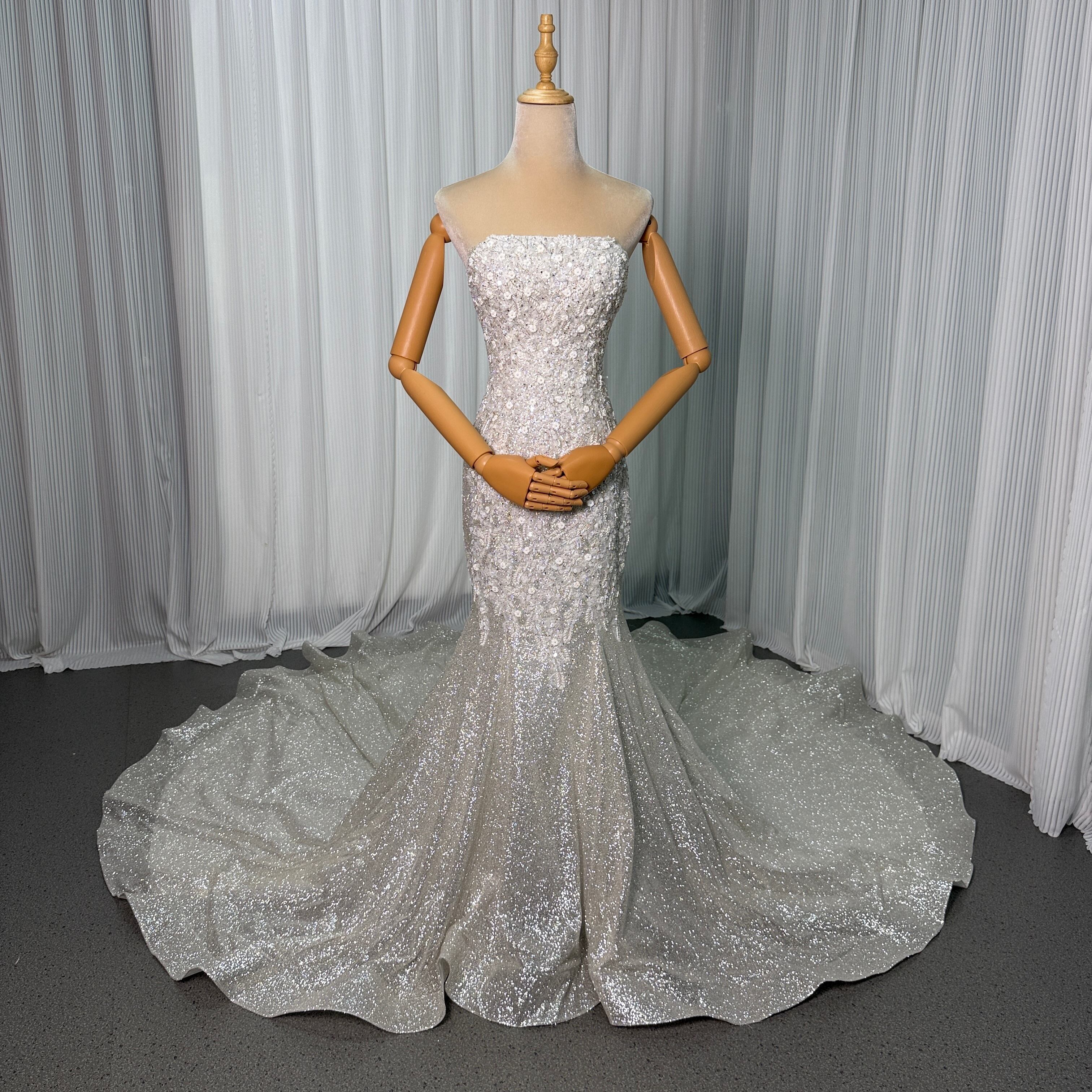 ウエディングドレス 韓国風ドレス グリッタードレス ビスチェドレス 華やか ハンドメイド 結婚式 花嫁