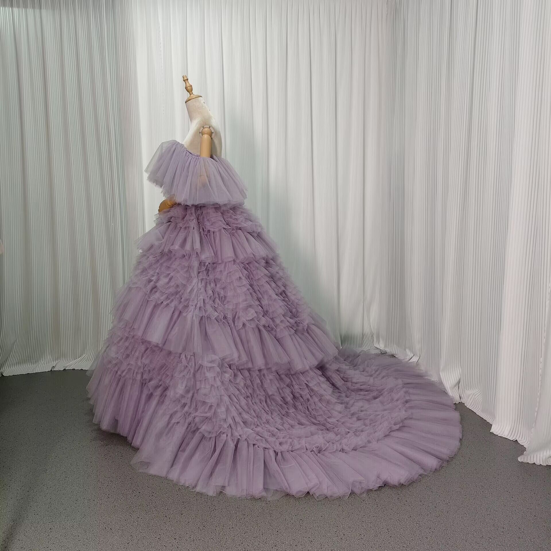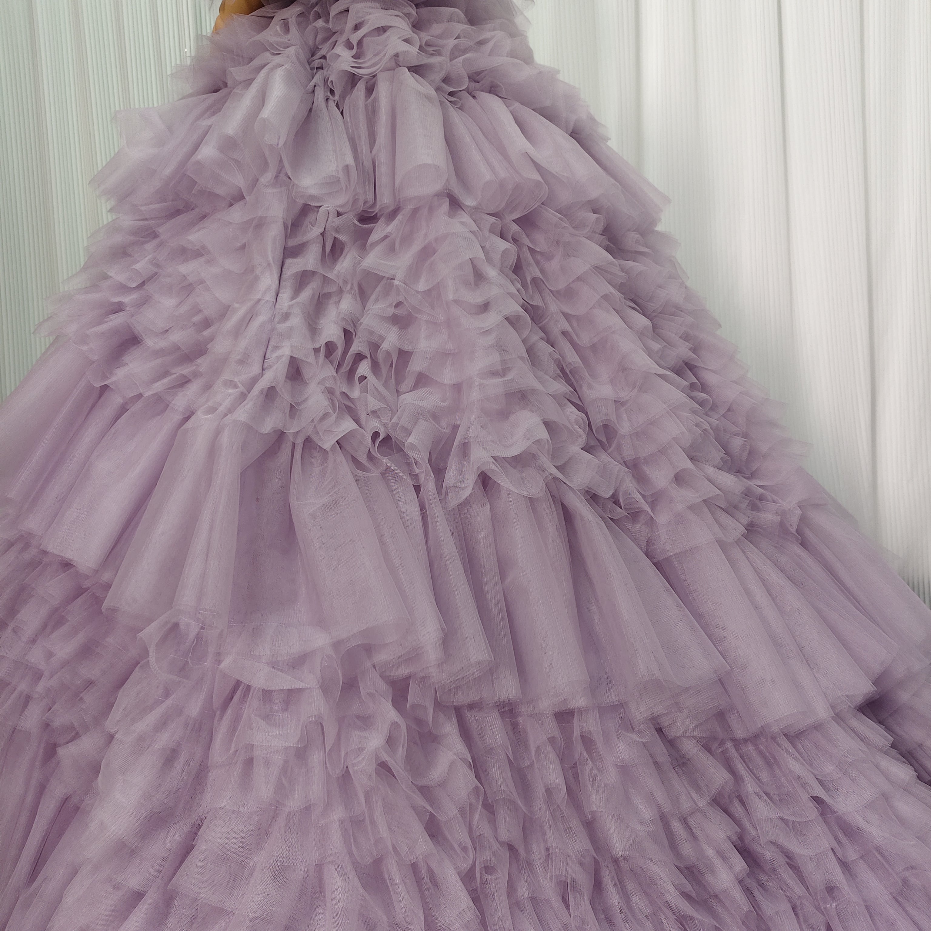 カラードレス オフショルダー パープル 編み上げ ふわふわドレス プリンセスライン 花嫁