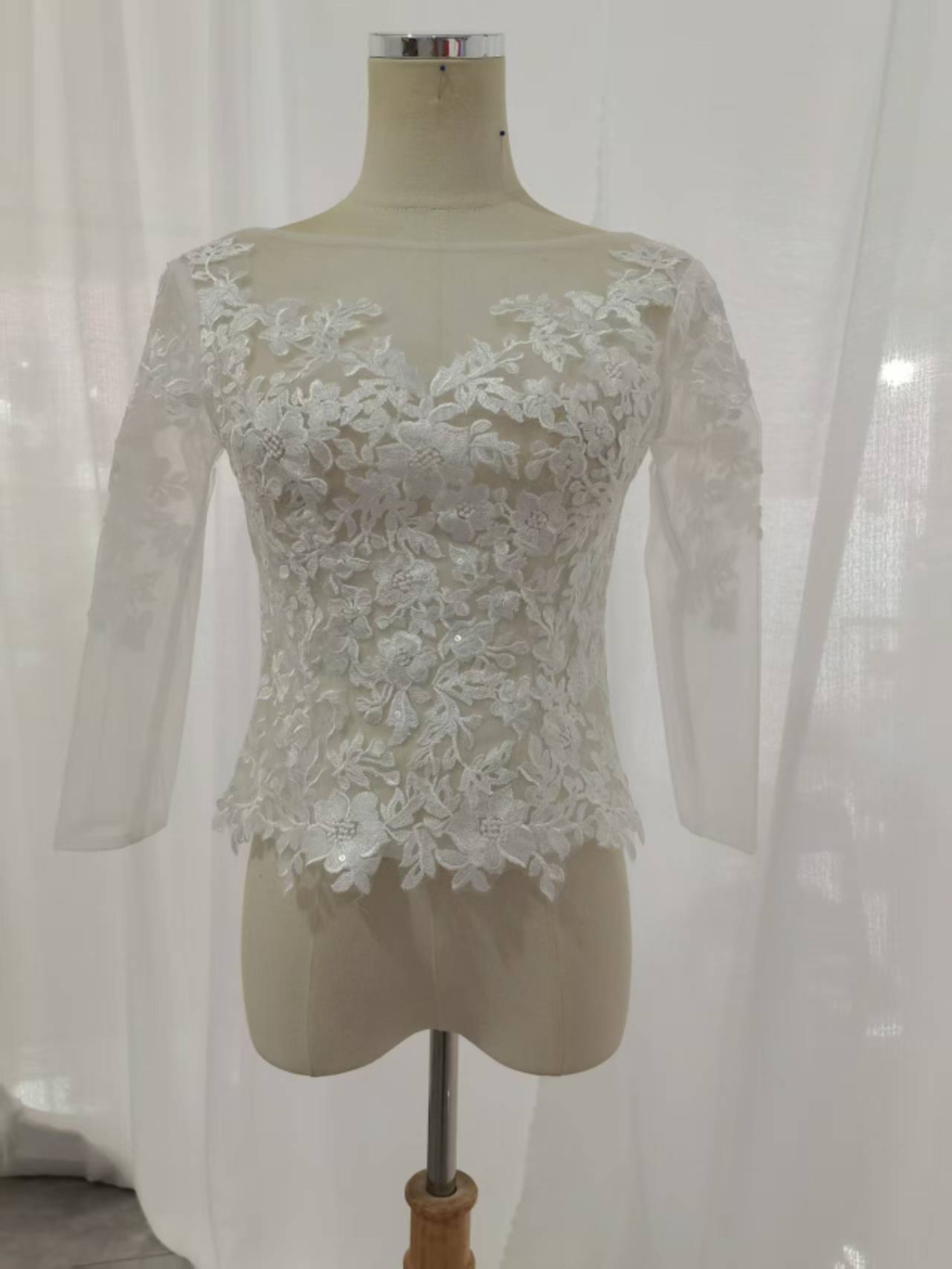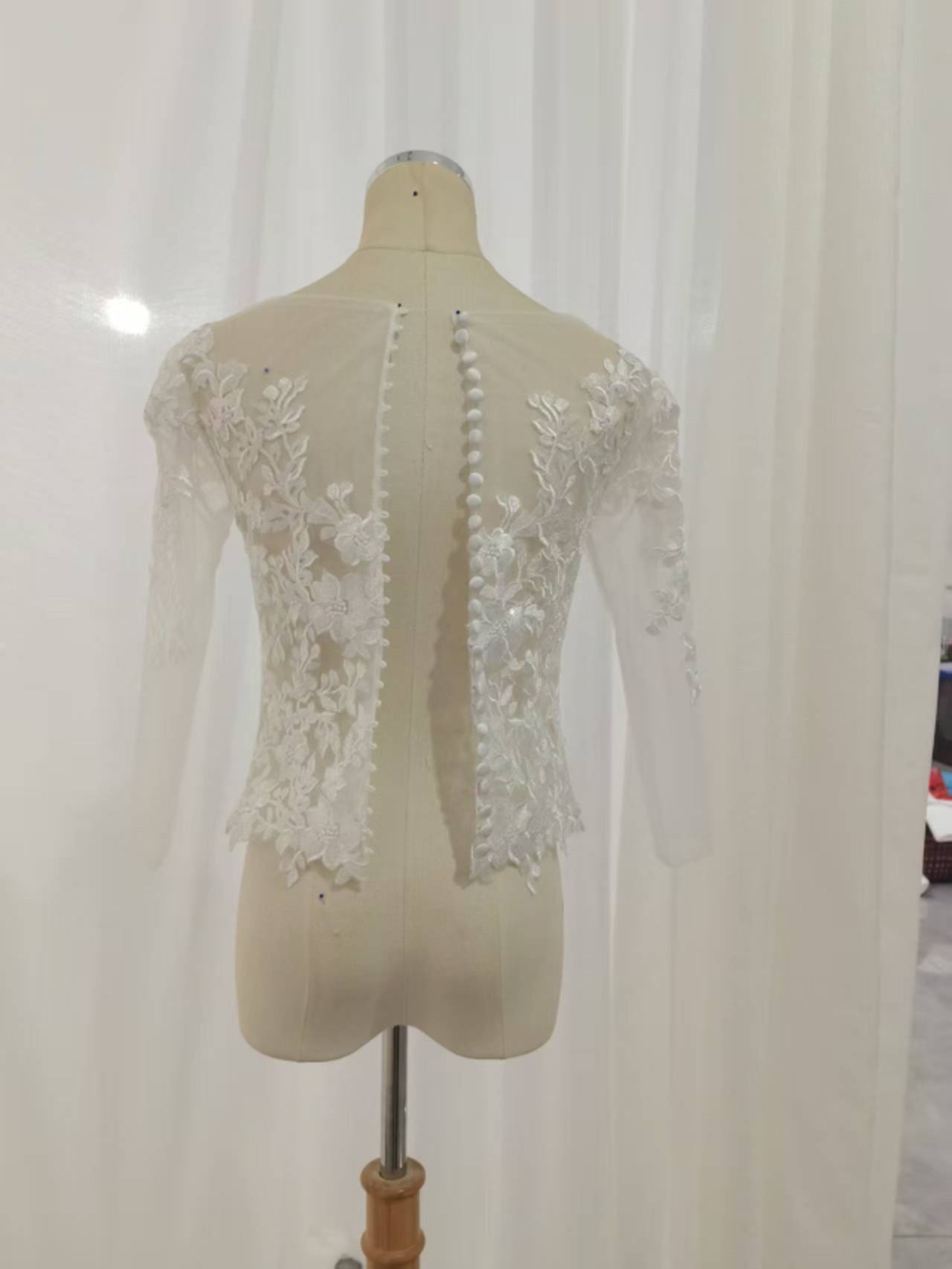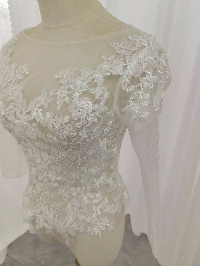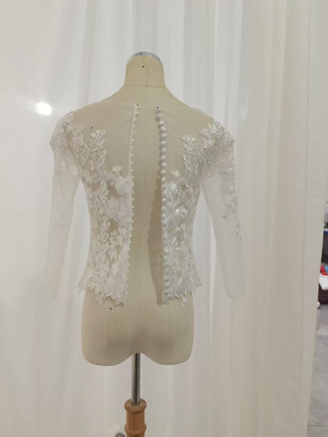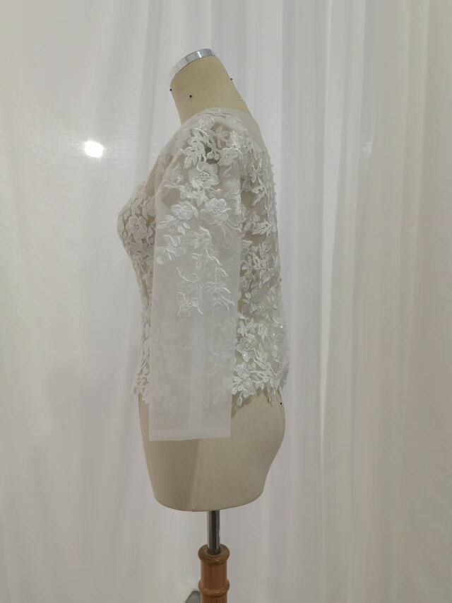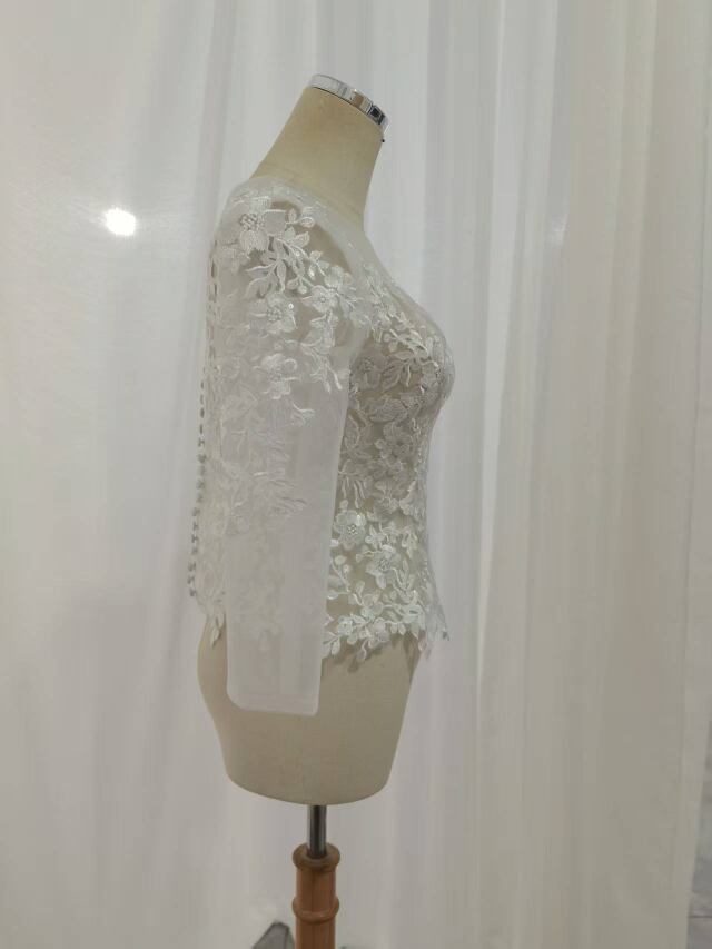 ボレロ 七分袖丈 上品な花レース くるみボタン ラウンドネック ブライダル 花嫁/ウェディングドレス