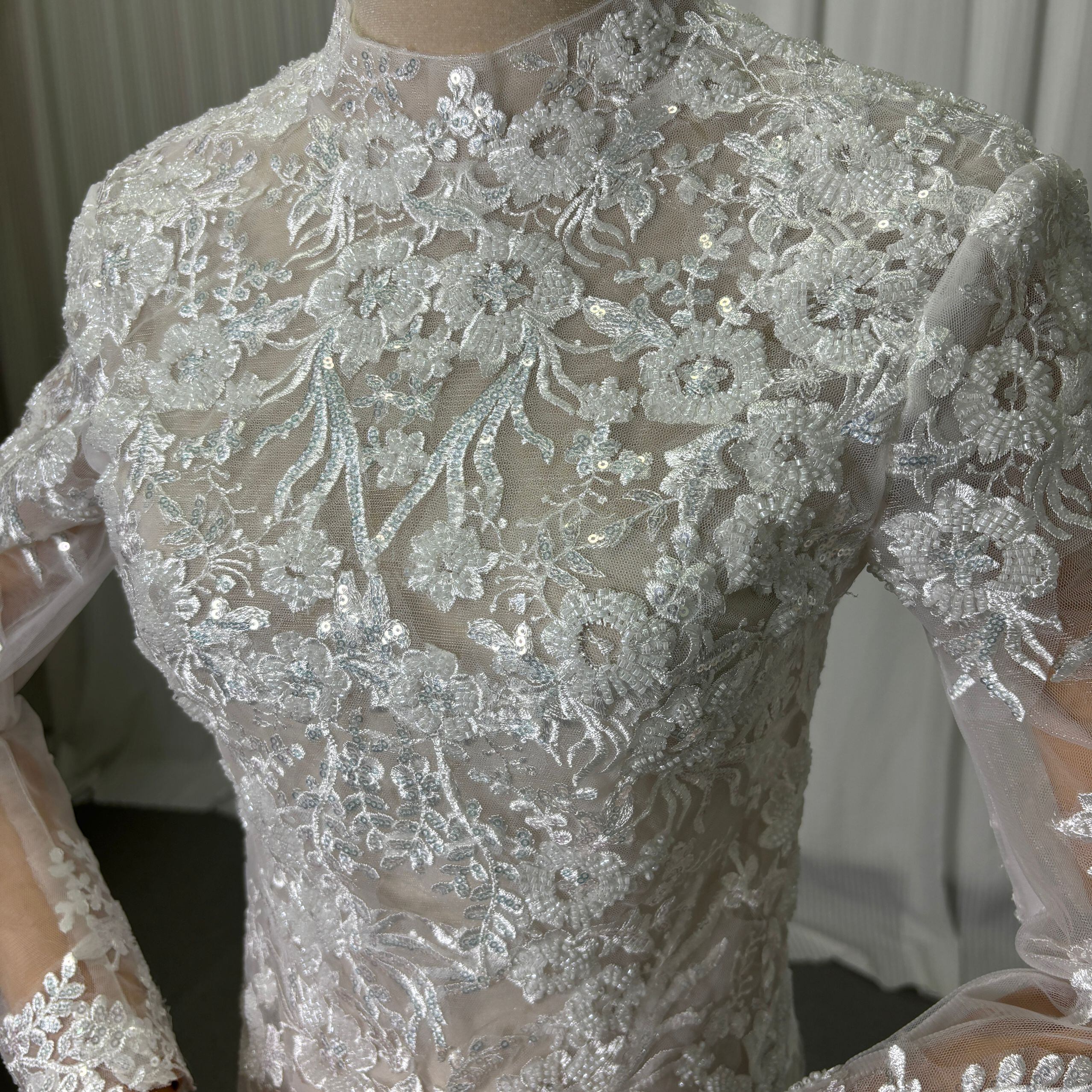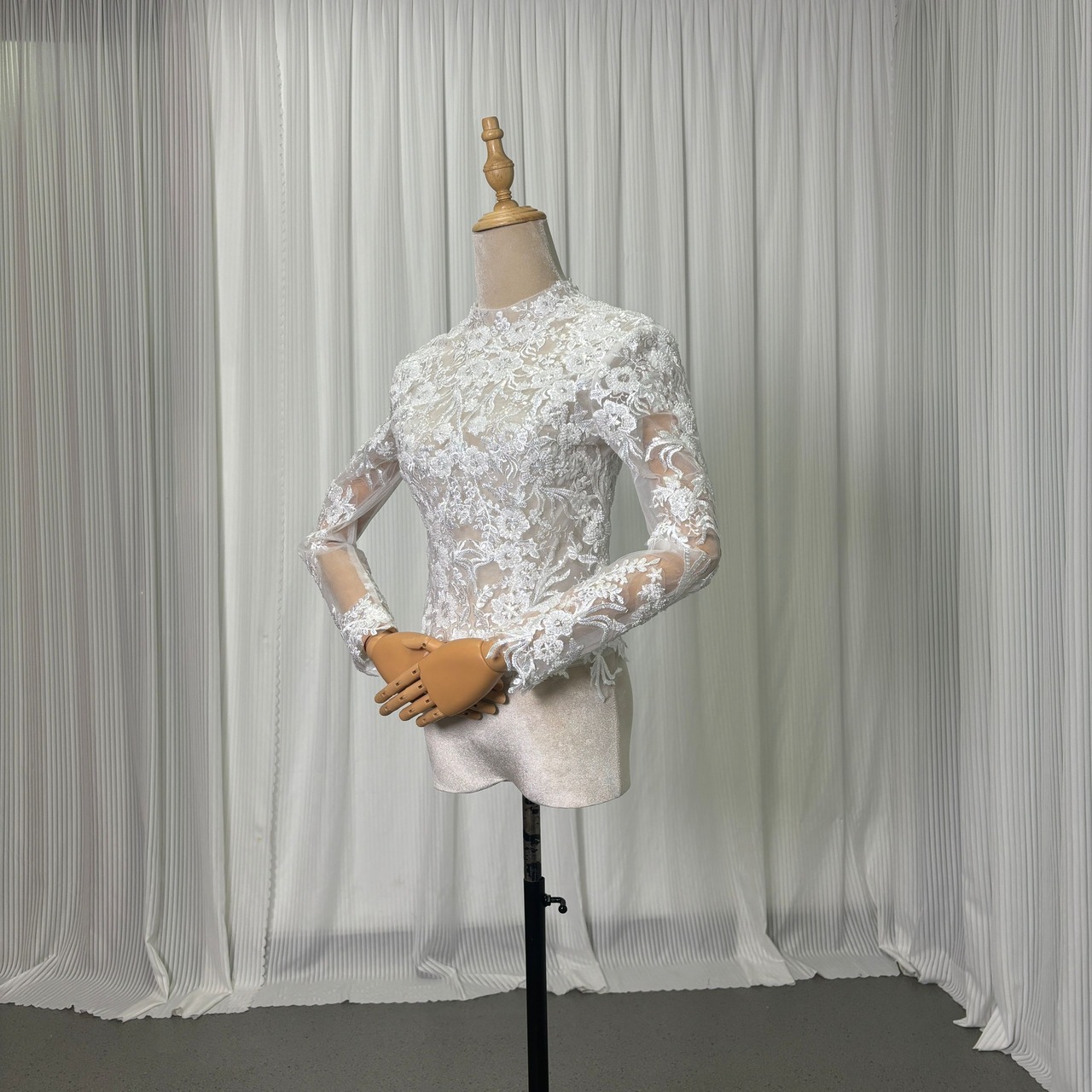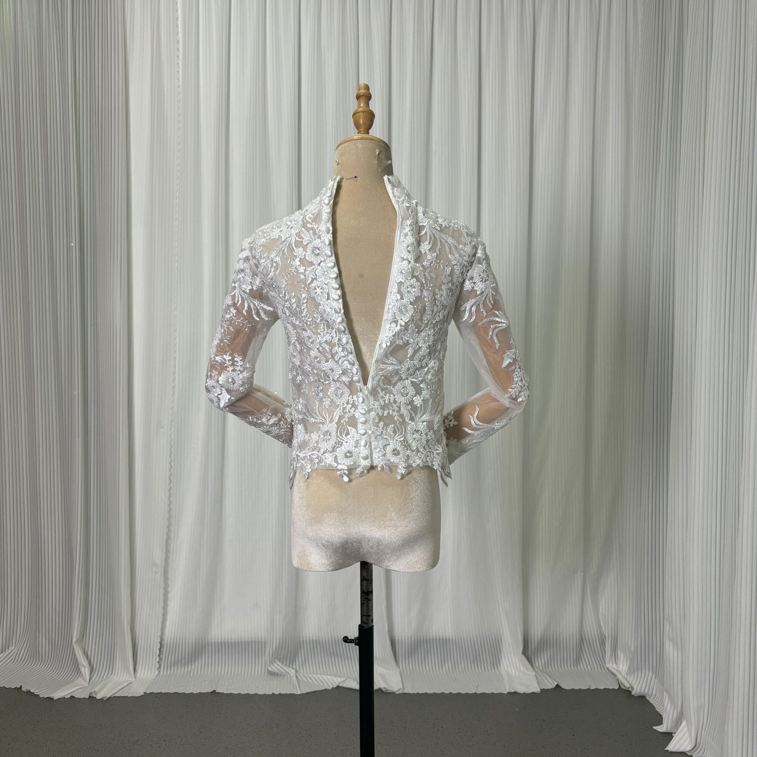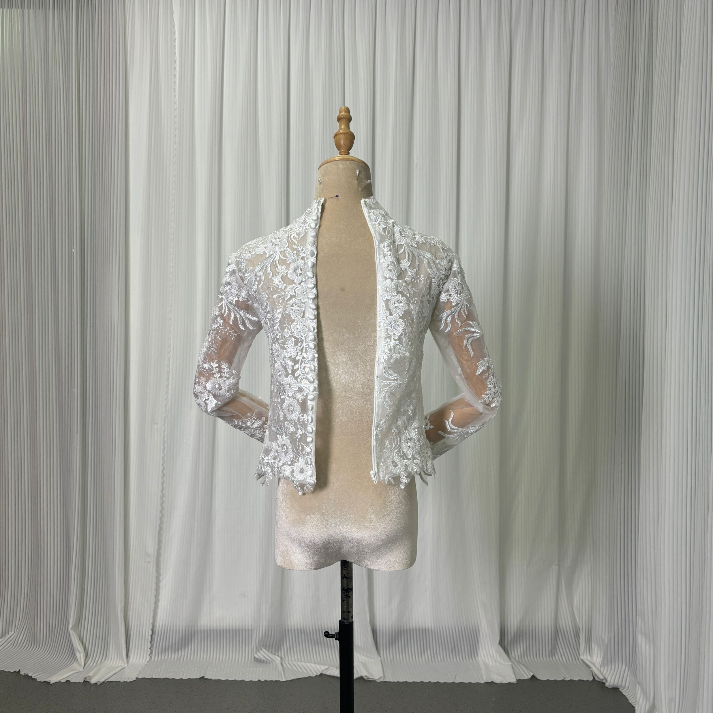 ボレロ ロングスリーブ ハイネック くるみボタン 3D立体レース刺繍 オフホワイト 結婚式