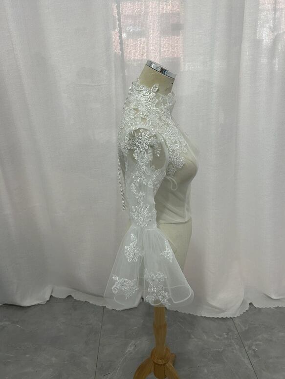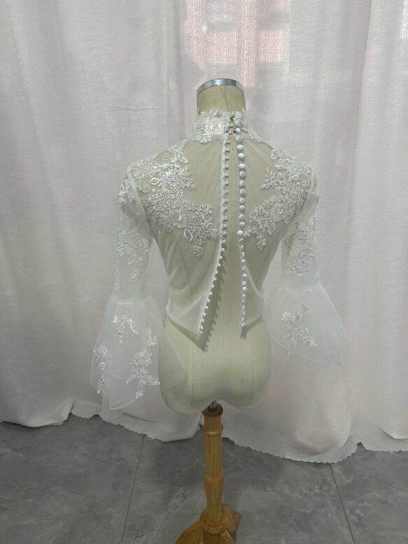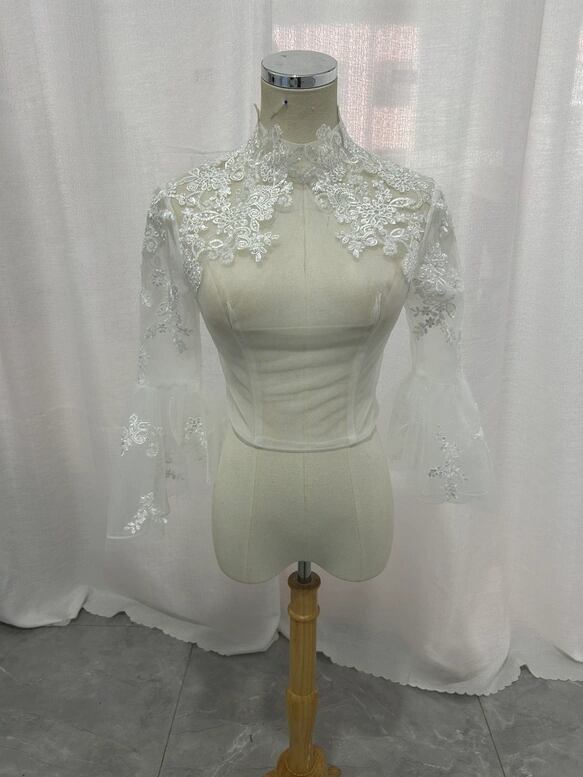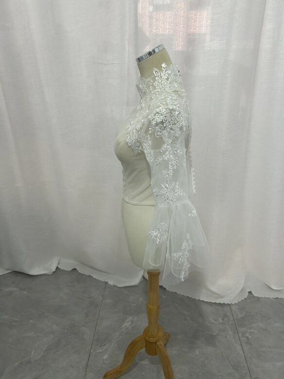 ボレロ ふんわり袖 ハイネック キラキラ光る刺繍 くるみボタン 可愛い 花嫁