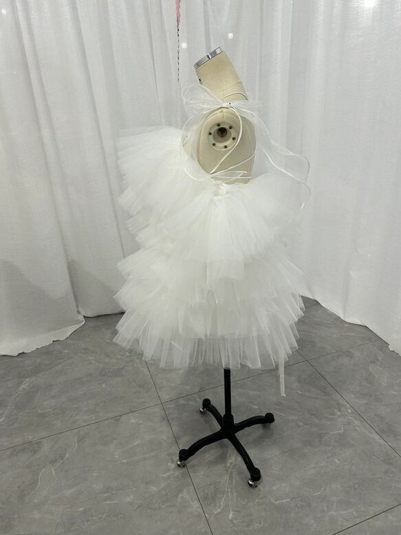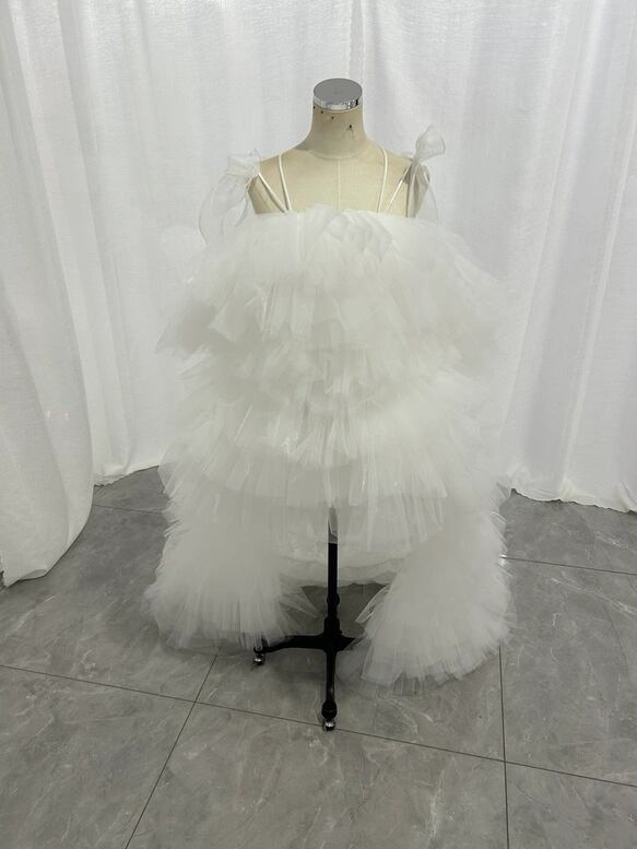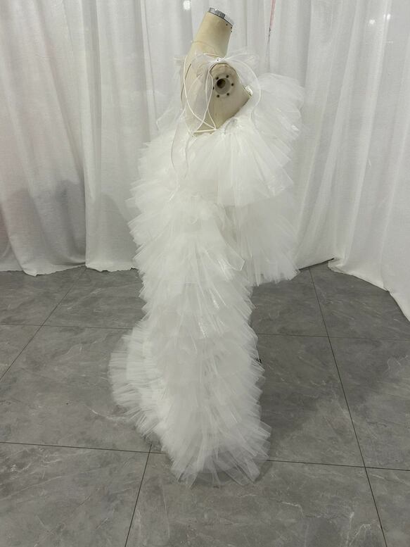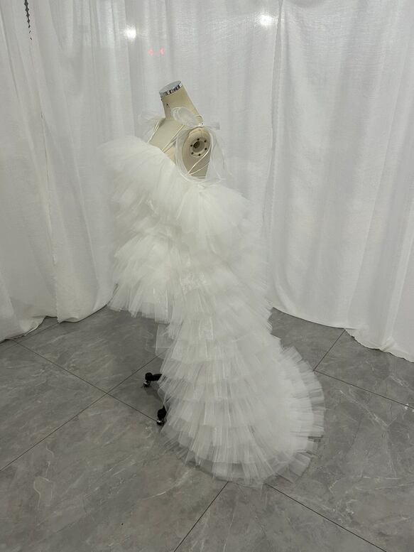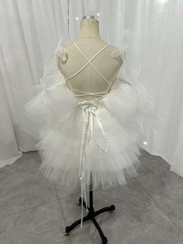 パーティードレス キャミソール ミニワンピース 取り外しトレーン 編み上げ ボリュームドレス 前撮り