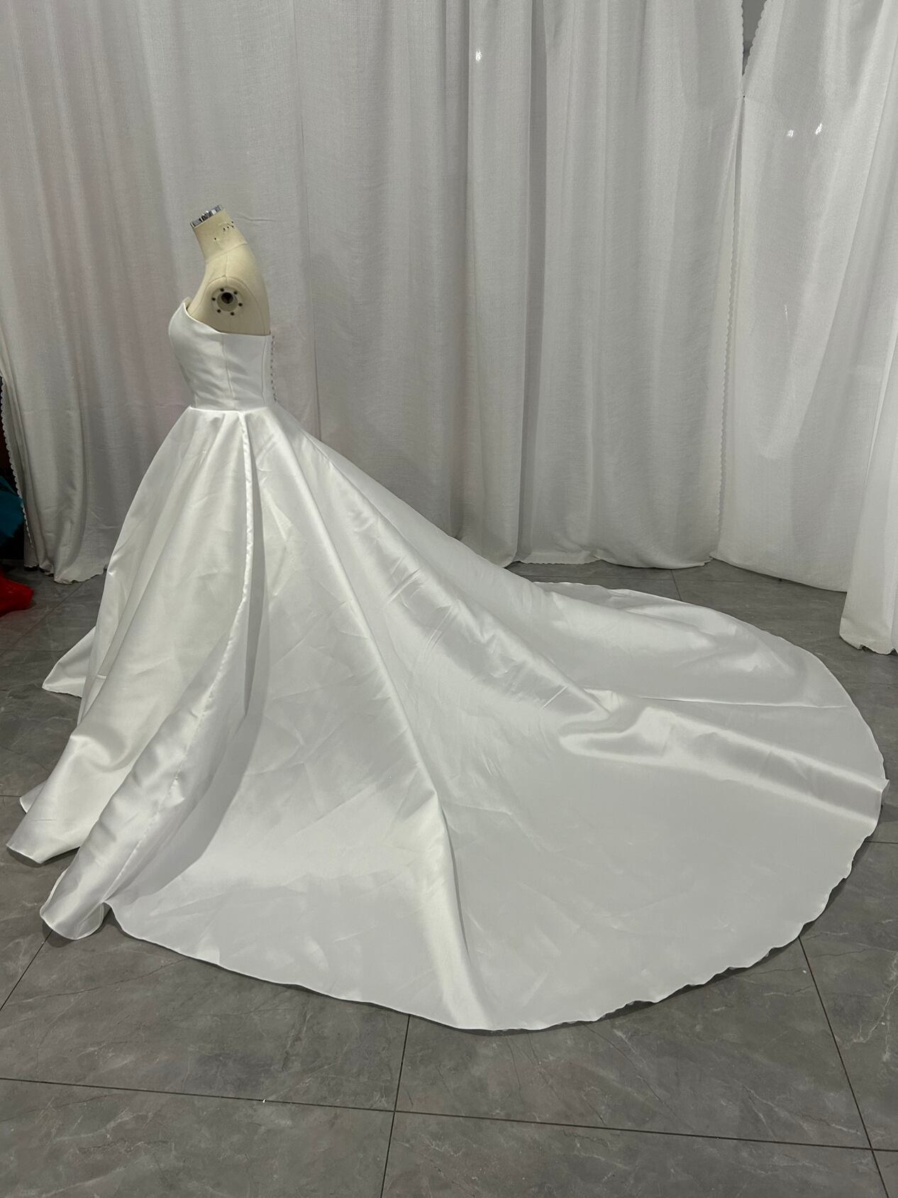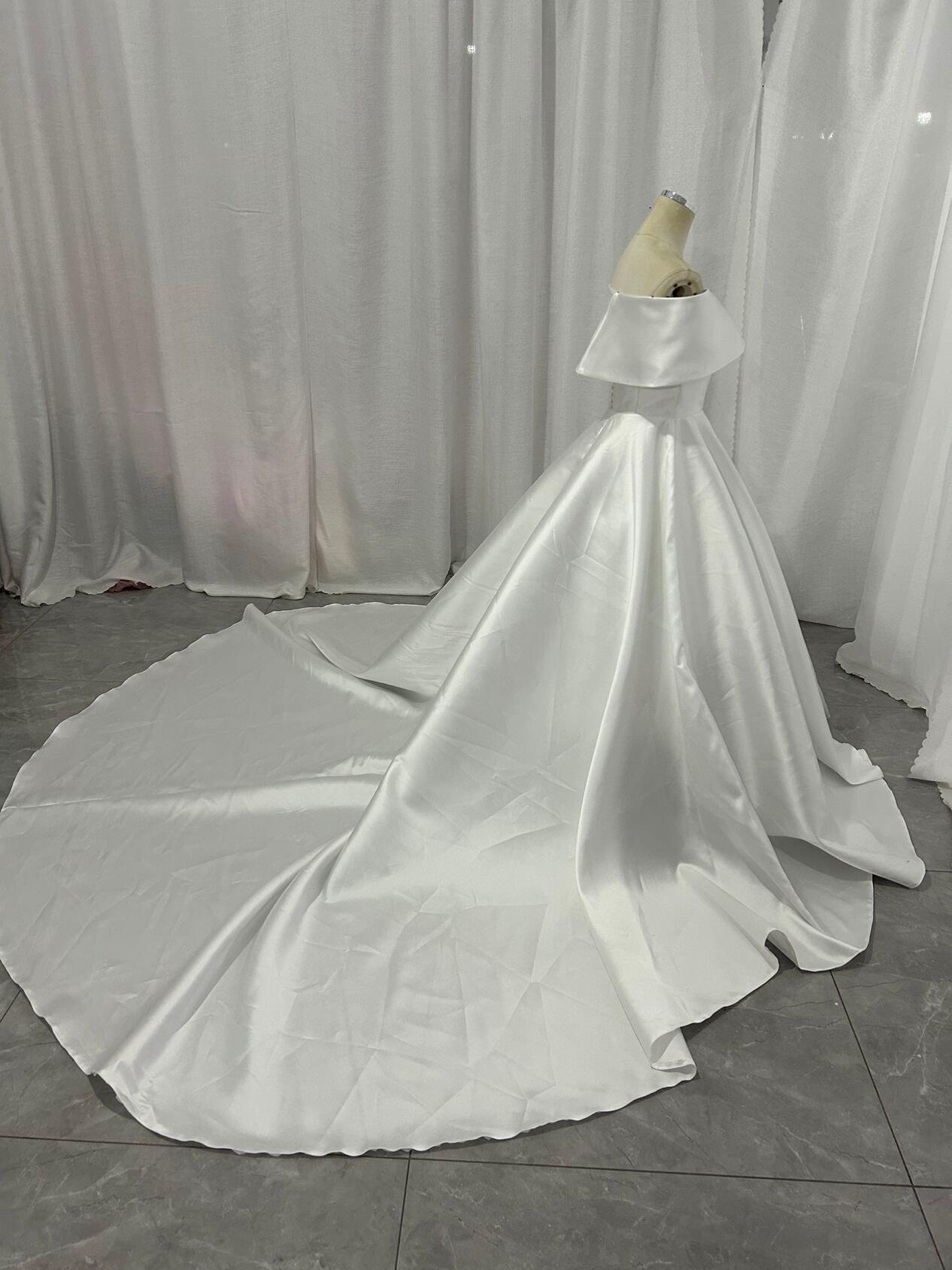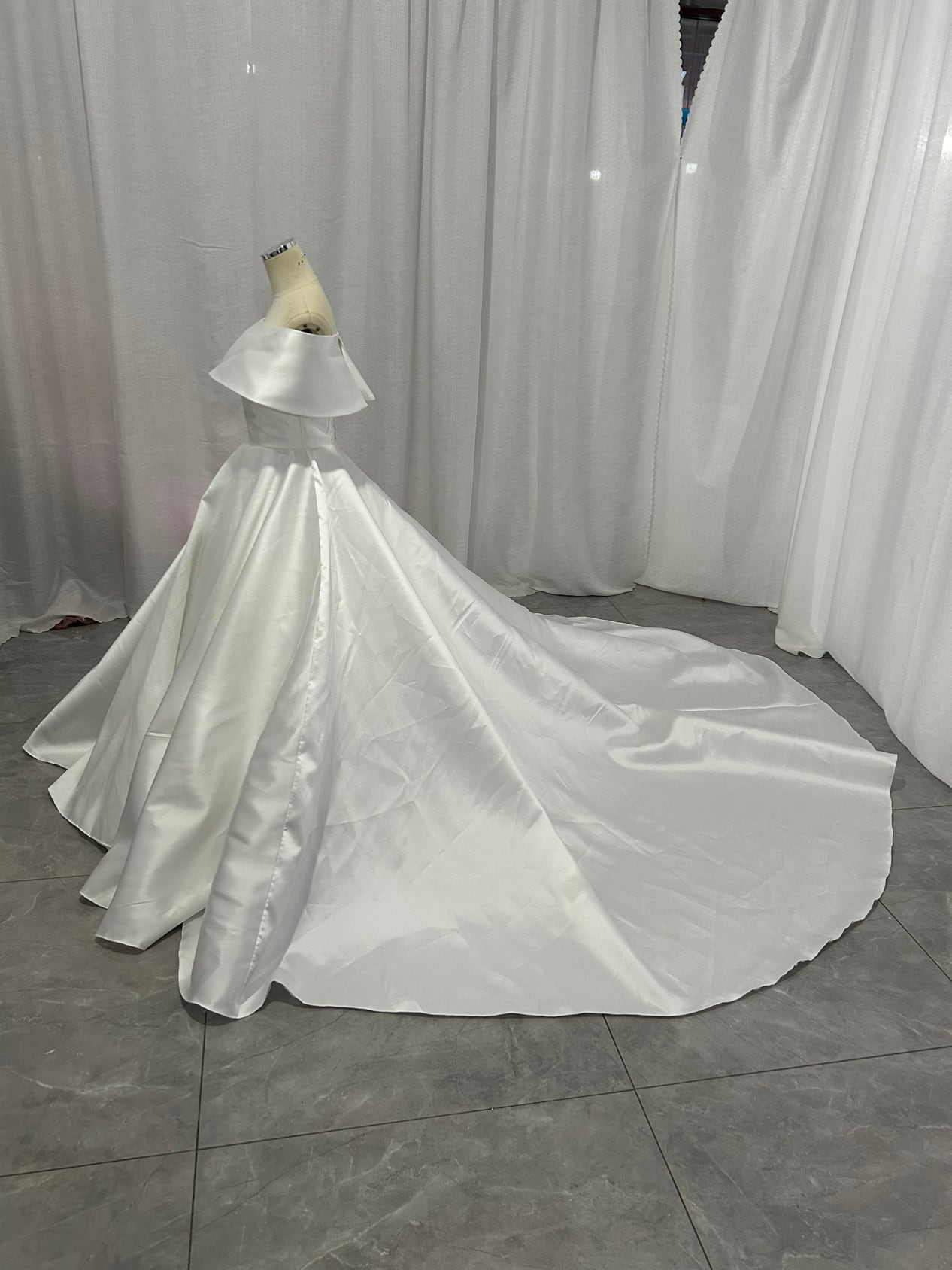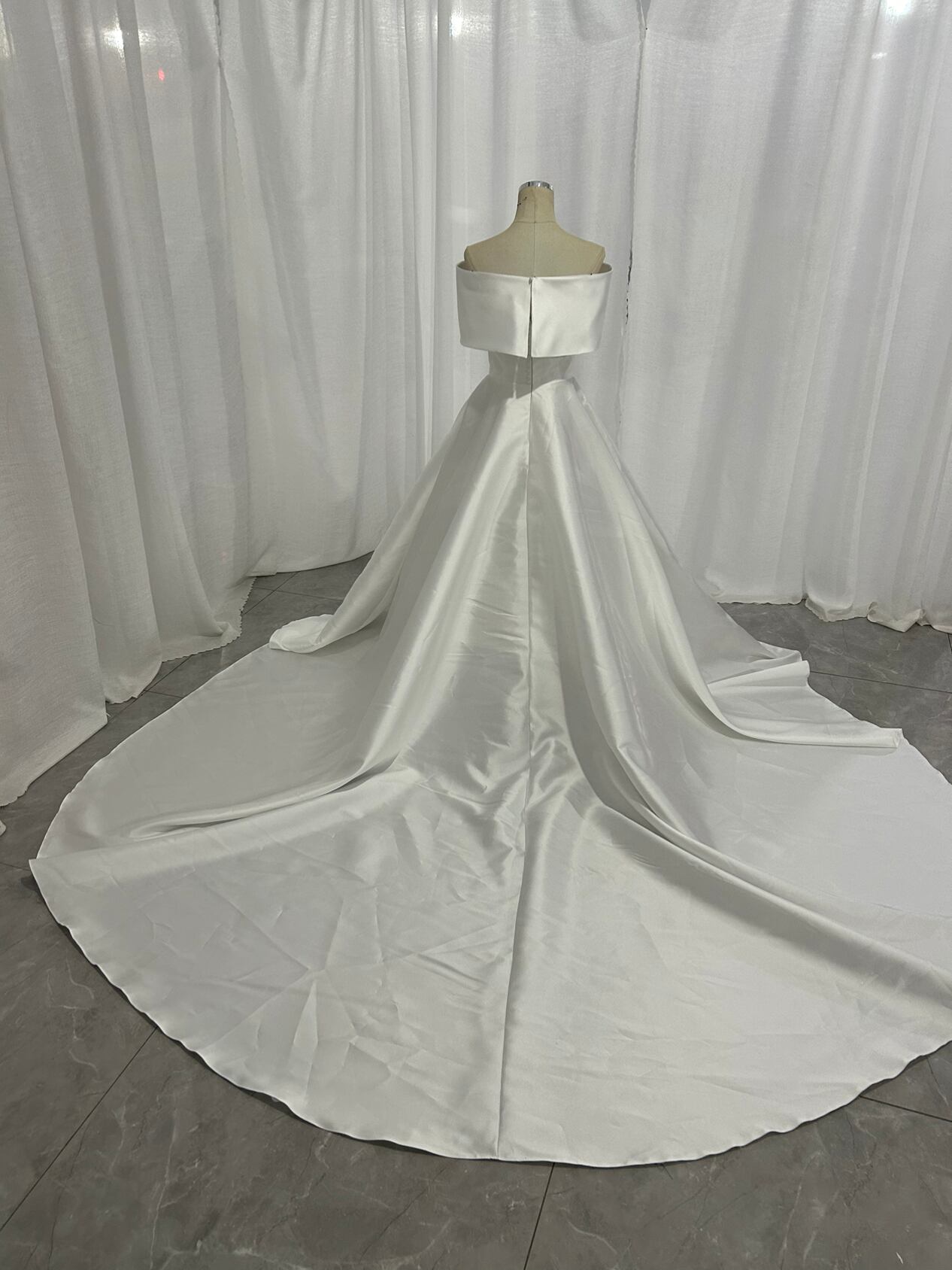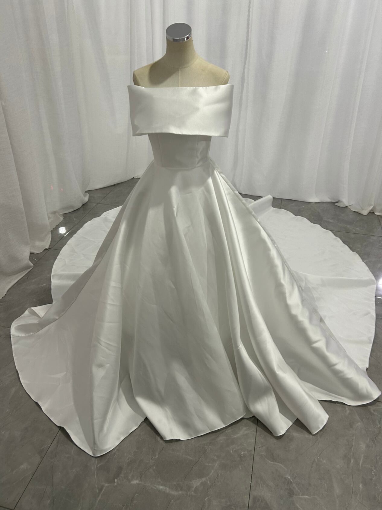 ウェディングドレス オフショルダー ミカドサテン くるみボタン 華やか フランス風 披露宴/結婚式 エレガント