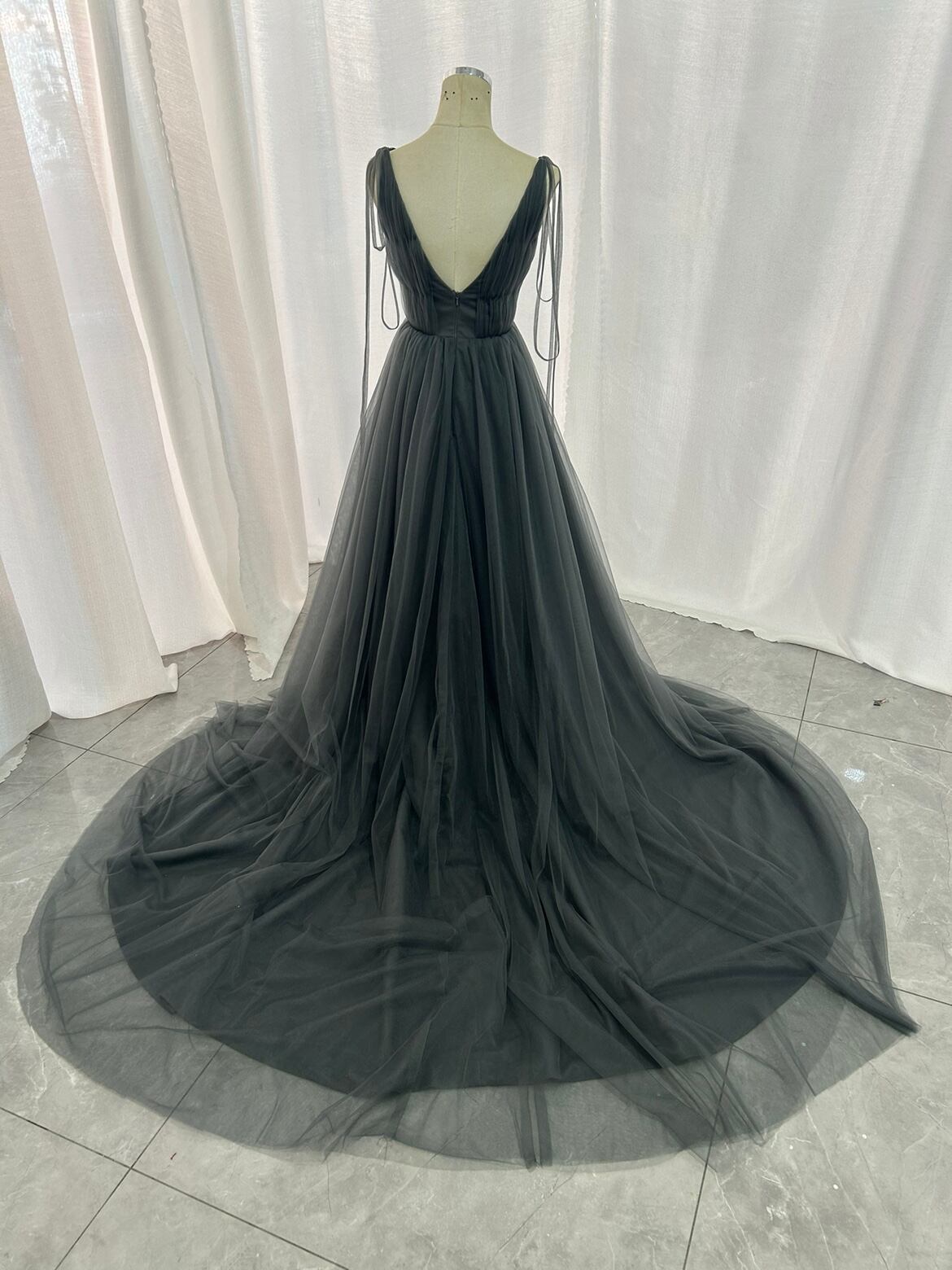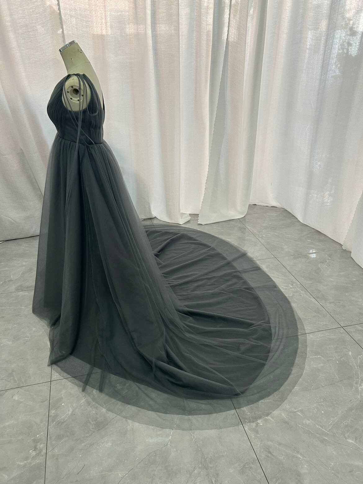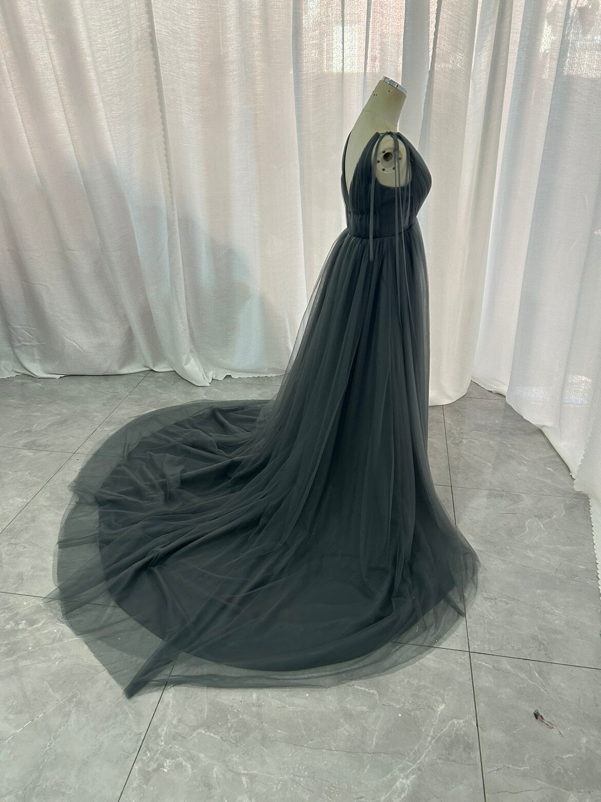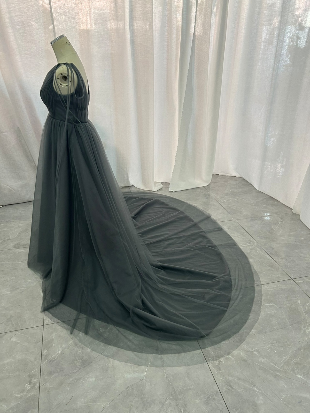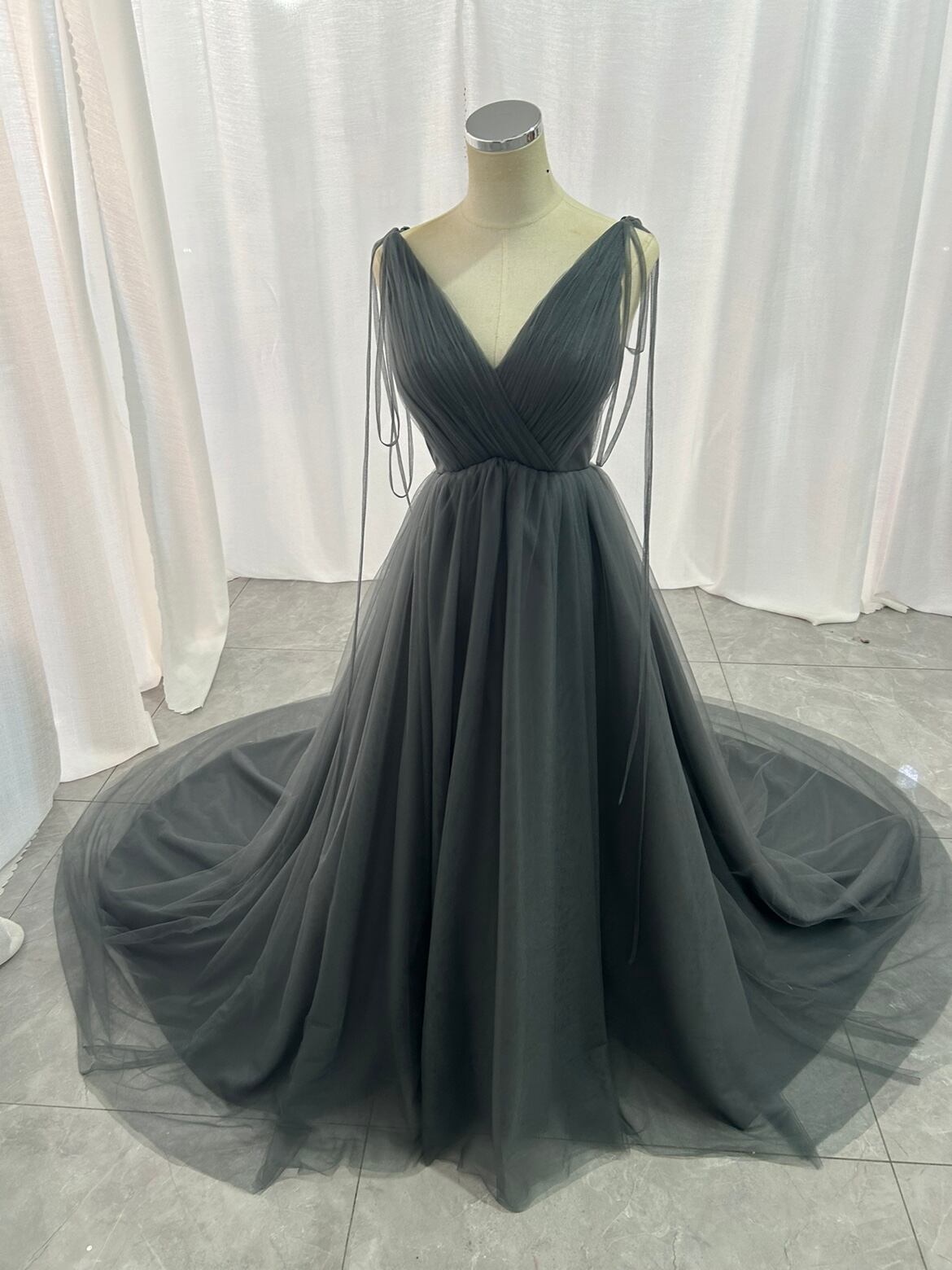 パーティードレス キャミソール Vネック ソフトチュール グレー スレンダーライン 前撮り