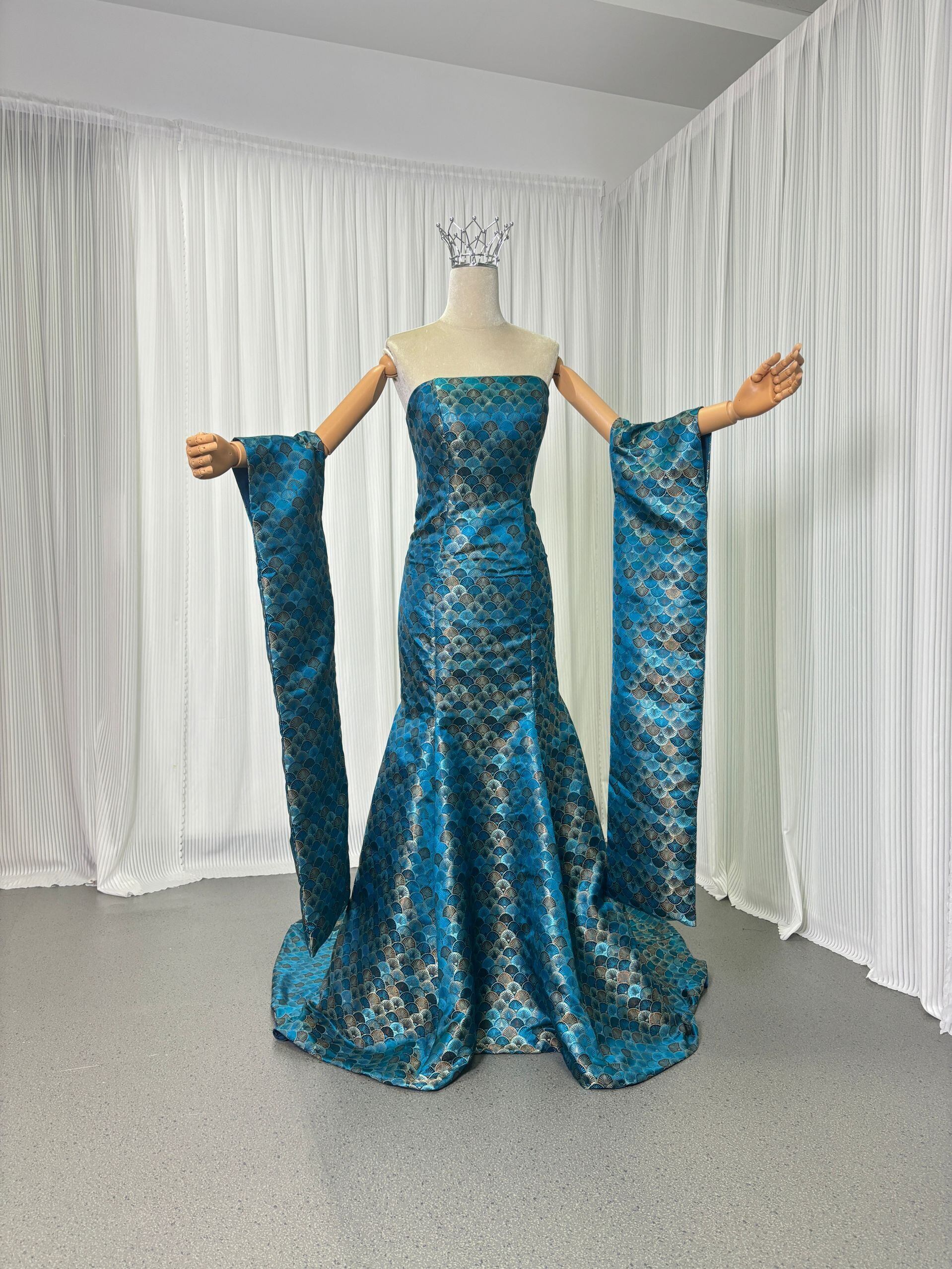 孔雀緑、振り袖、着物ドレス、和風ドレス マーメイドライン エレガント アンティークなドレス 結婚式