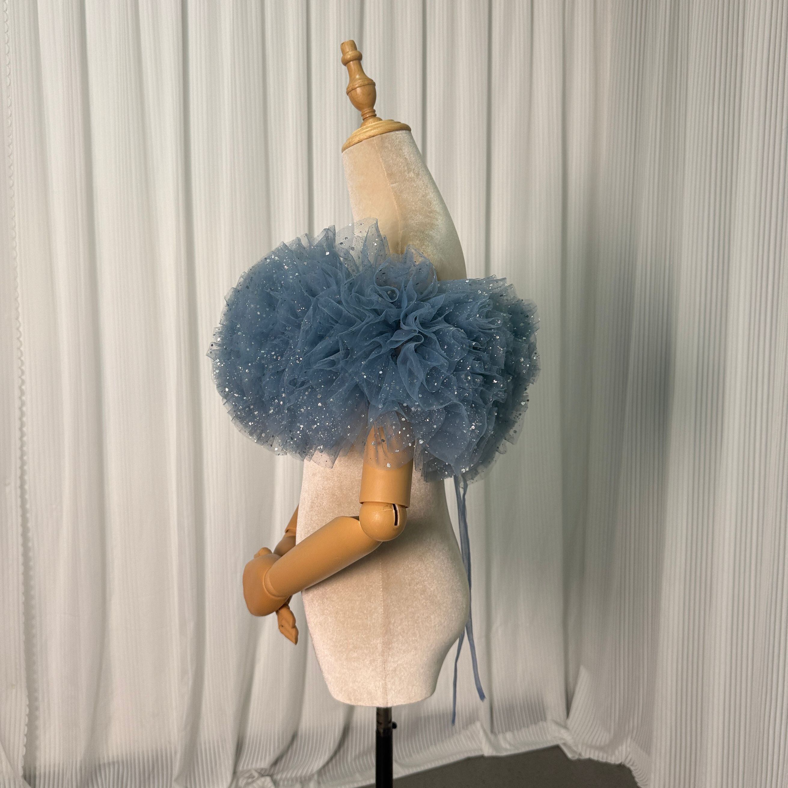 水色 取り外しオフショルダー エレガント 肩出し キラキラチュール 色直し ビスチェ 花嫁/ウェディングドレス