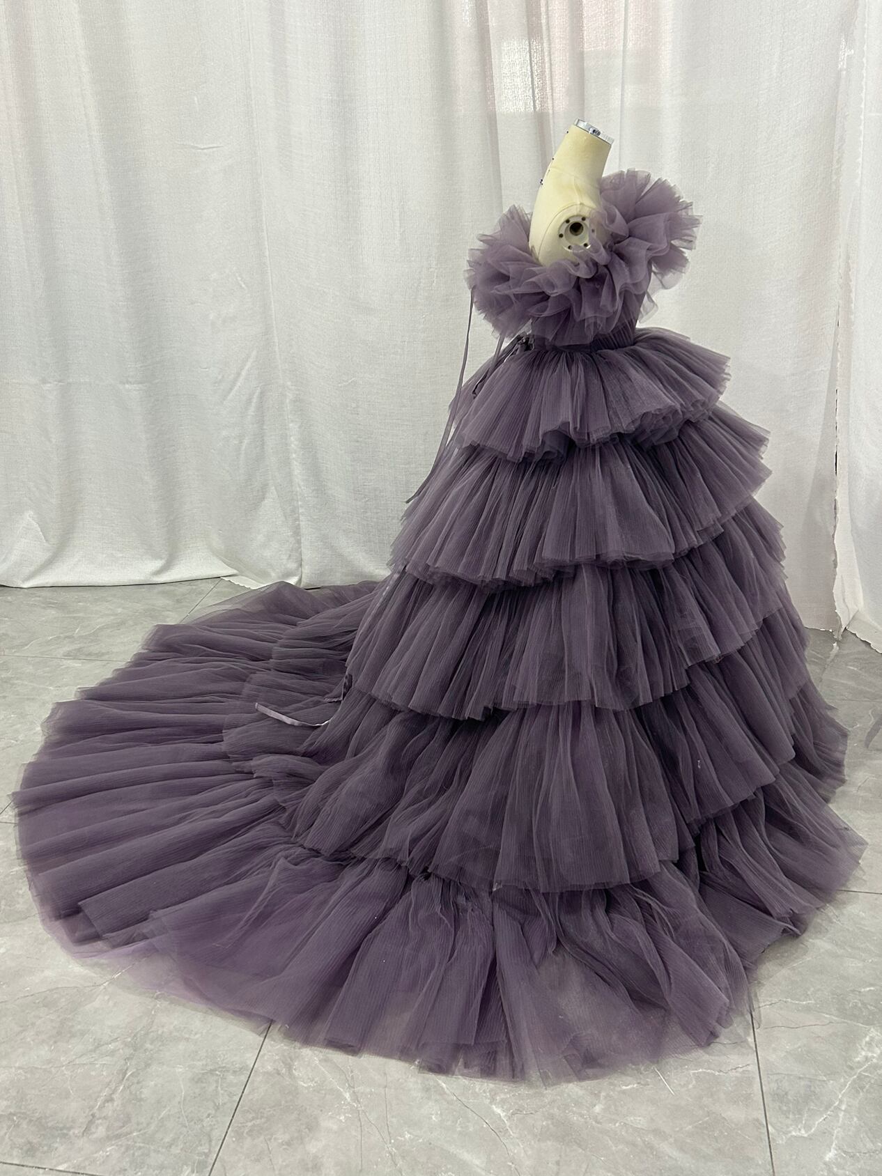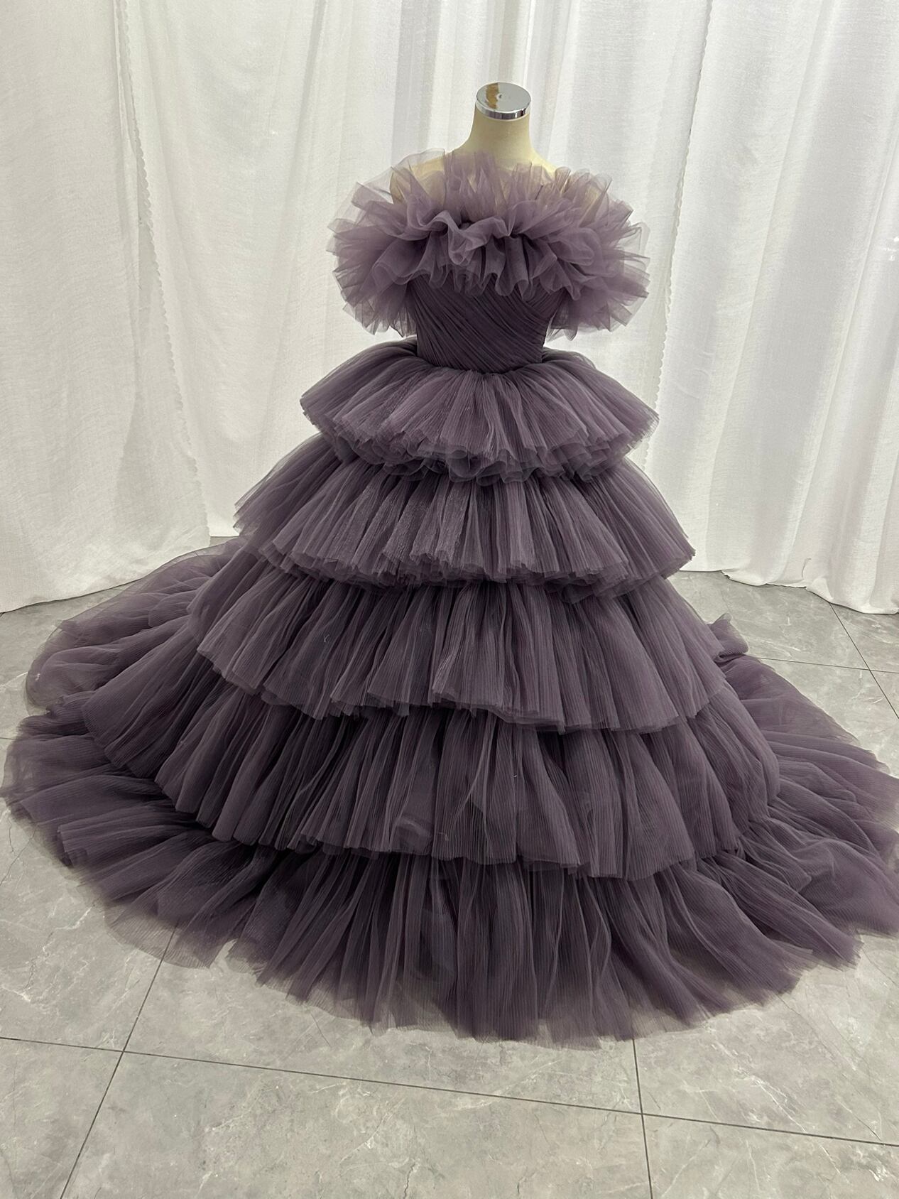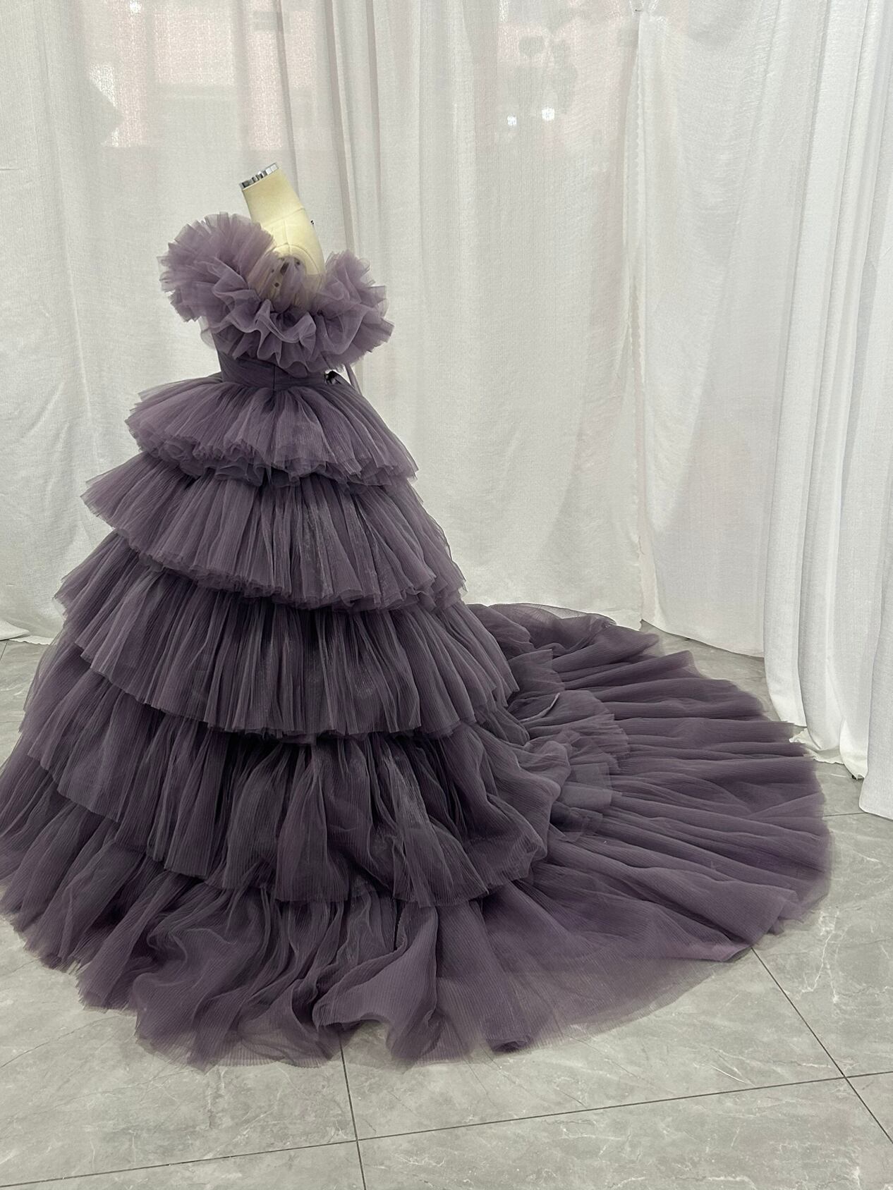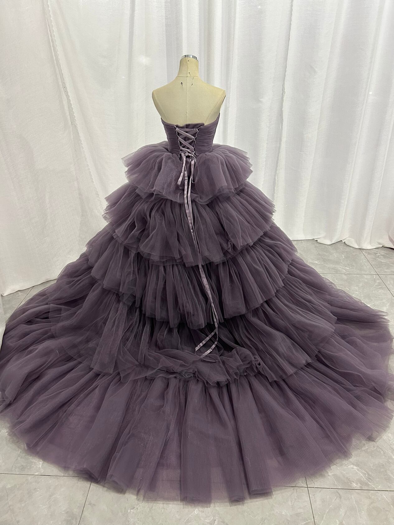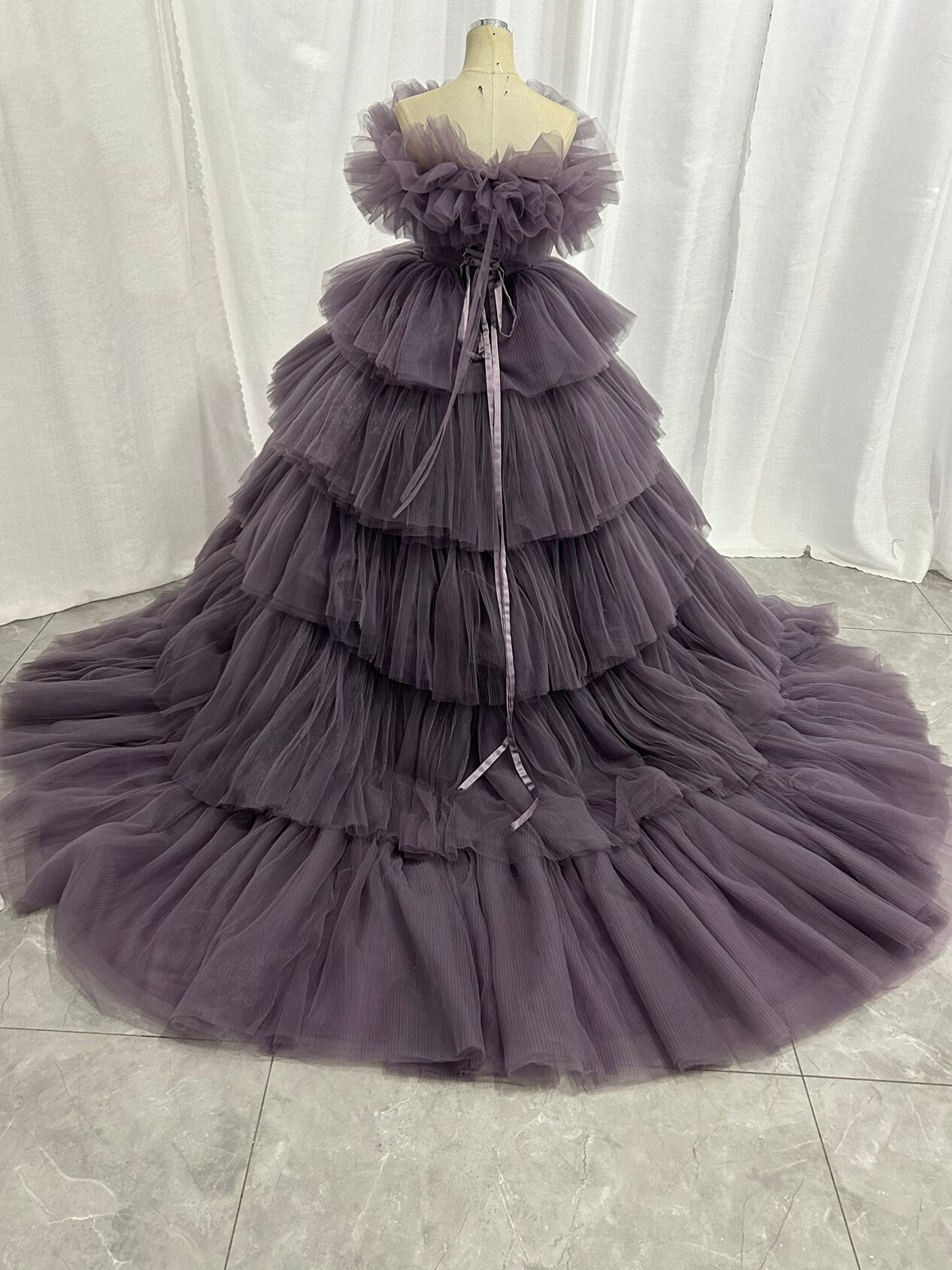 豪華! カラードレス パープル オフショル プリーツスカート ふわふわドレス 韓国風ドレス 派手な