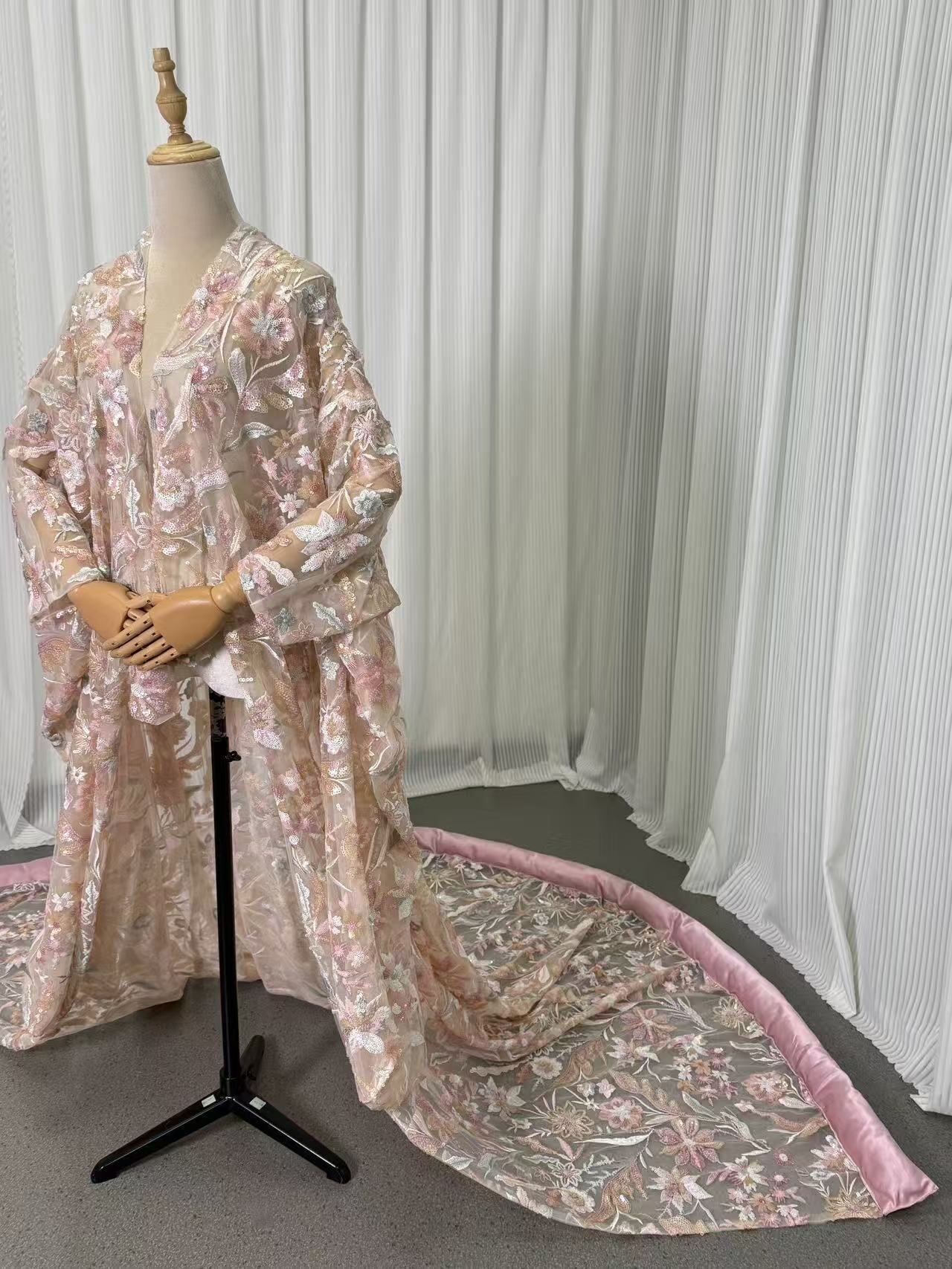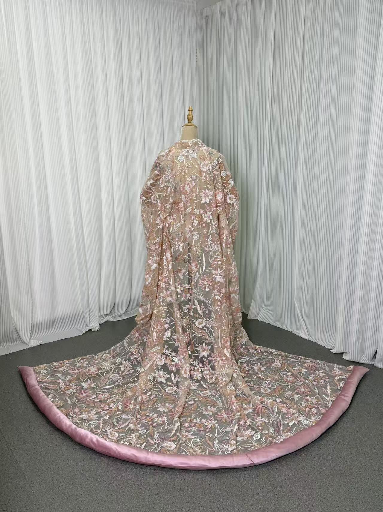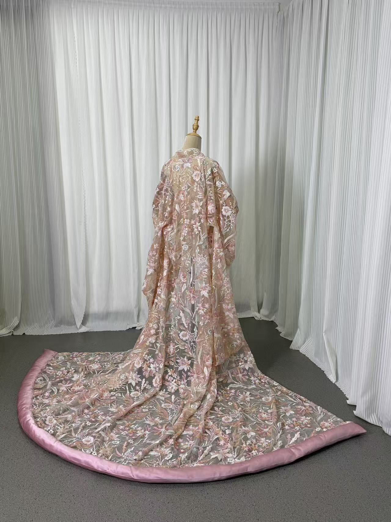 透明感抜群のレース打掛 ピンク 3D立体レース刺繍 オーバードレス お色直し 精緻な刺繍 着物
