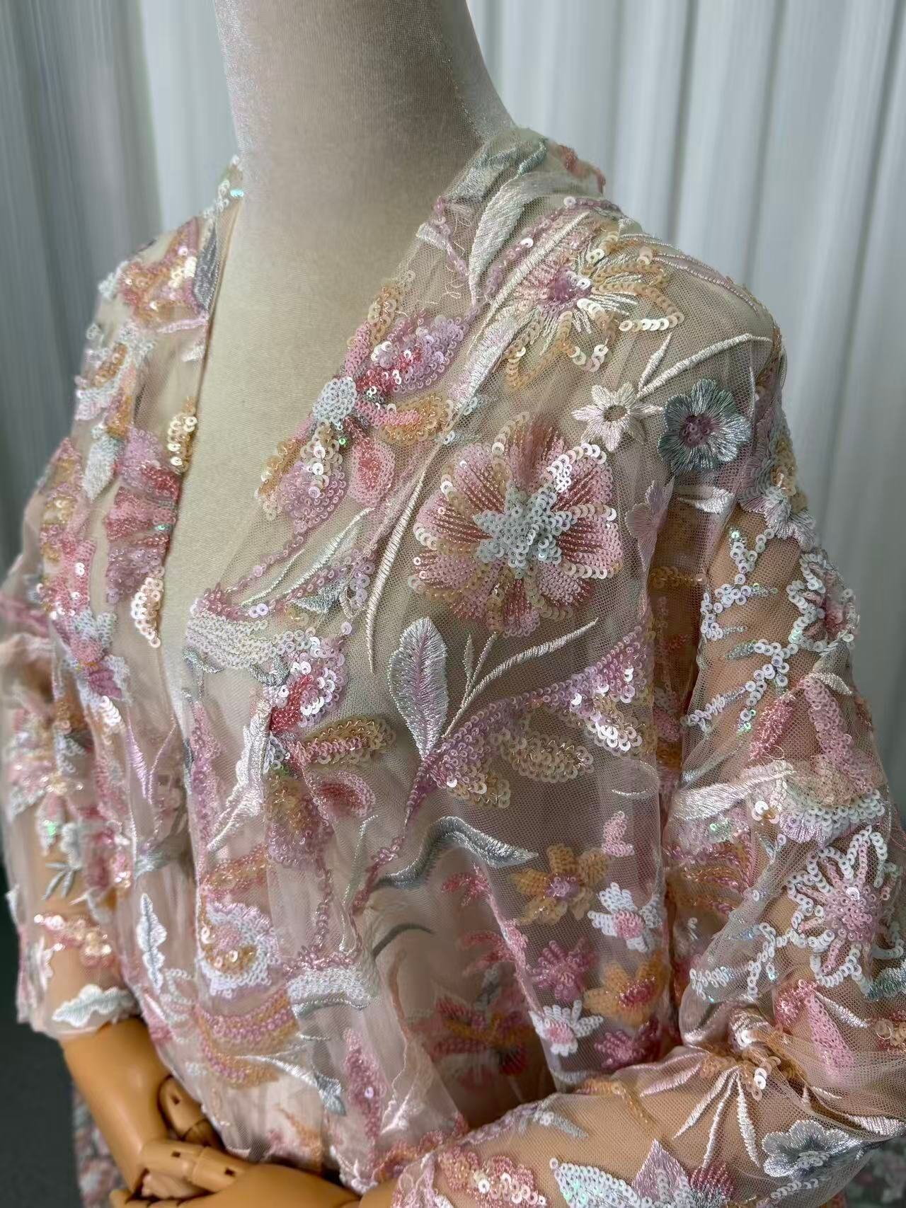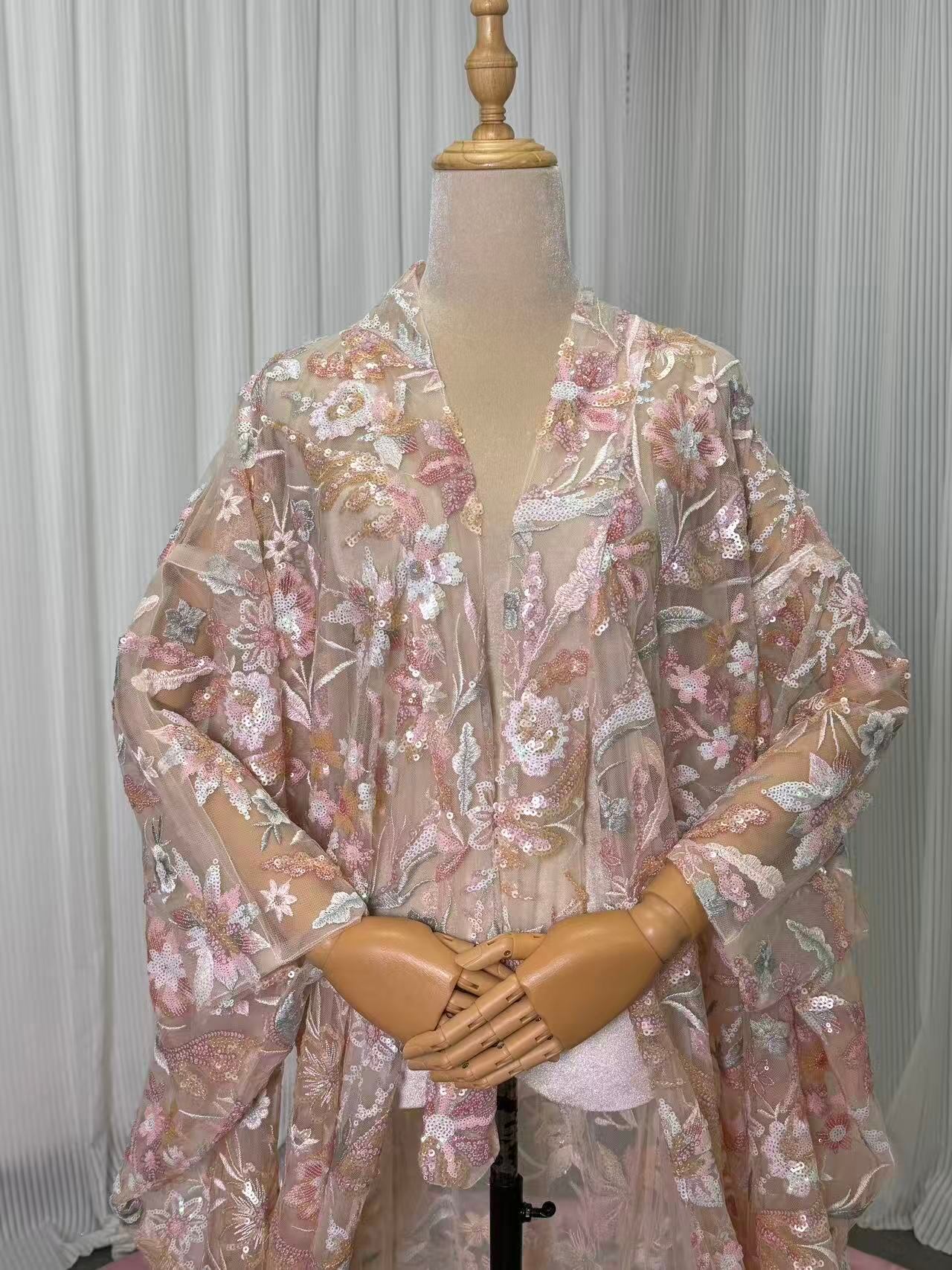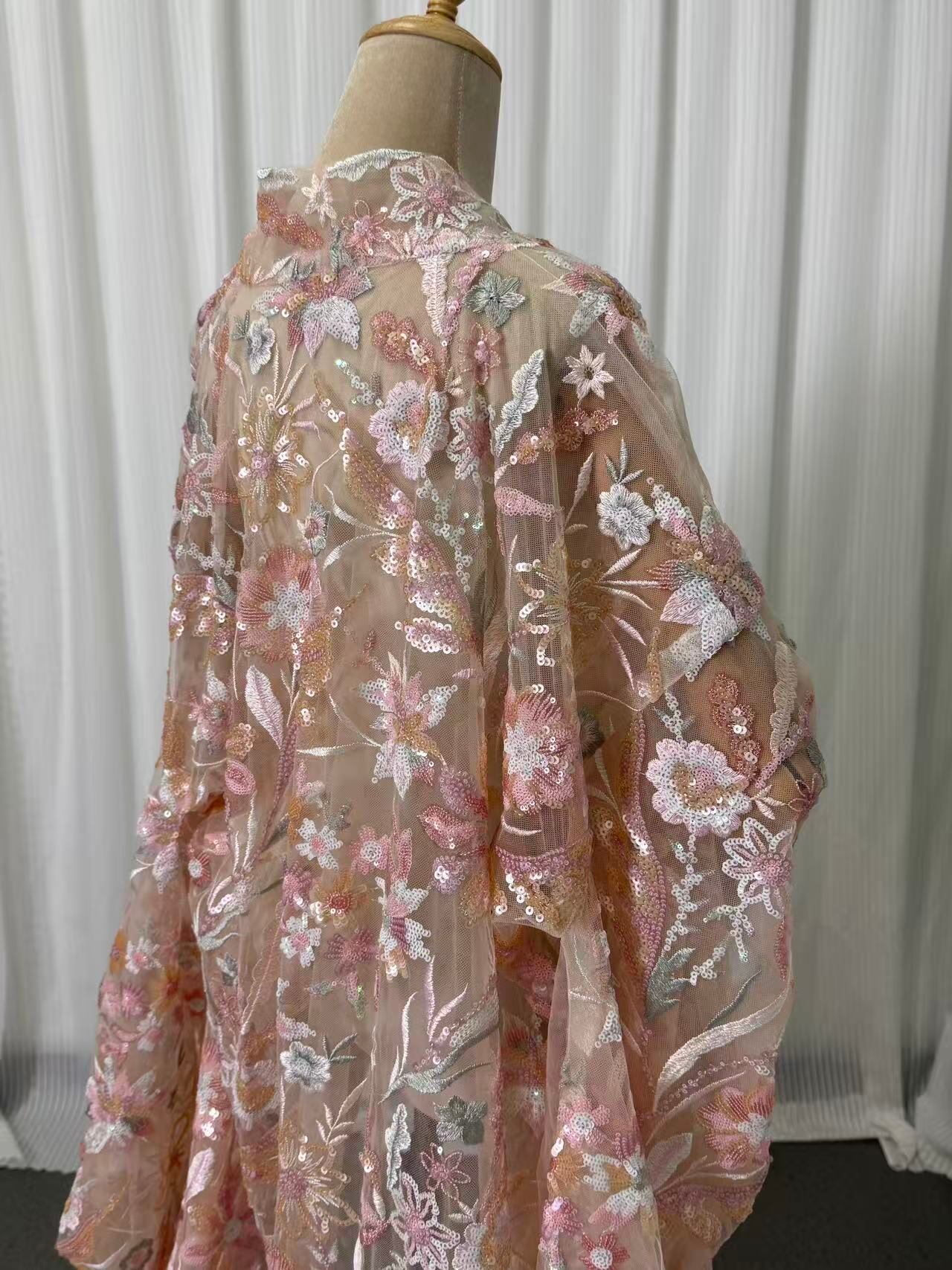 透明感抜群のレース打掛 ピンク 3D立体レース刺繍 オーバードレス お色直し 精緻な刺繍 着物