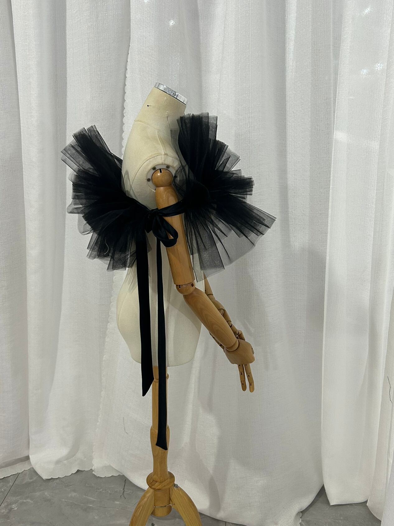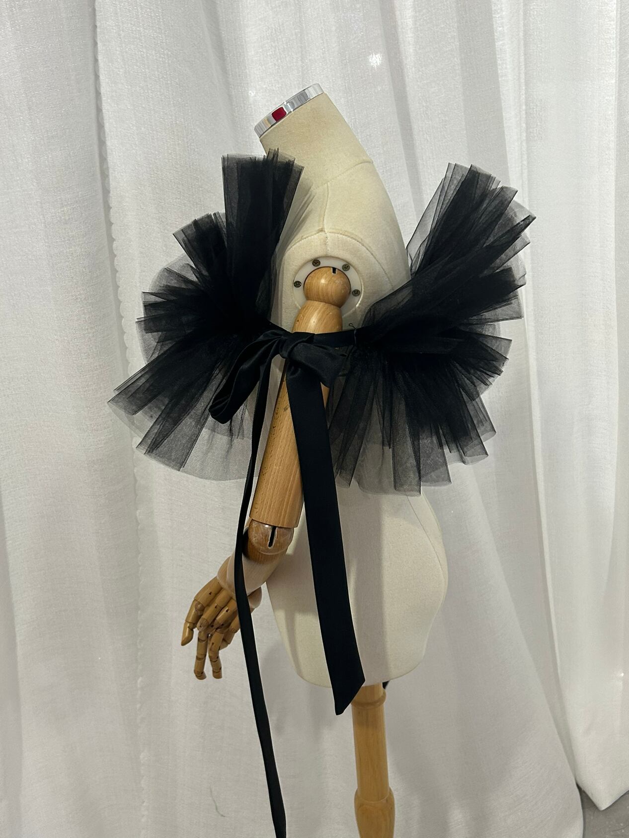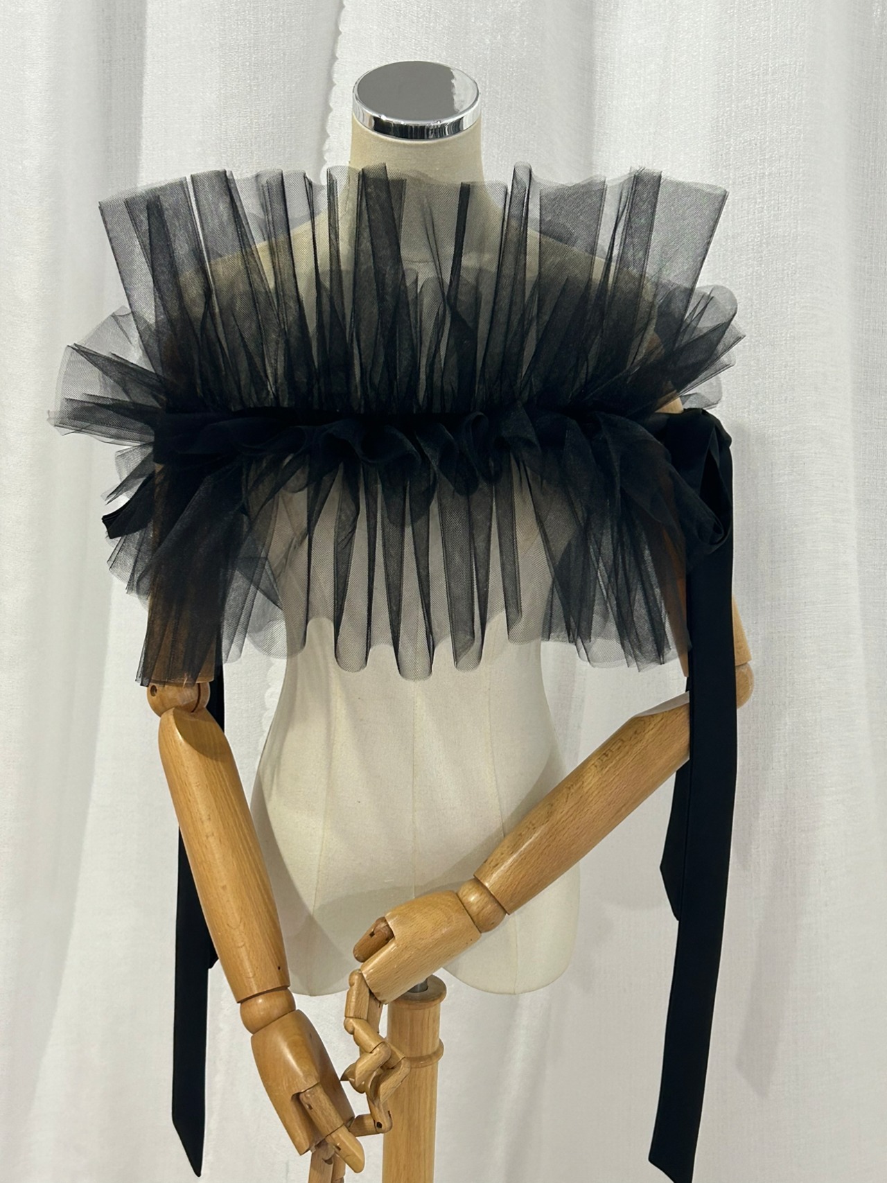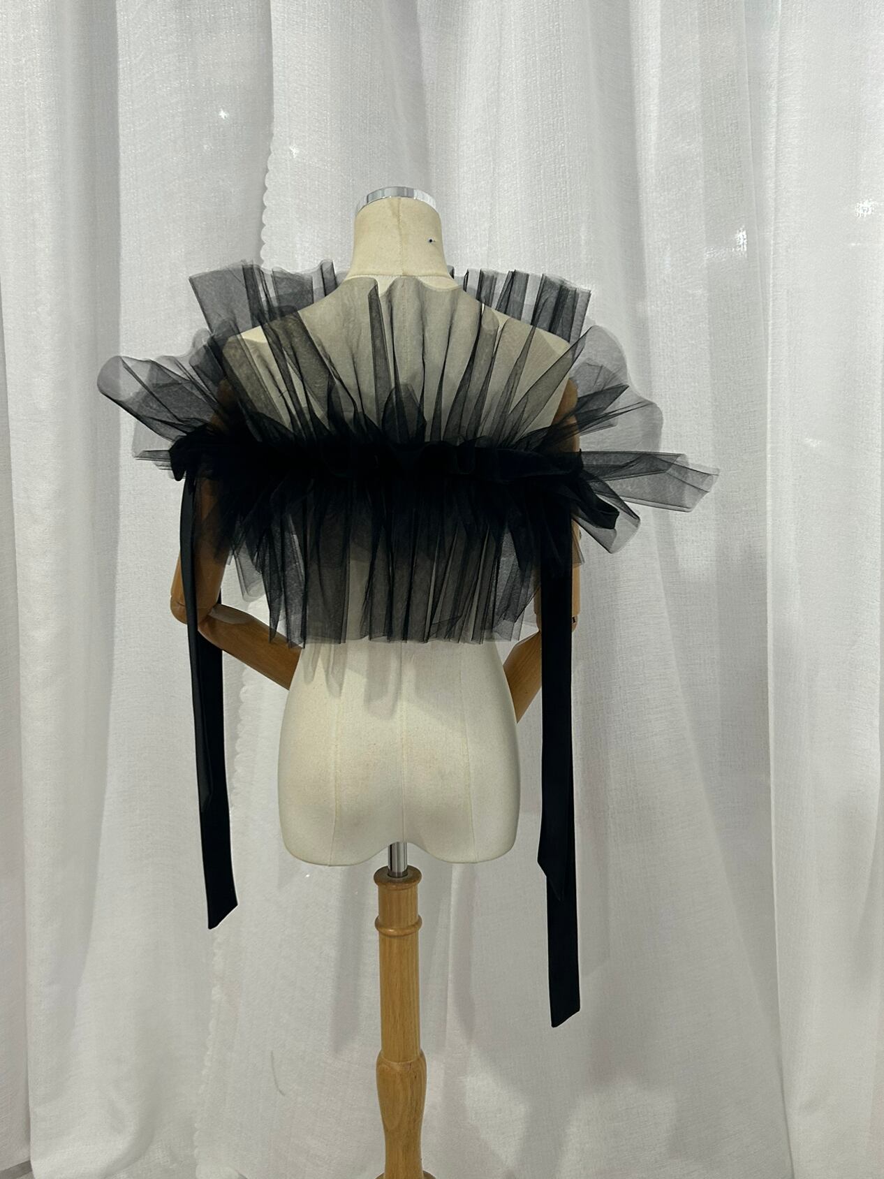 送料無料! オフショルダー 黒 ソフトチュール 編み上げ